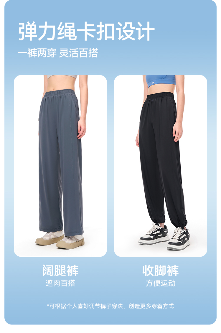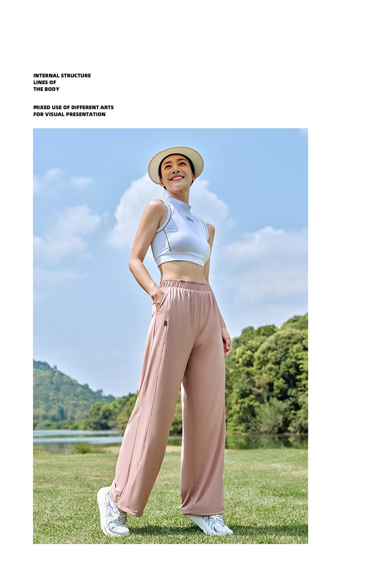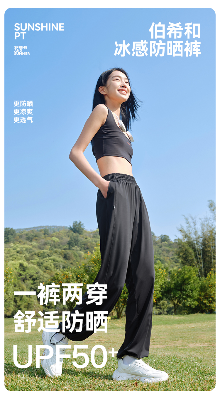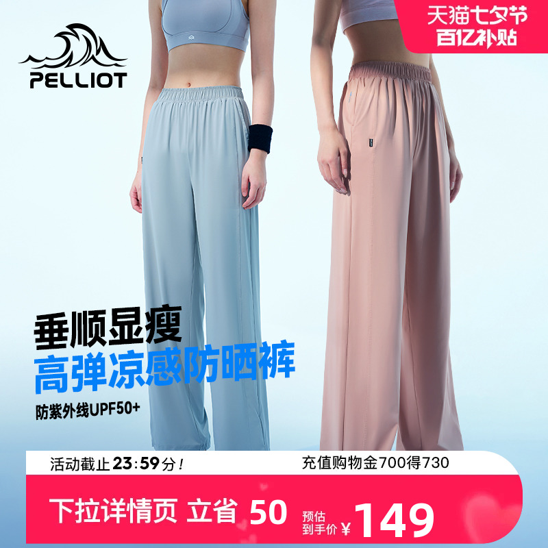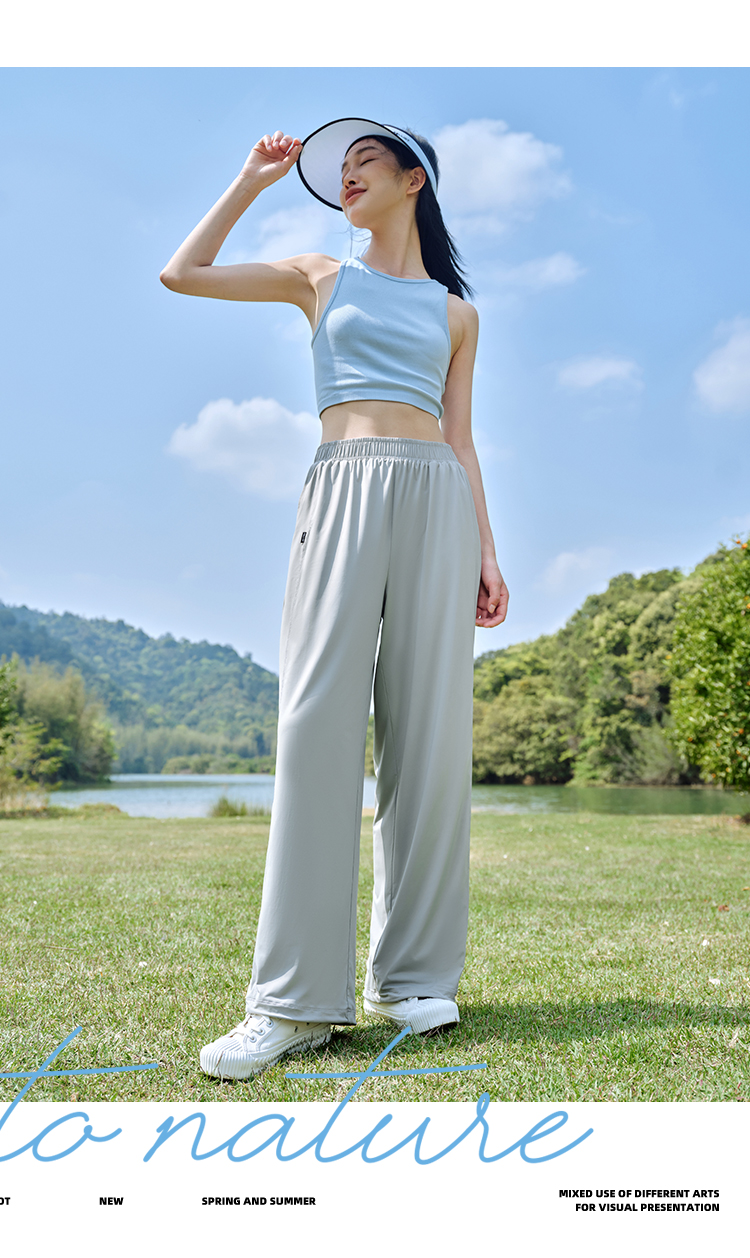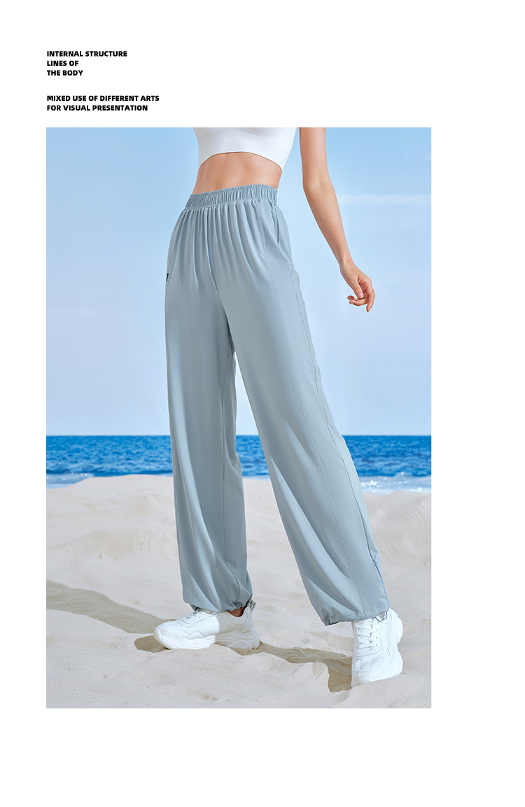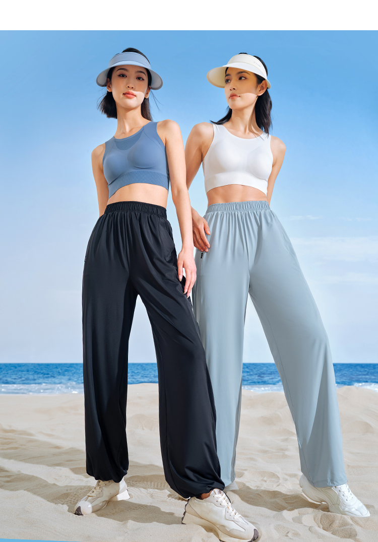 伯希和防曬褲女夏季寬鬆顯瘦闊腿褲垂感透氣百搭高腰休閒束口褲子