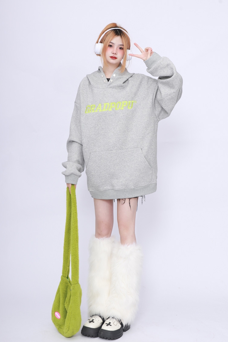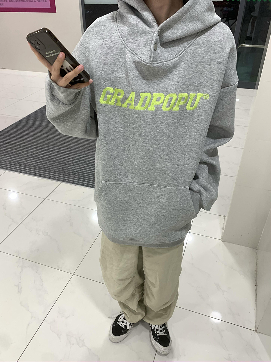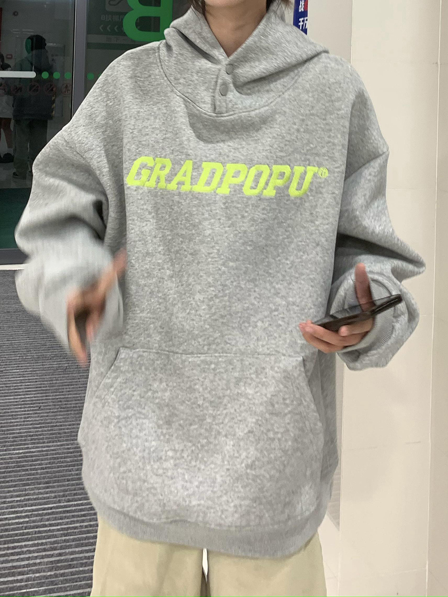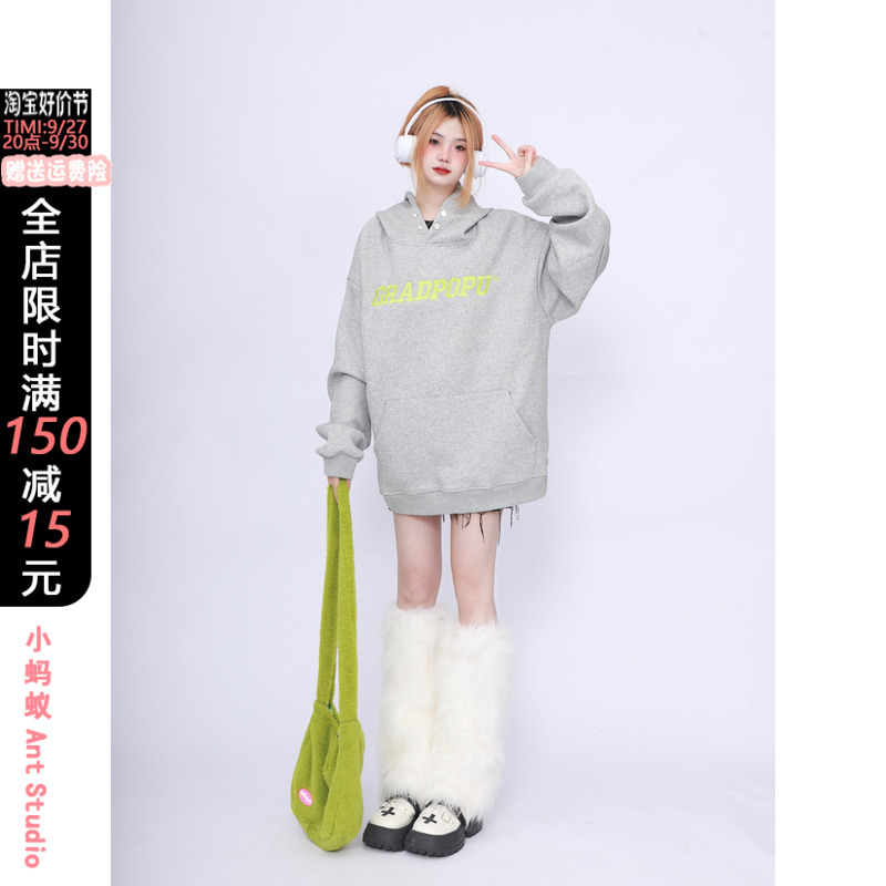 2023春季美式復古vintage淺灰色衛衣女新款2023爆款加厚連帽上衣