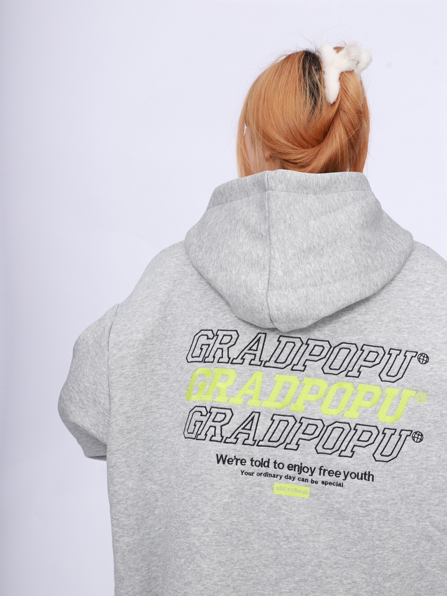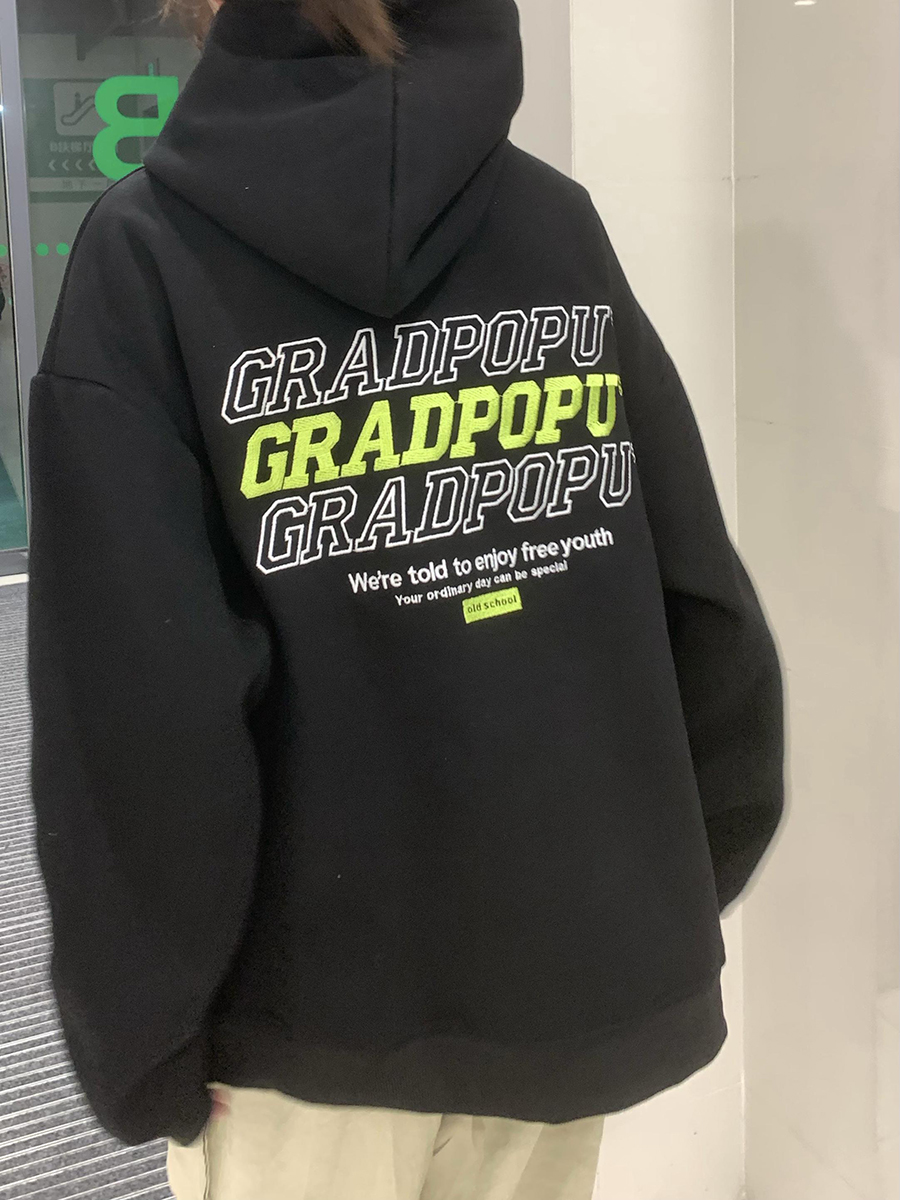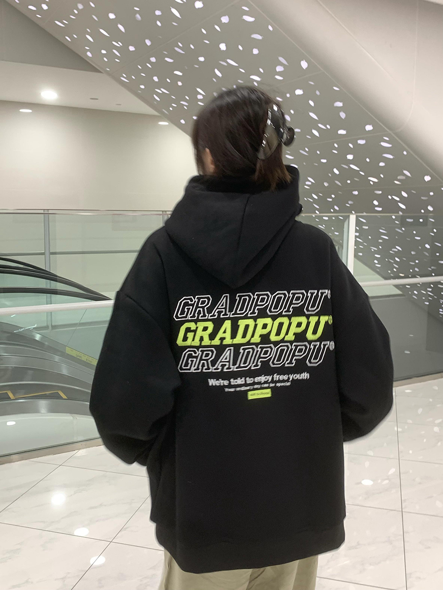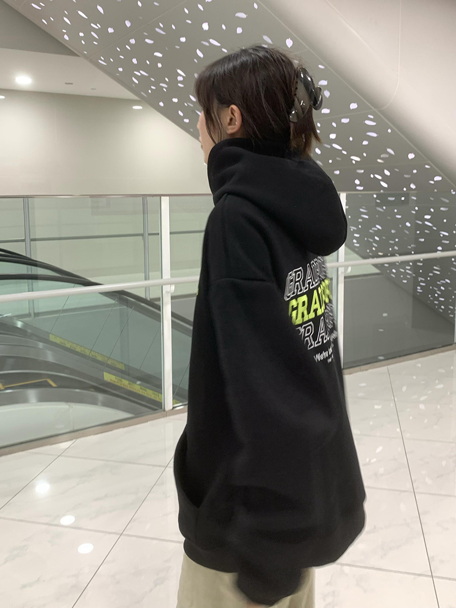 2023春季美式復古vintage淺灰色衛衣女新款2023爆款加厚連帽上衣