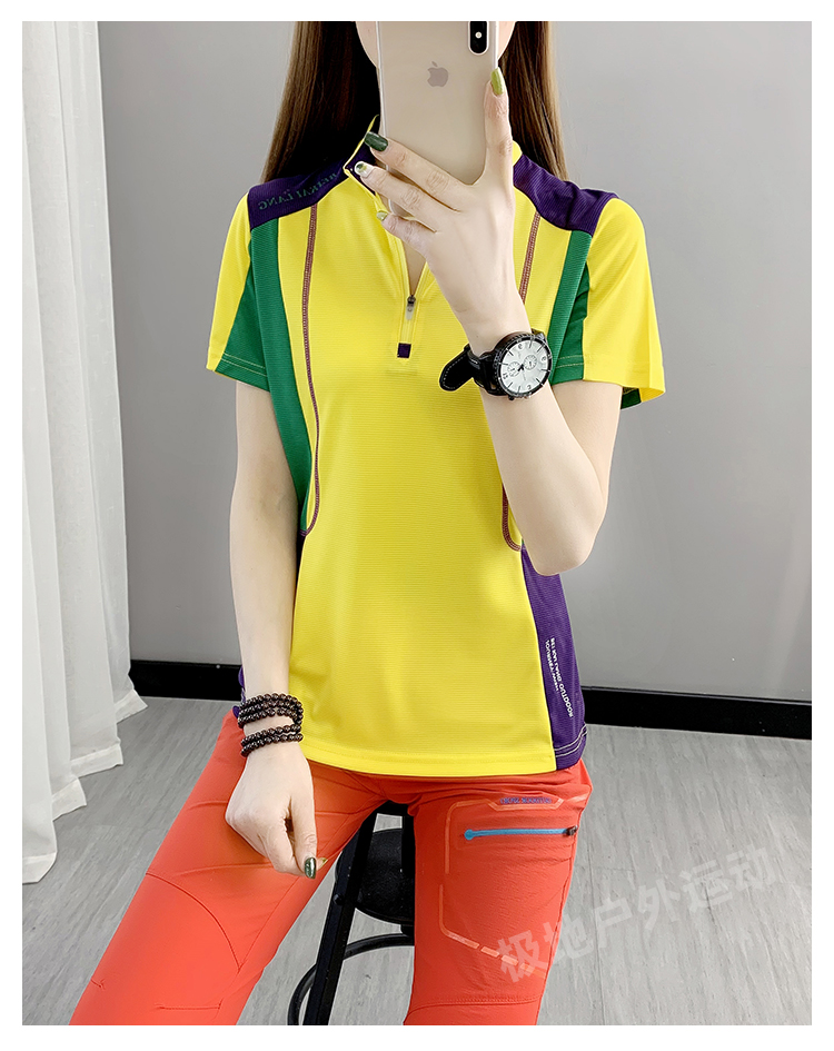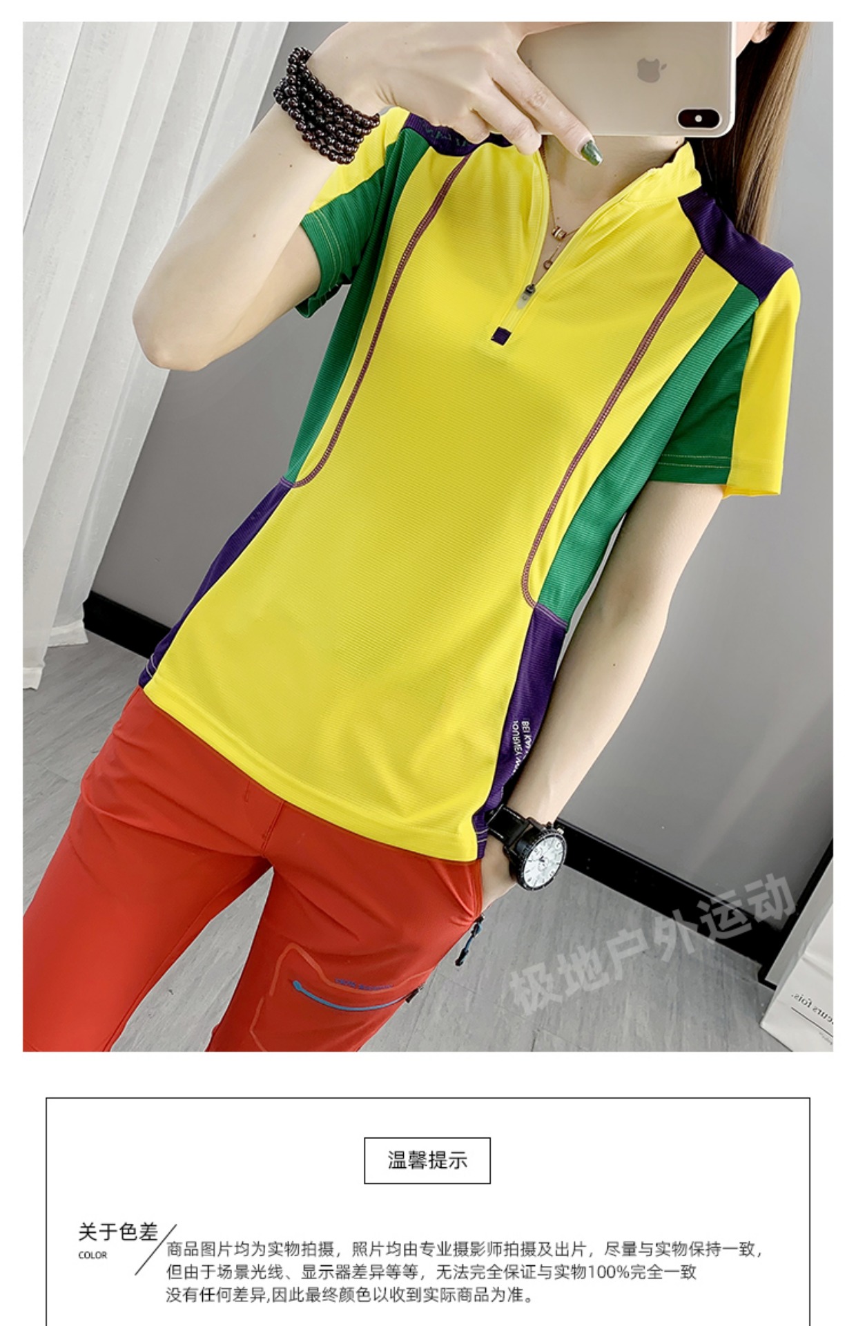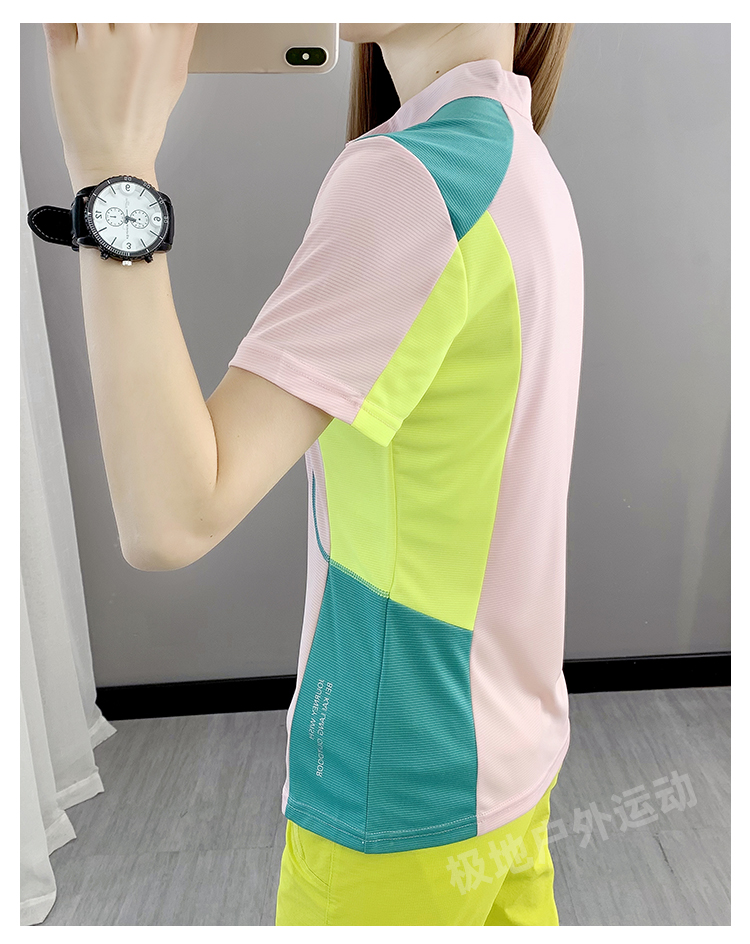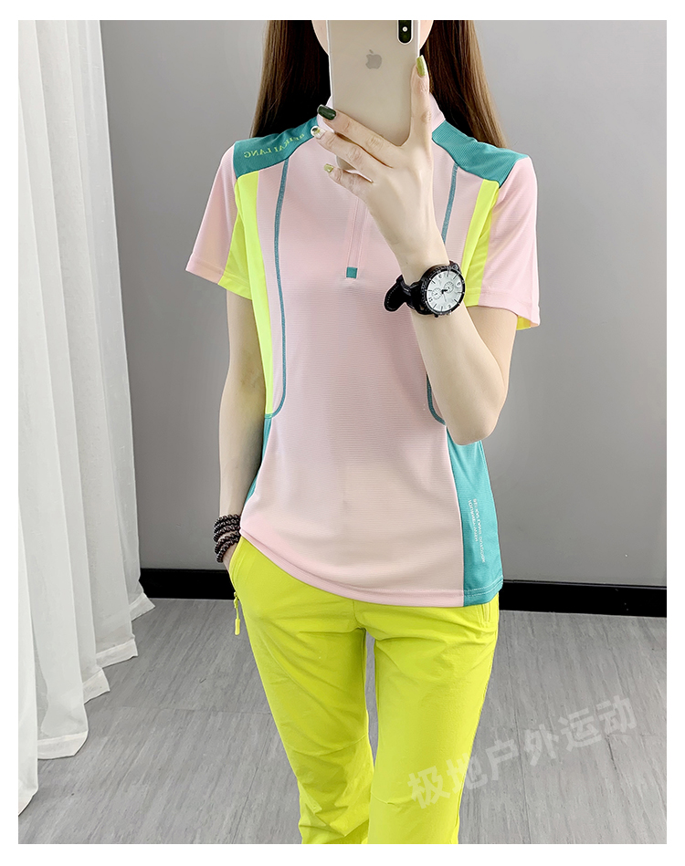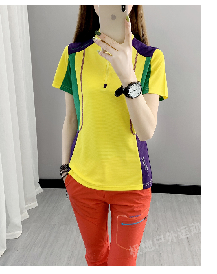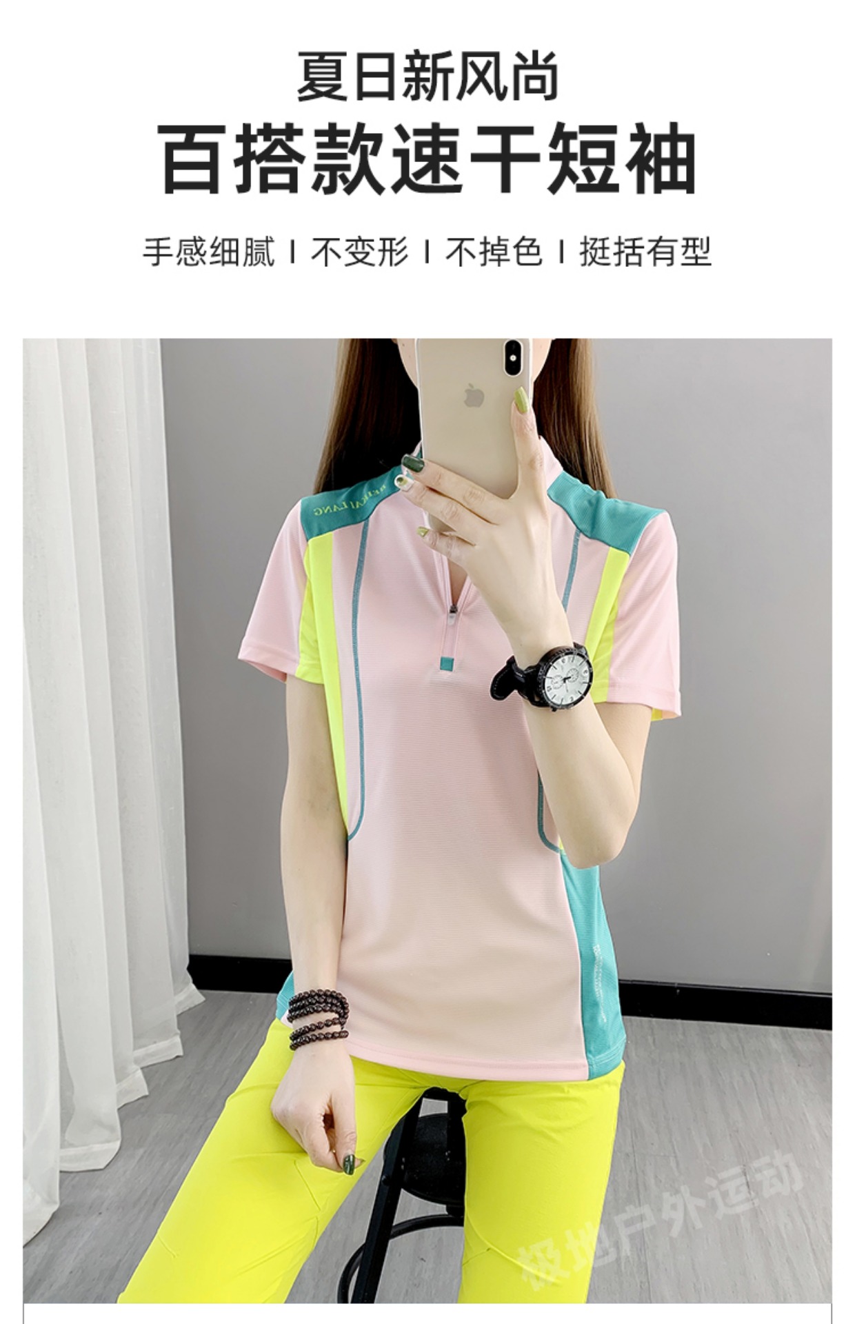 戶外速乾衣女短袖T恤拼色修身顯瘦輕薄透氣快乾衣跑步徒步運動夏