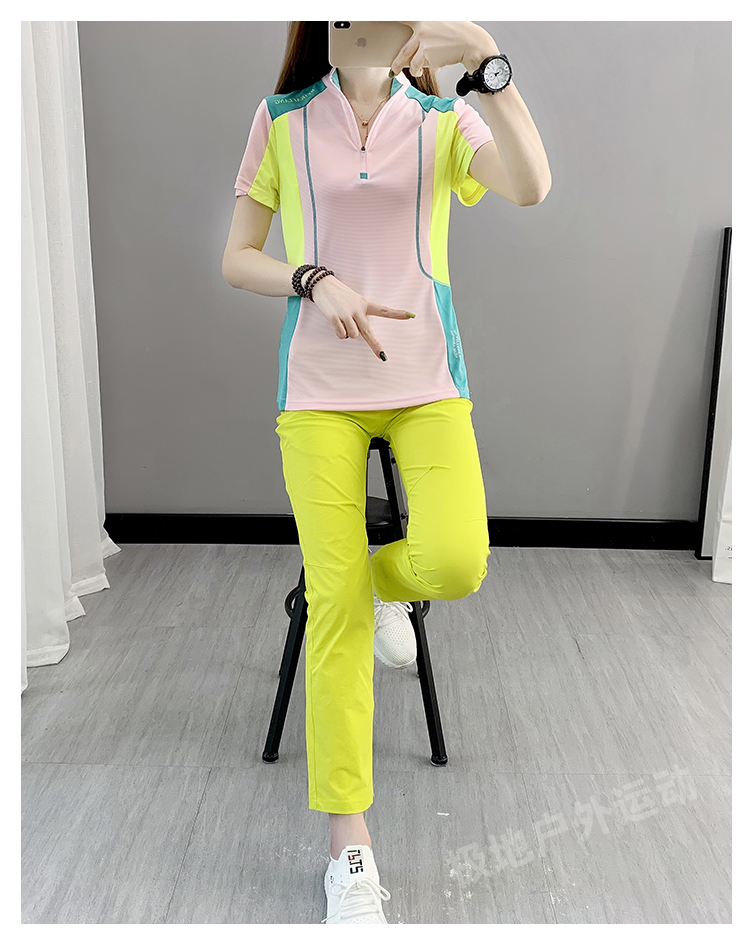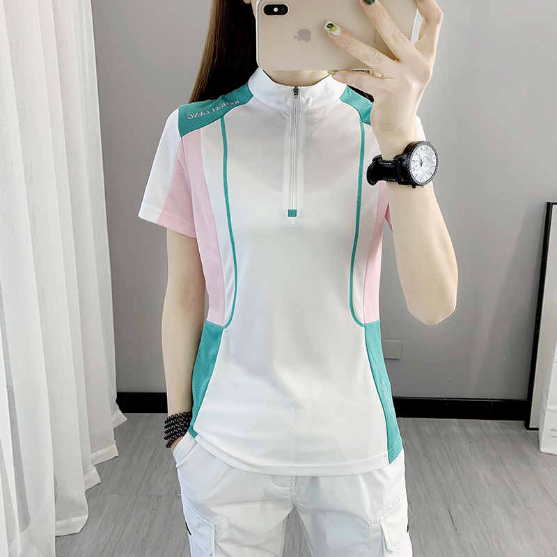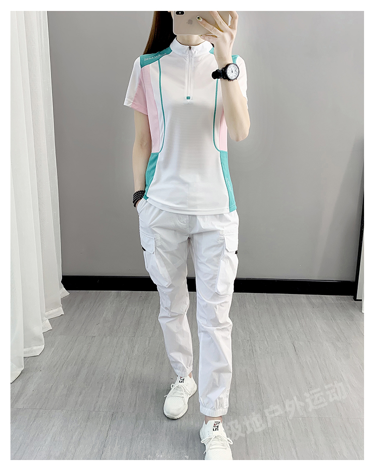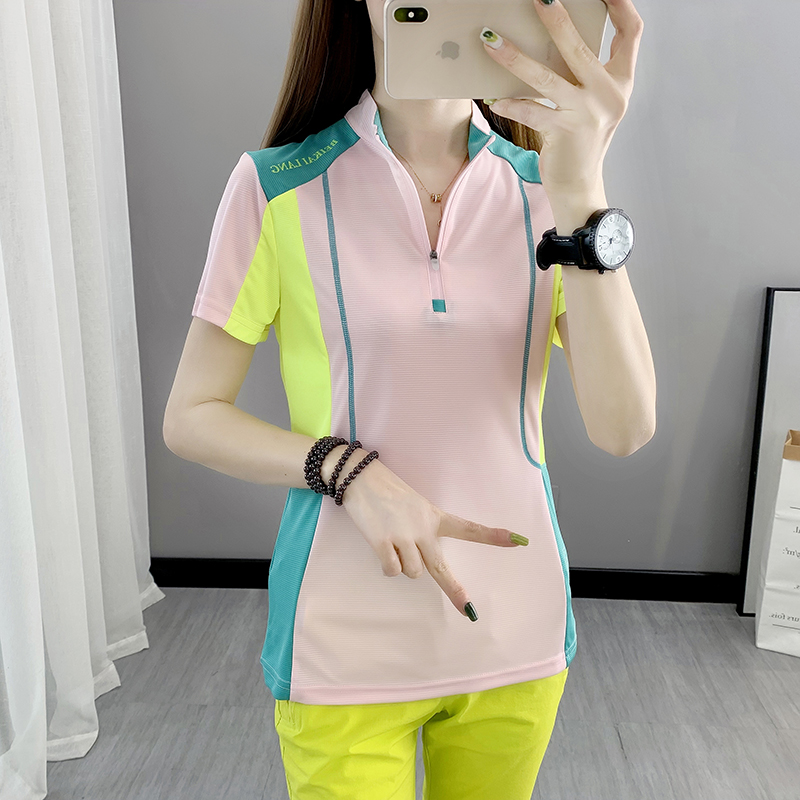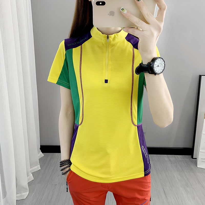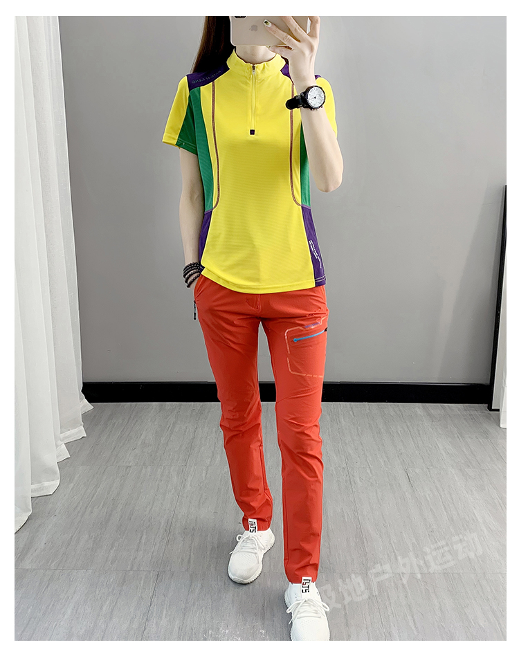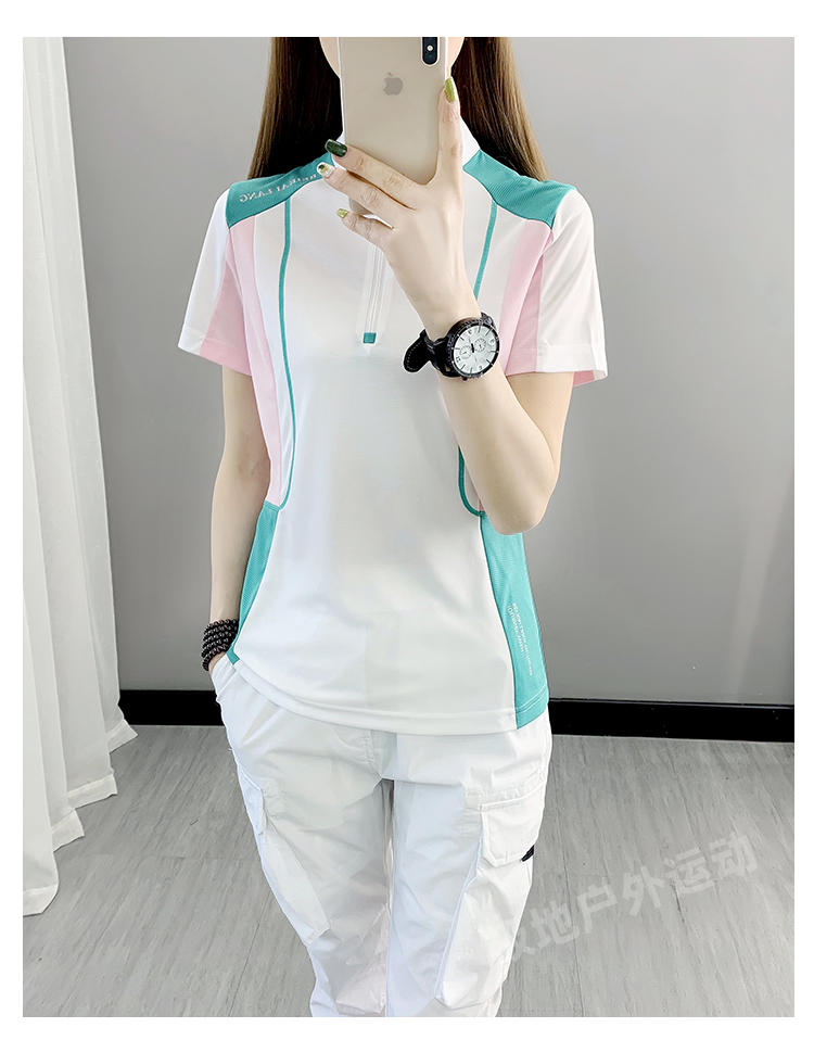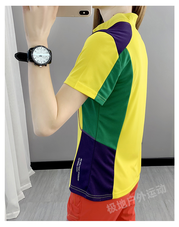 戶外速乾衣女短袖T恤拼色修身顯瘦輕薄透氣快乾衣跑步徒步運動夏