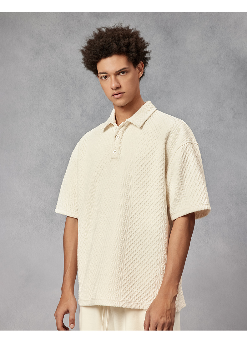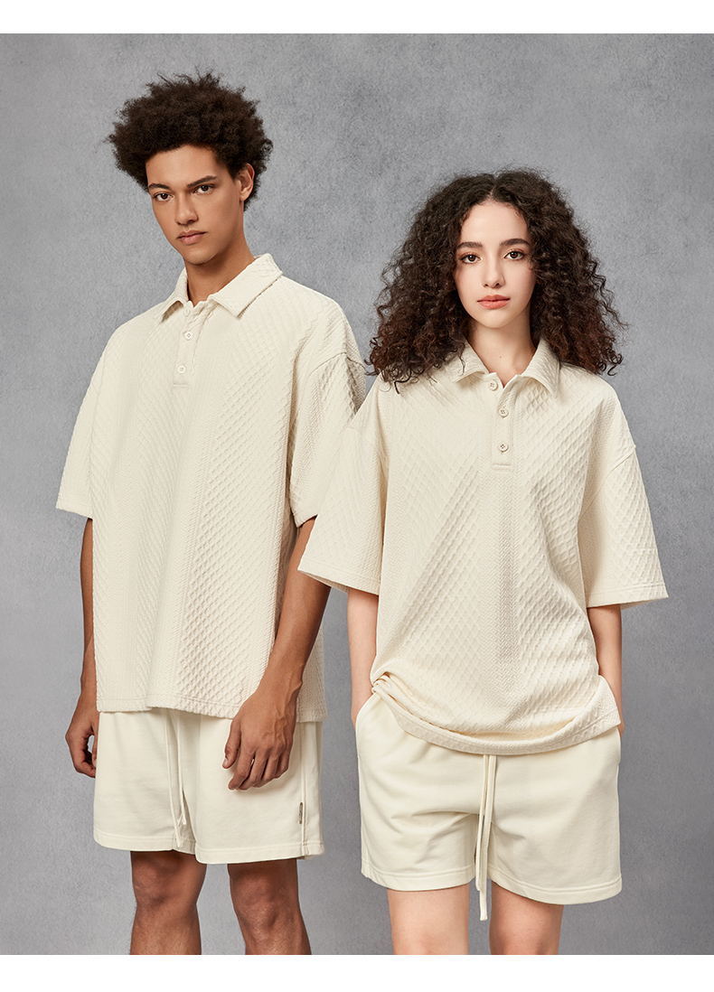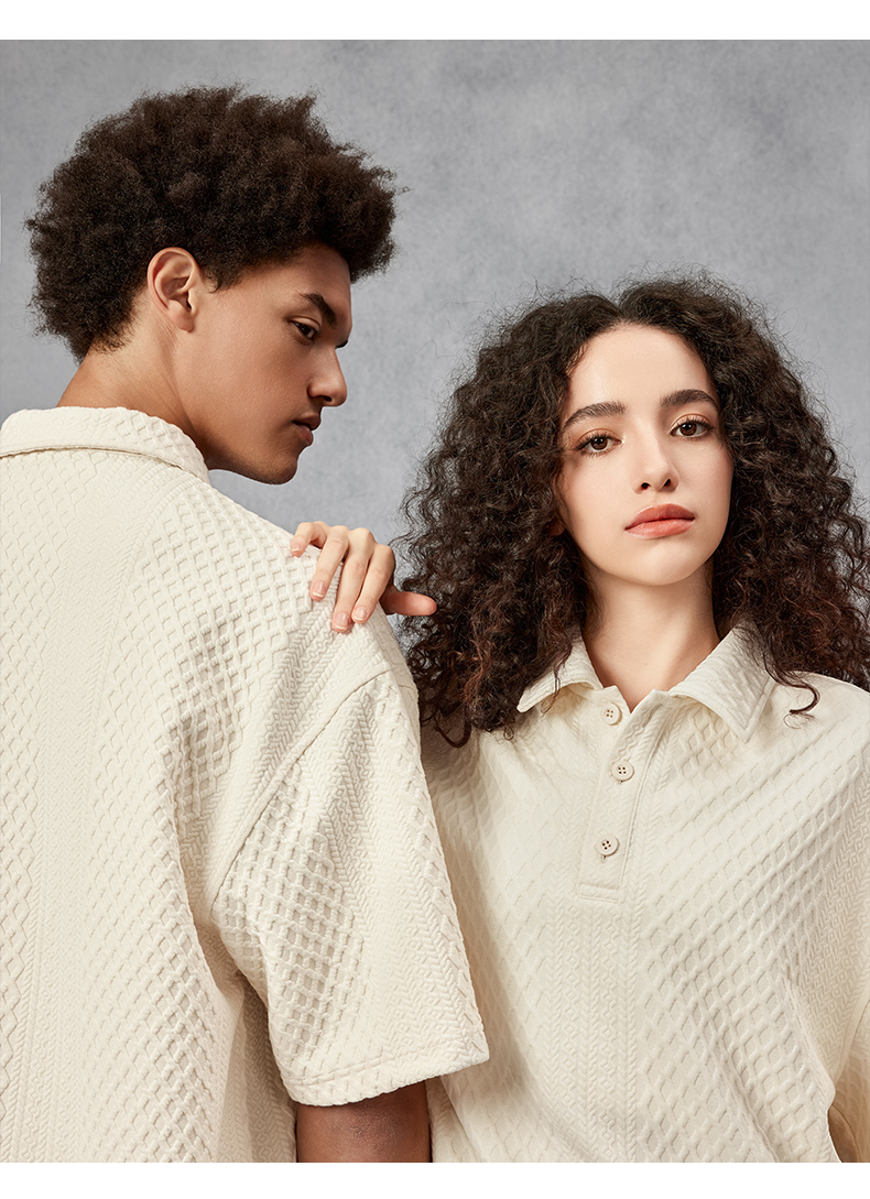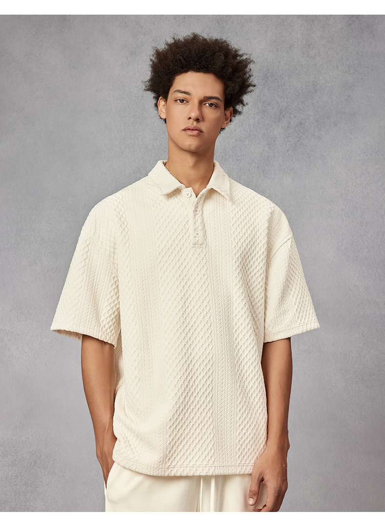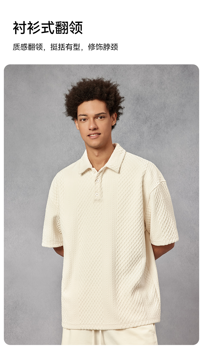 BODYDREAM280克不規則提花肌理針織短袖Polo衫男美式重磅情侶T恤