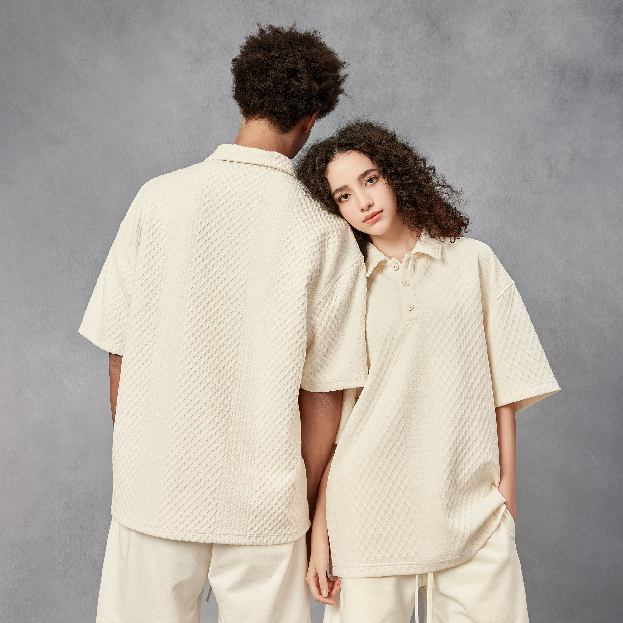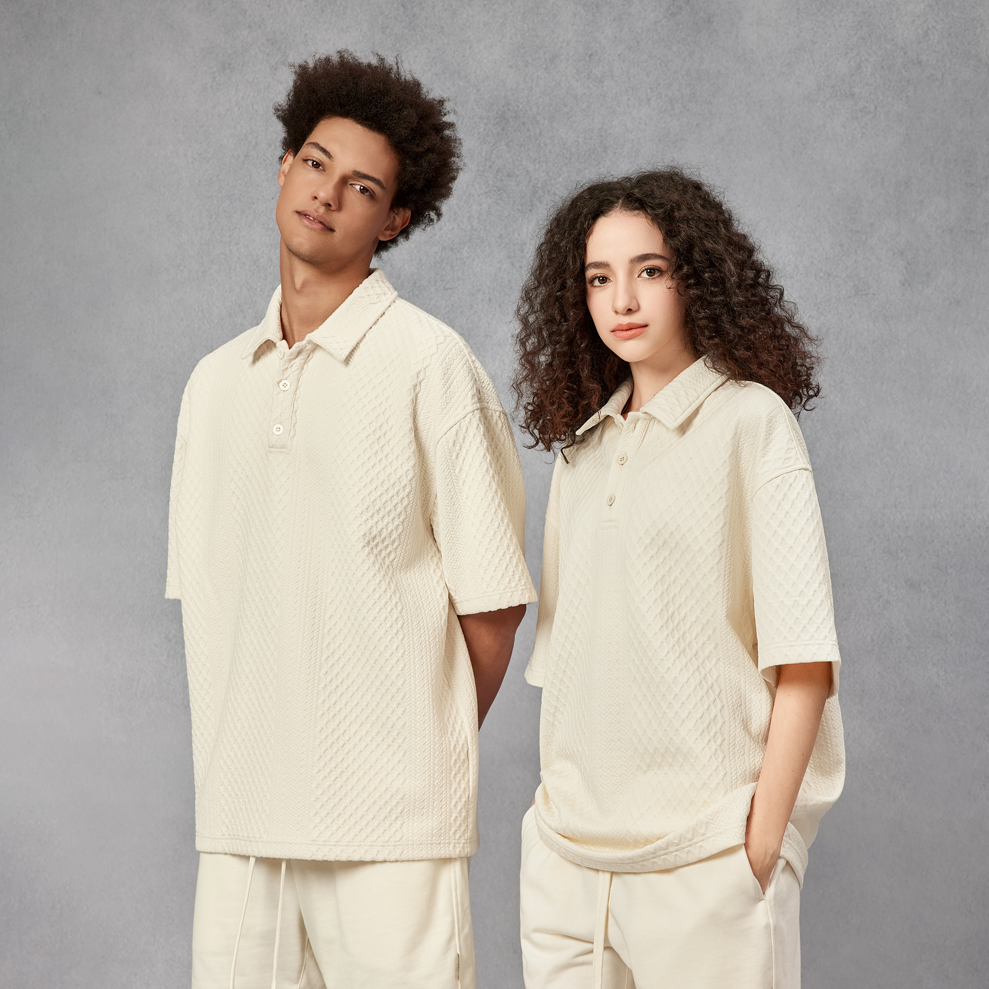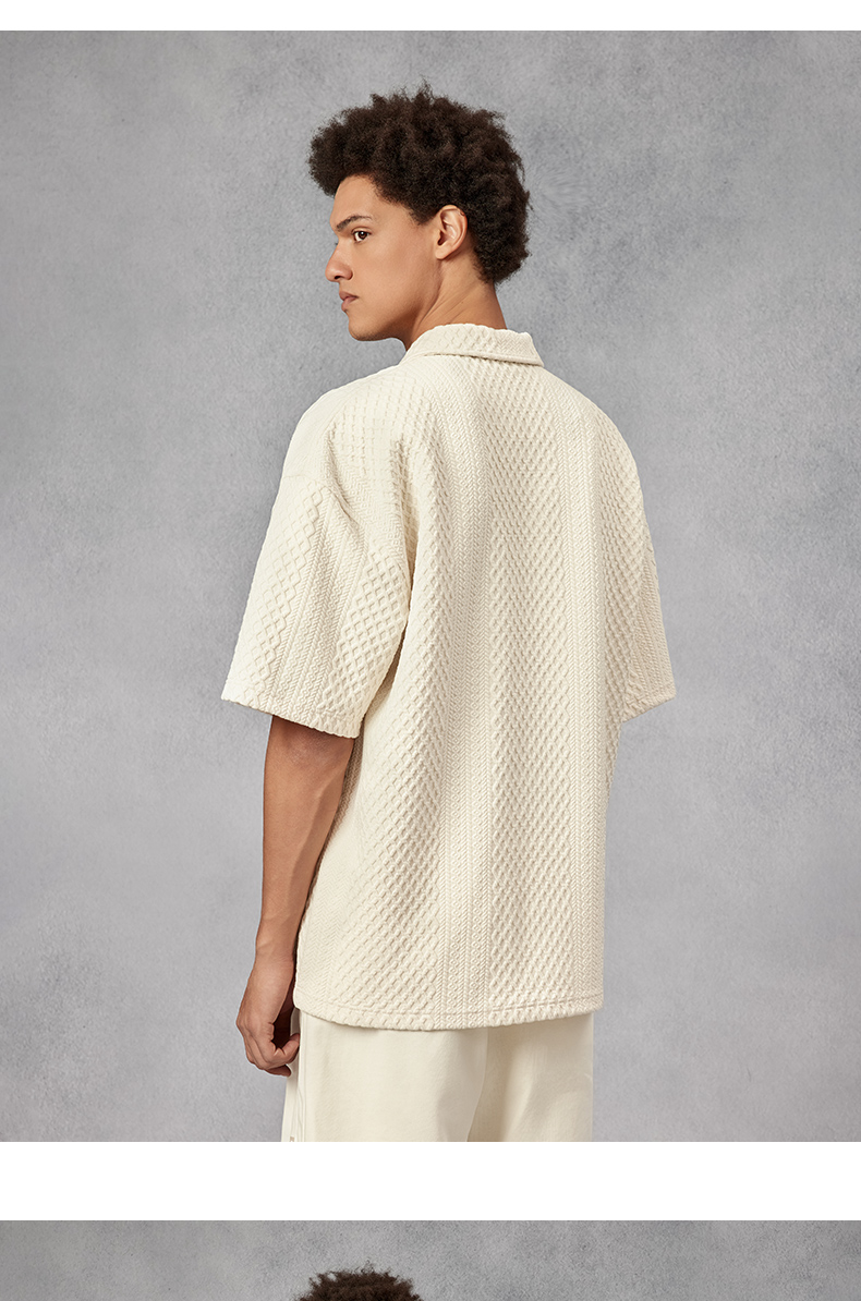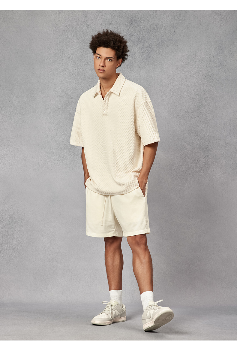 BODYDREAM280克不規則提花肌理針織短袖Polo衫男美式重磅情侶T恤