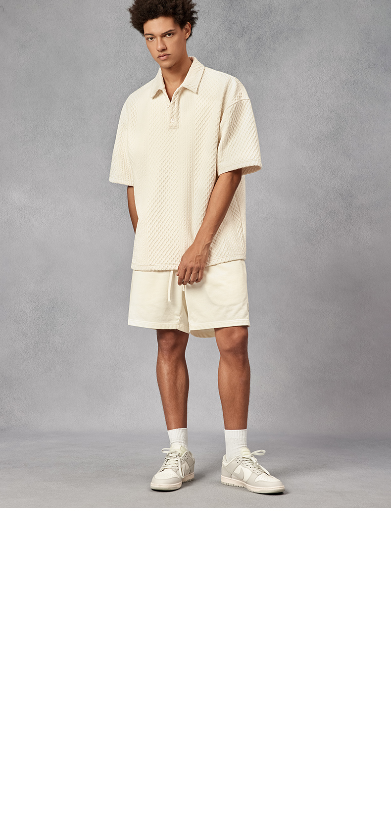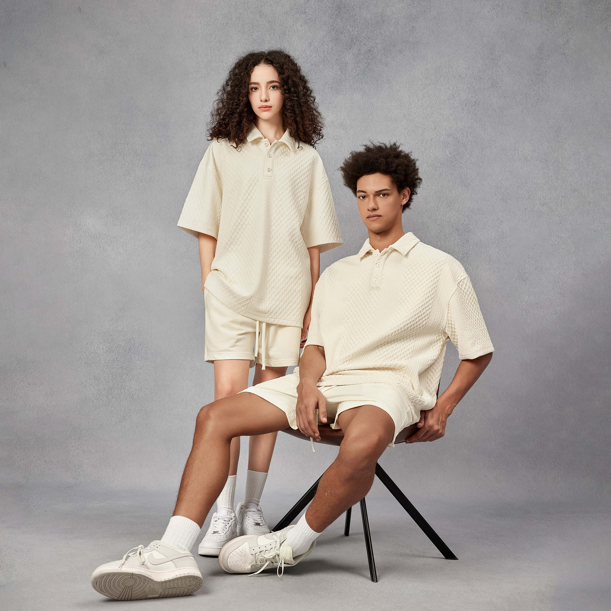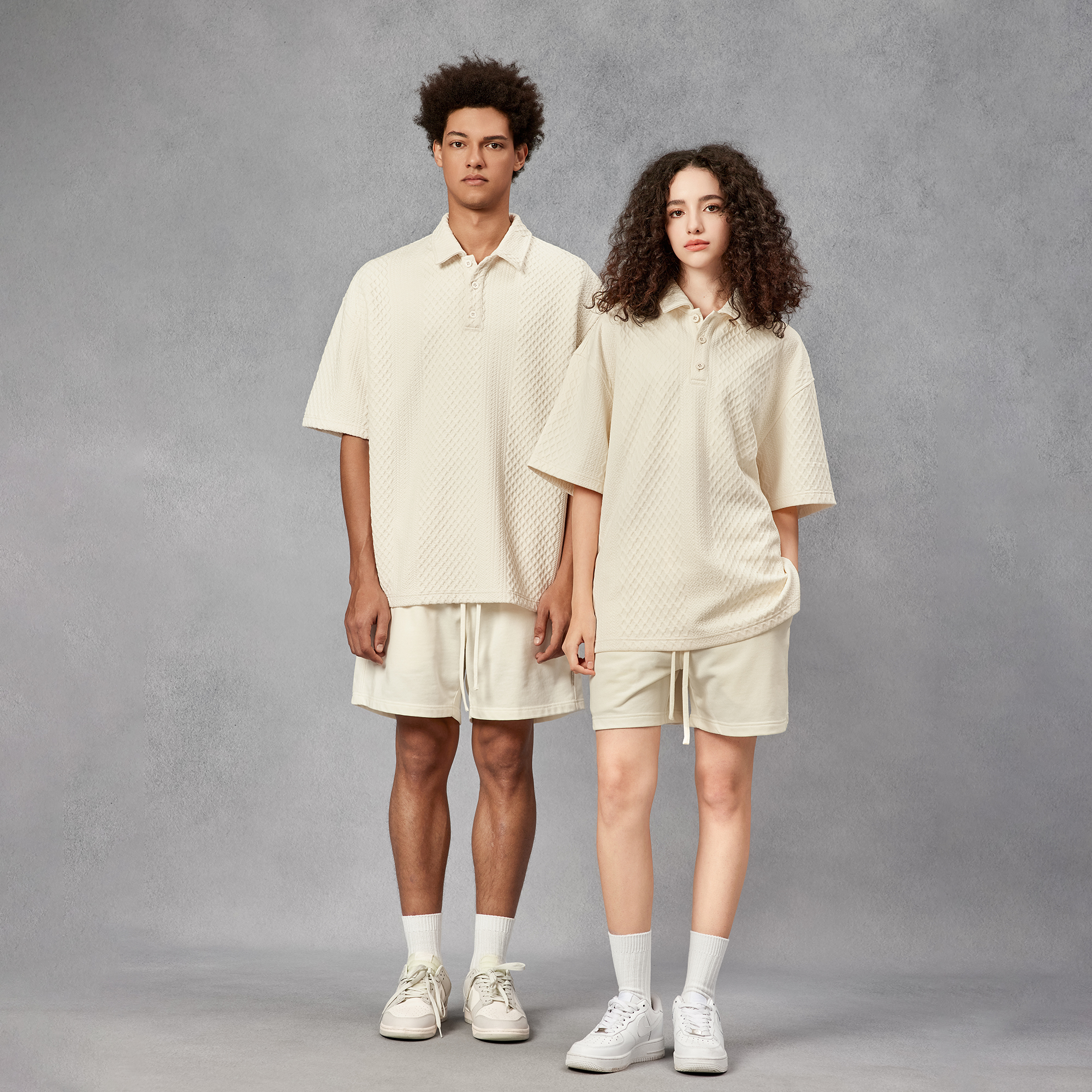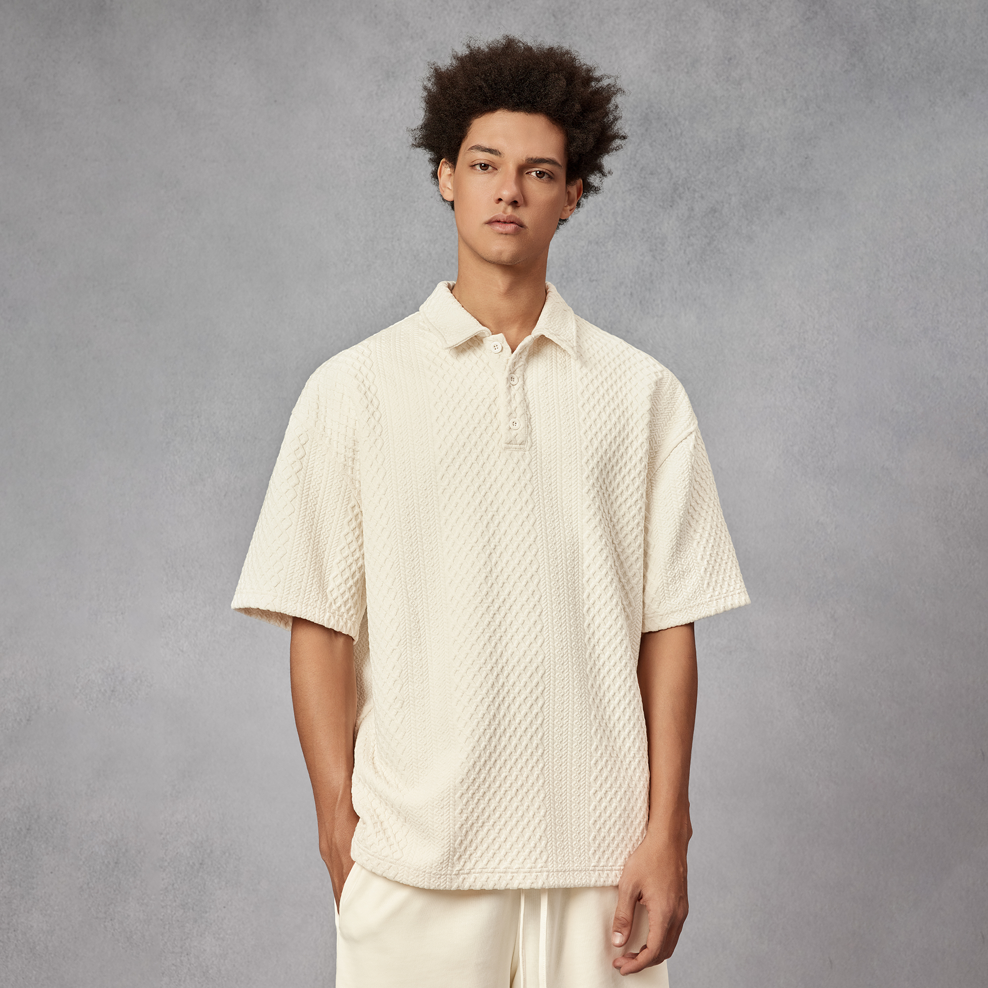 BODYDREAM280克不規則提花肌理針織短袖Polo衫男美式重磅情侶T恤