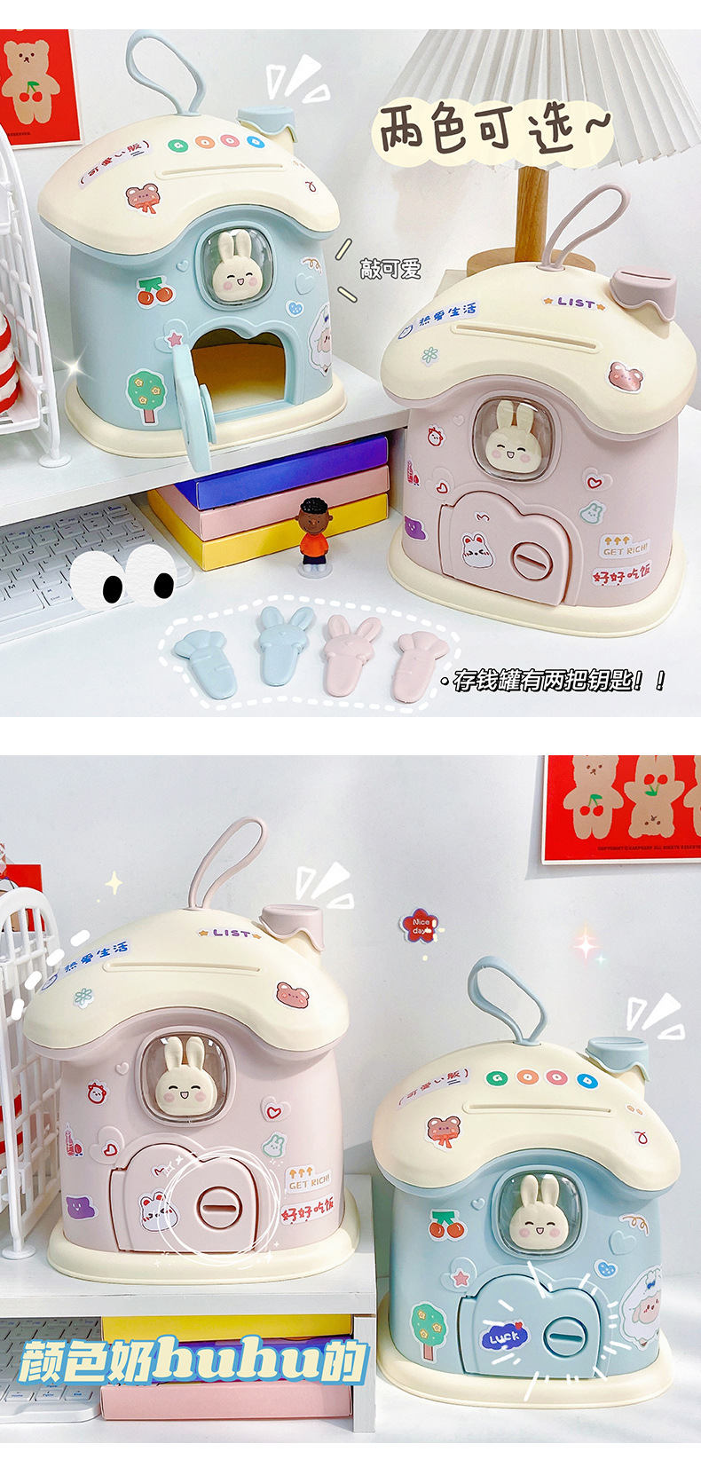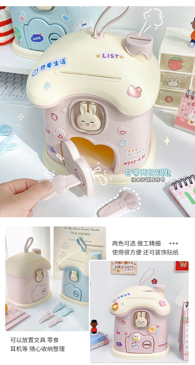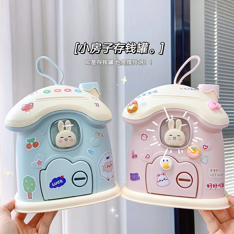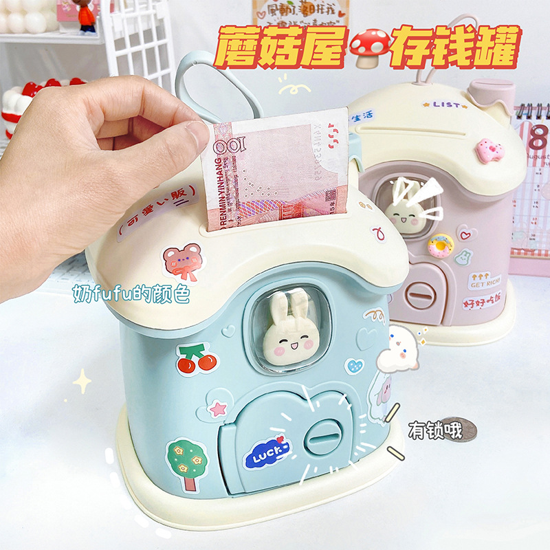创意礼品兔子蘑菇屋存钱罐ins儿童储蓄罐可存可取大容量创意收纳