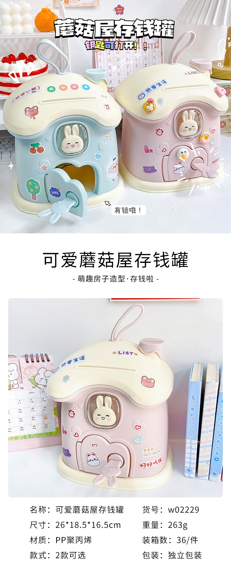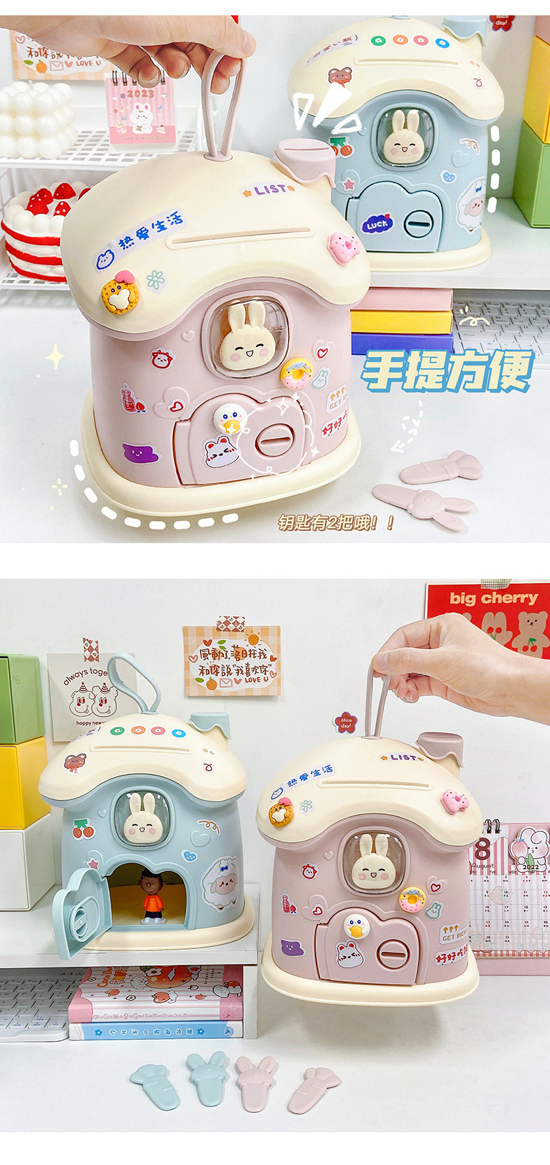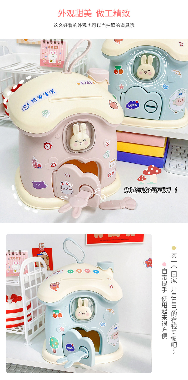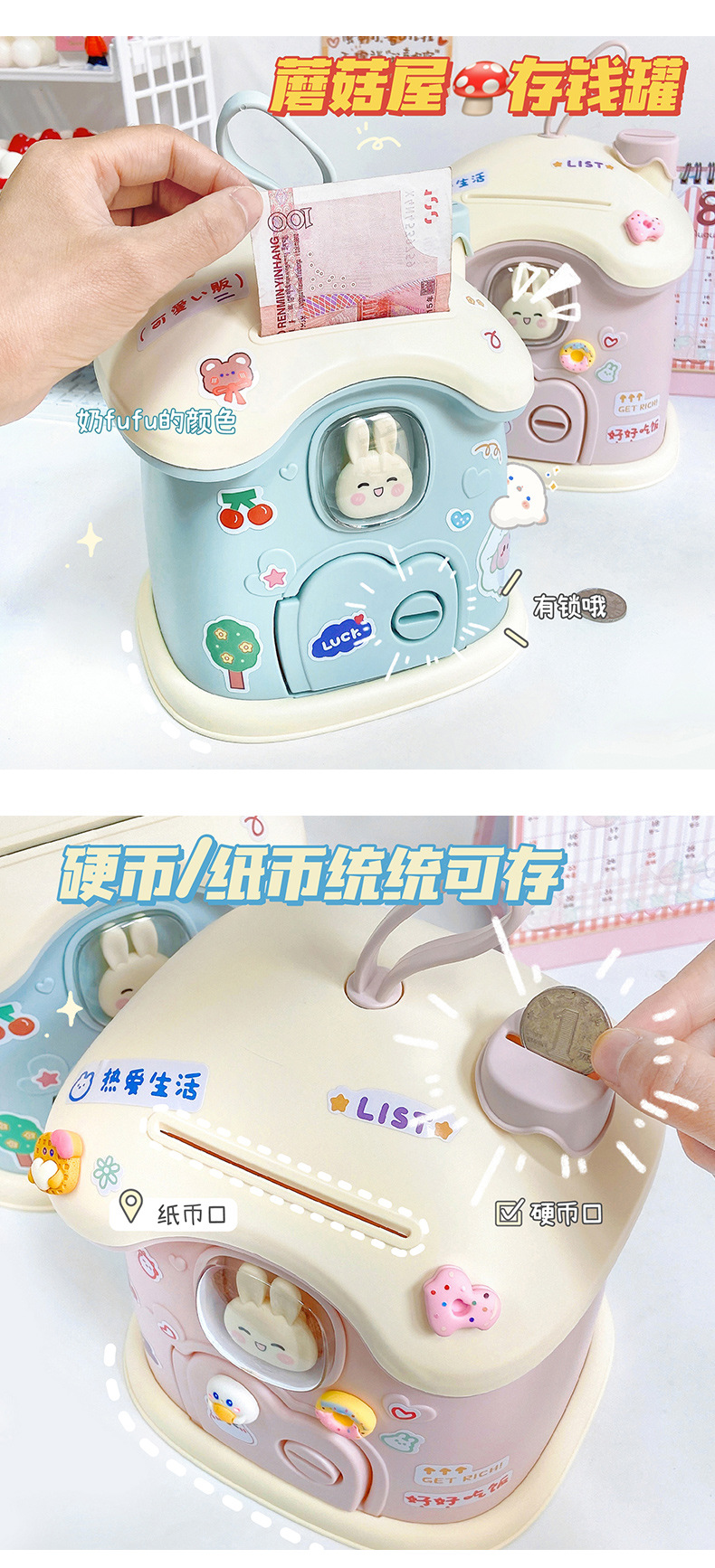 创意礼品兔子蘑菇屋存钱罐ins儿童储蓄罐可存可取大容量创意收纳