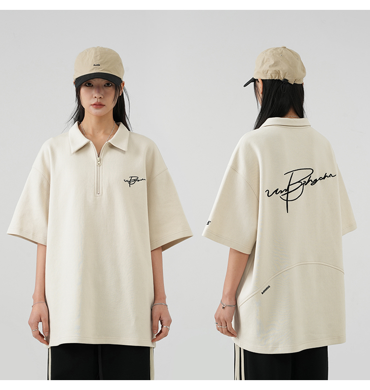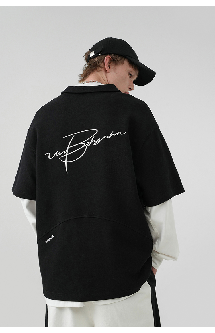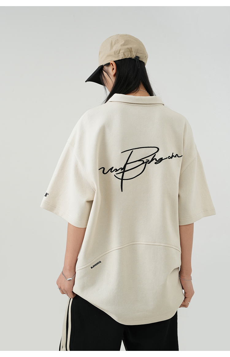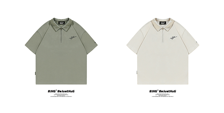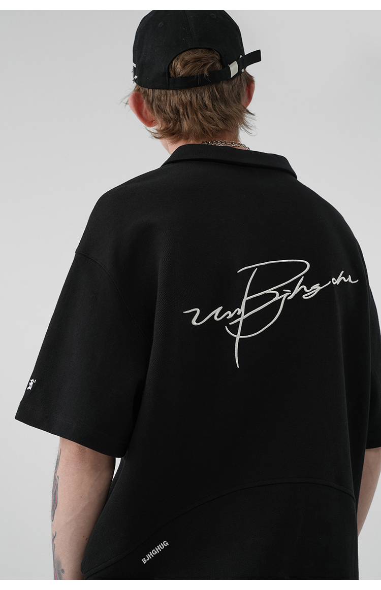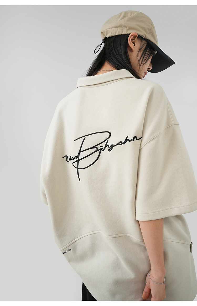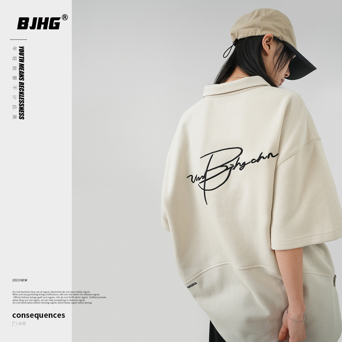 BJHG不計後果 夏季美式字母刺繡POLO衫短袖男潮牌復古情侶休閒T恤