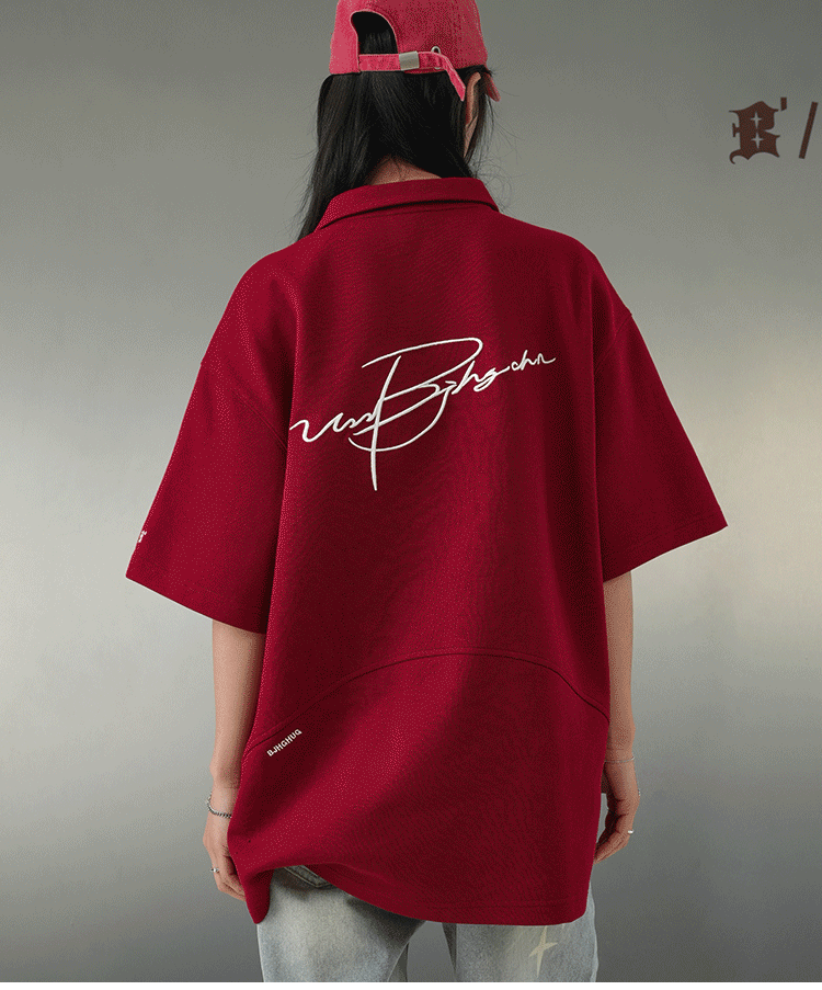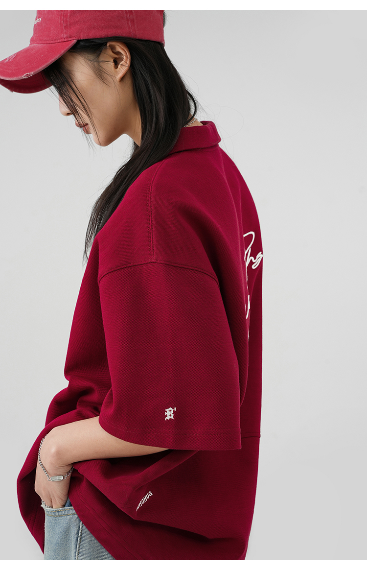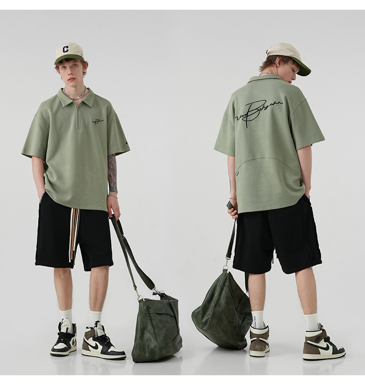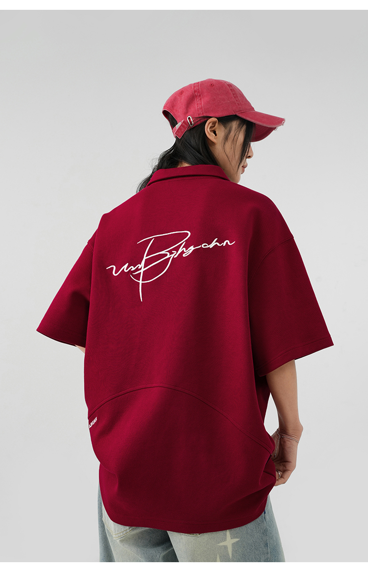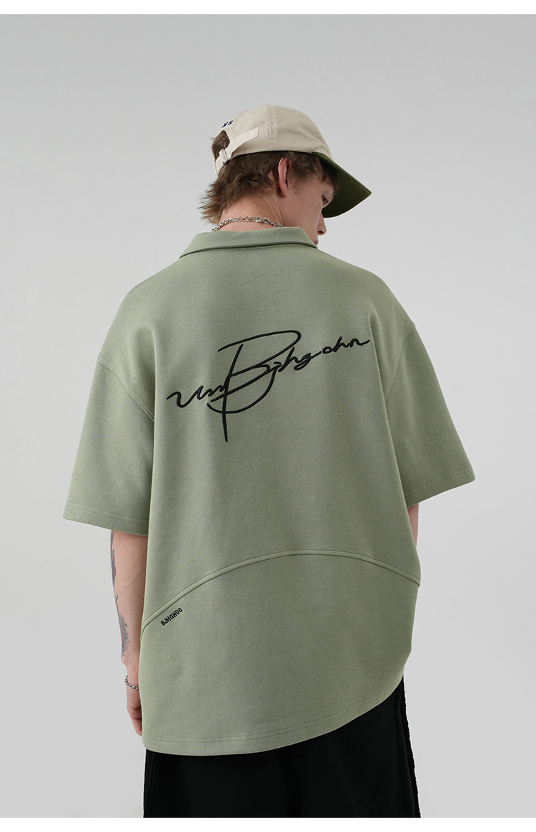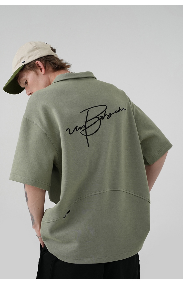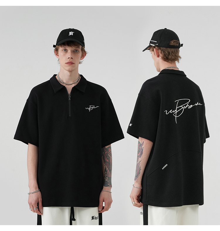 BJHG不計後果 夏季美式字母刺繡POLO衫短袖男潮牌復古情侶休閒T恤