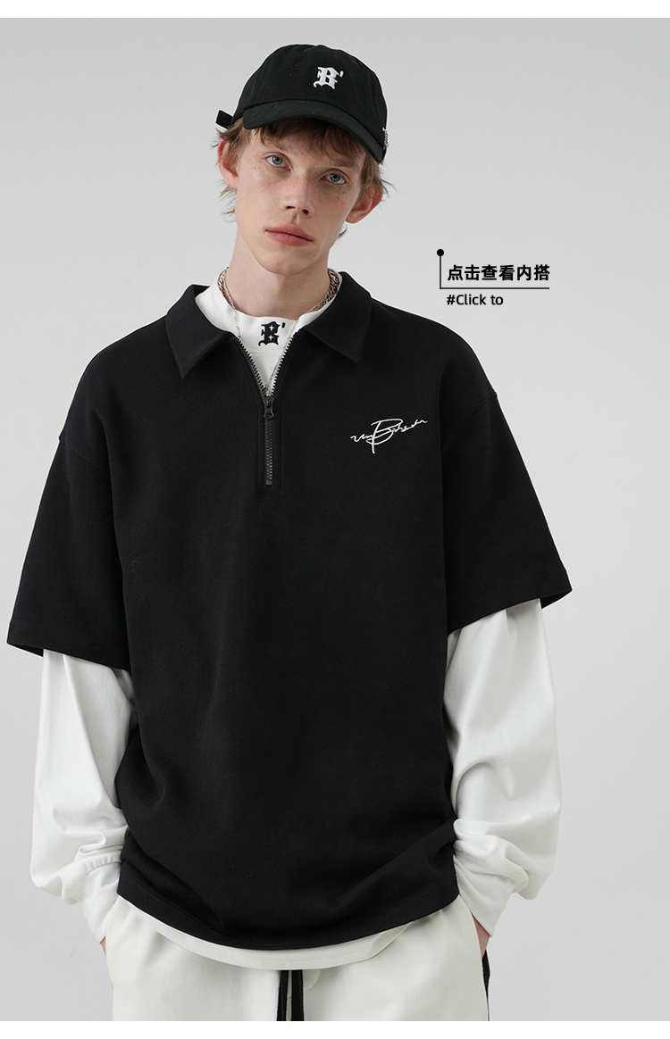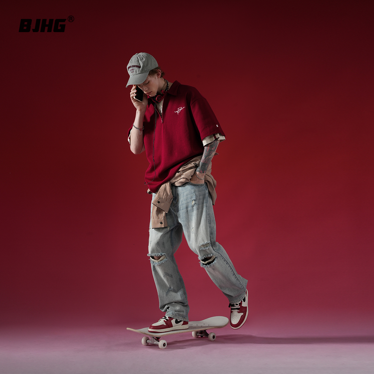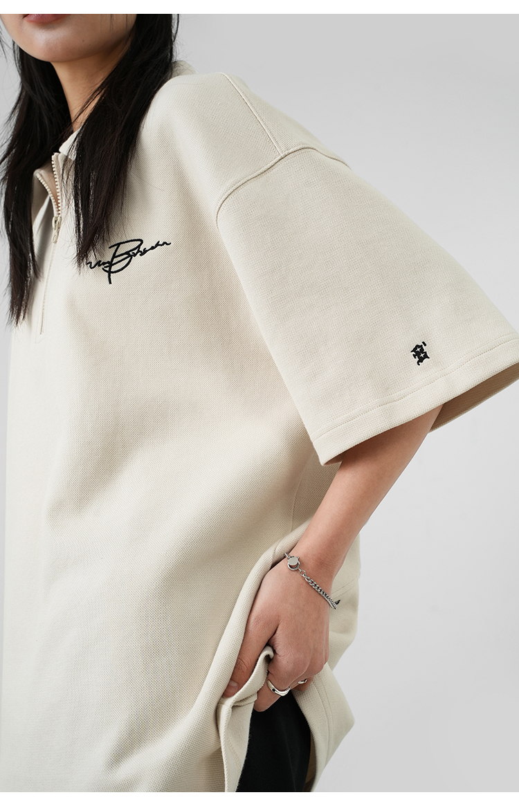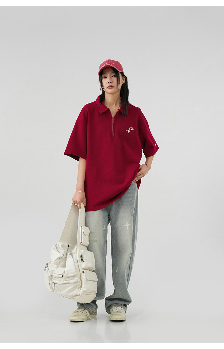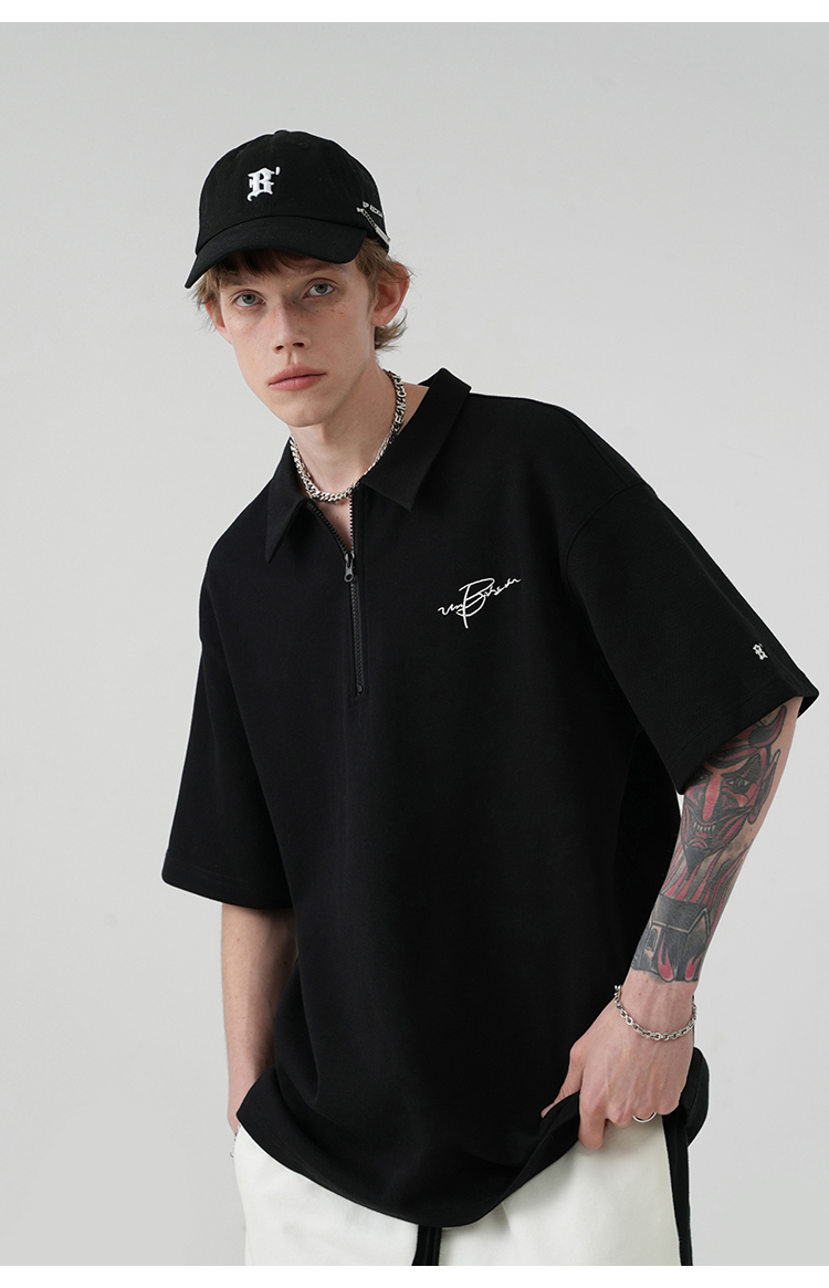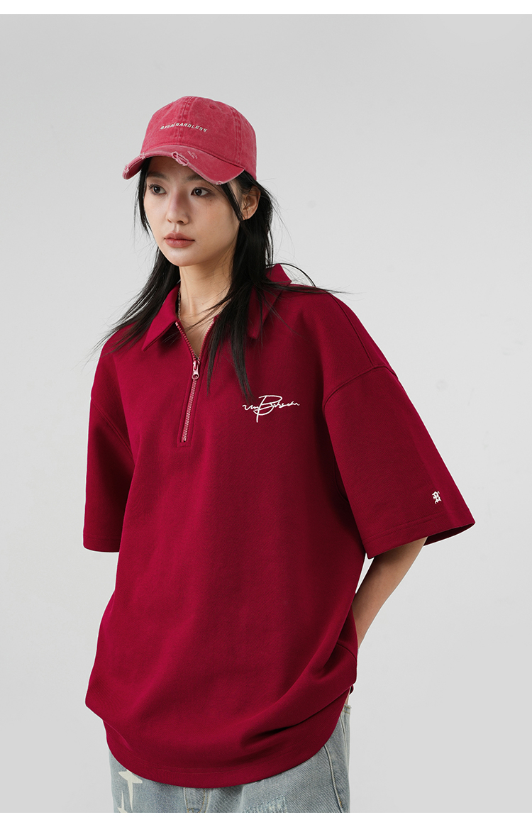 BJHG不計後果 夏季美式字母刺繡POLO衫短袖男潮牌復古情侶休閒T恤