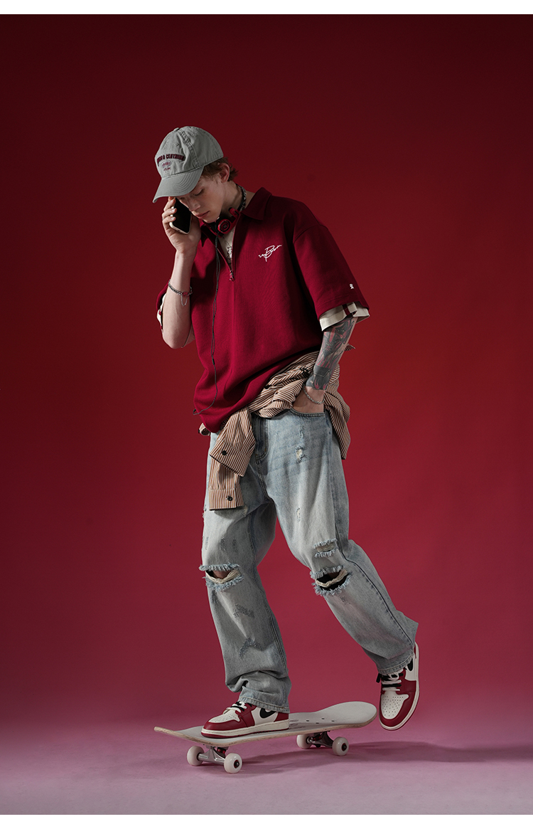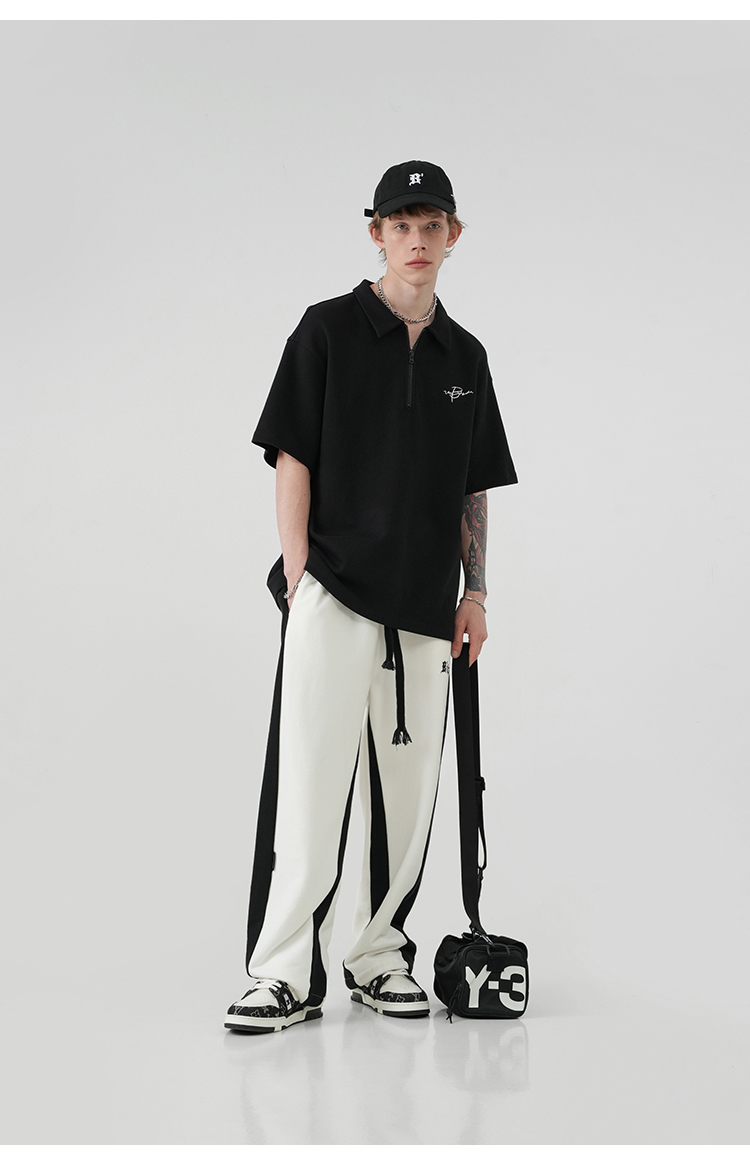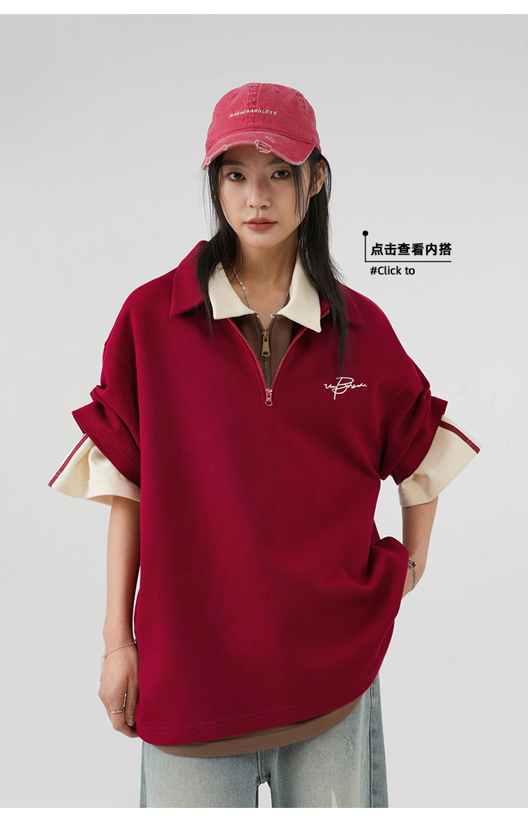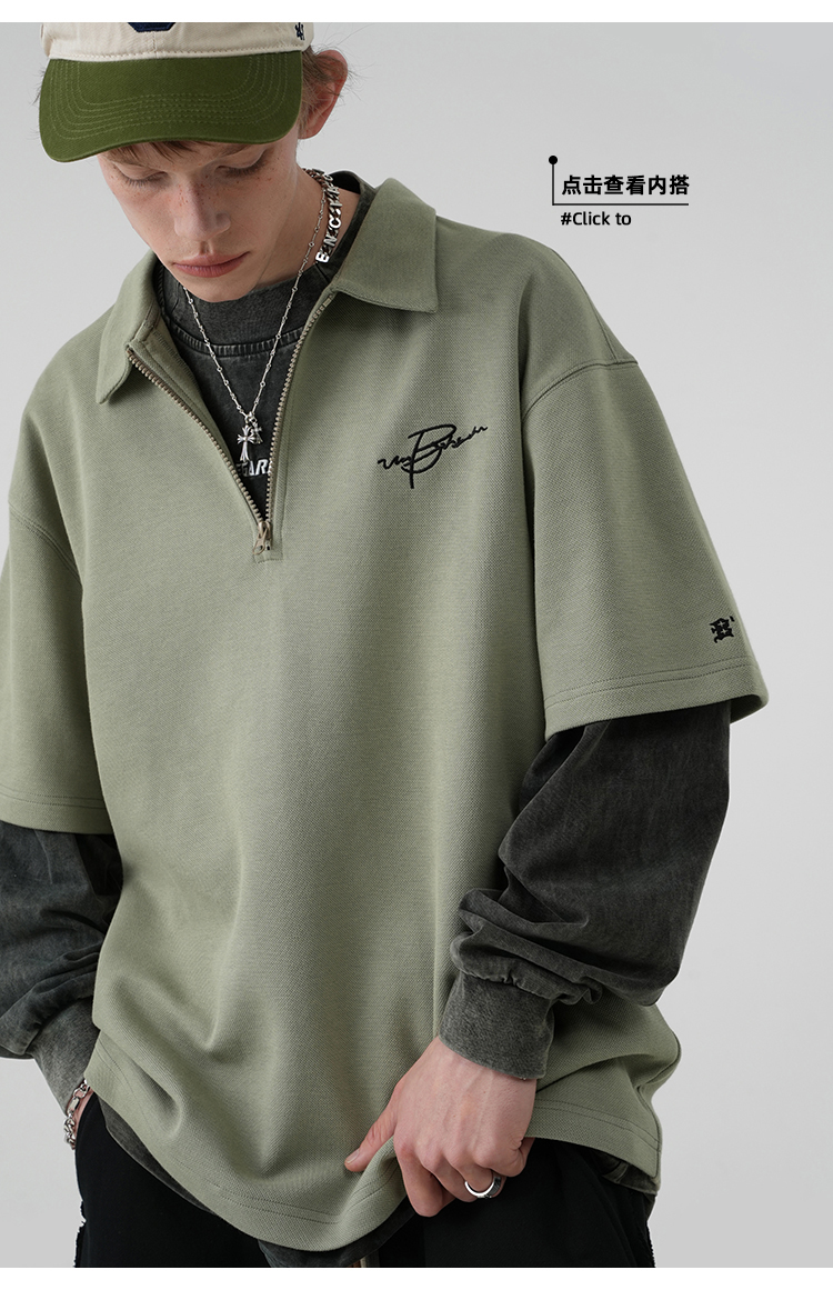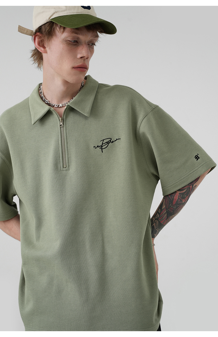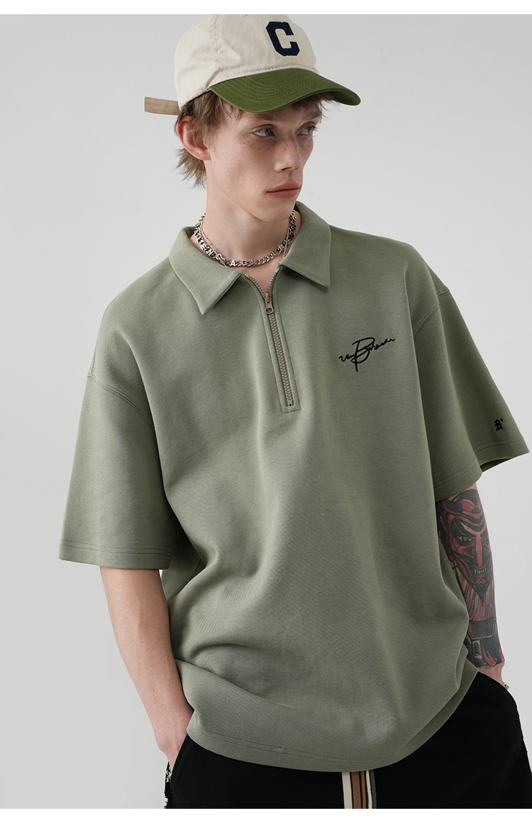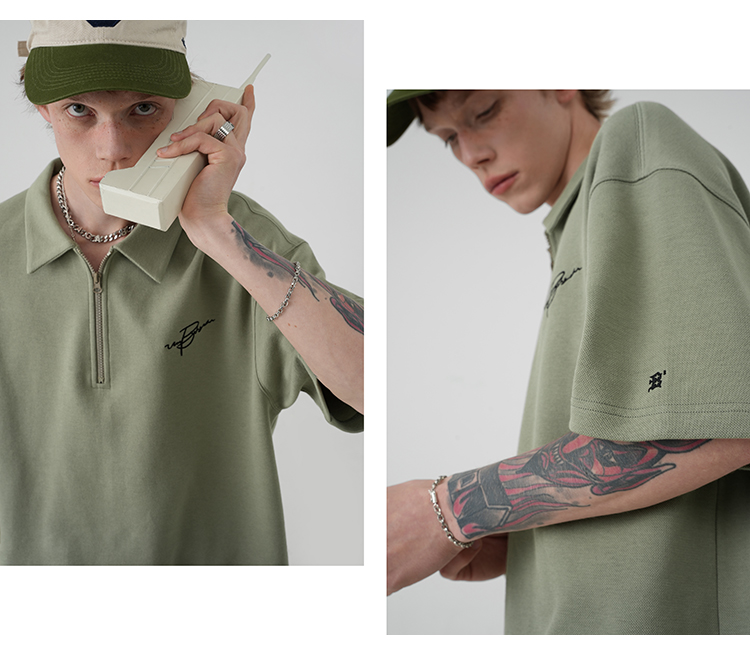 BJHG不計後果 夏季美式字母刺繡POLO衫短袖男潮牌復古情侶休閒T恤