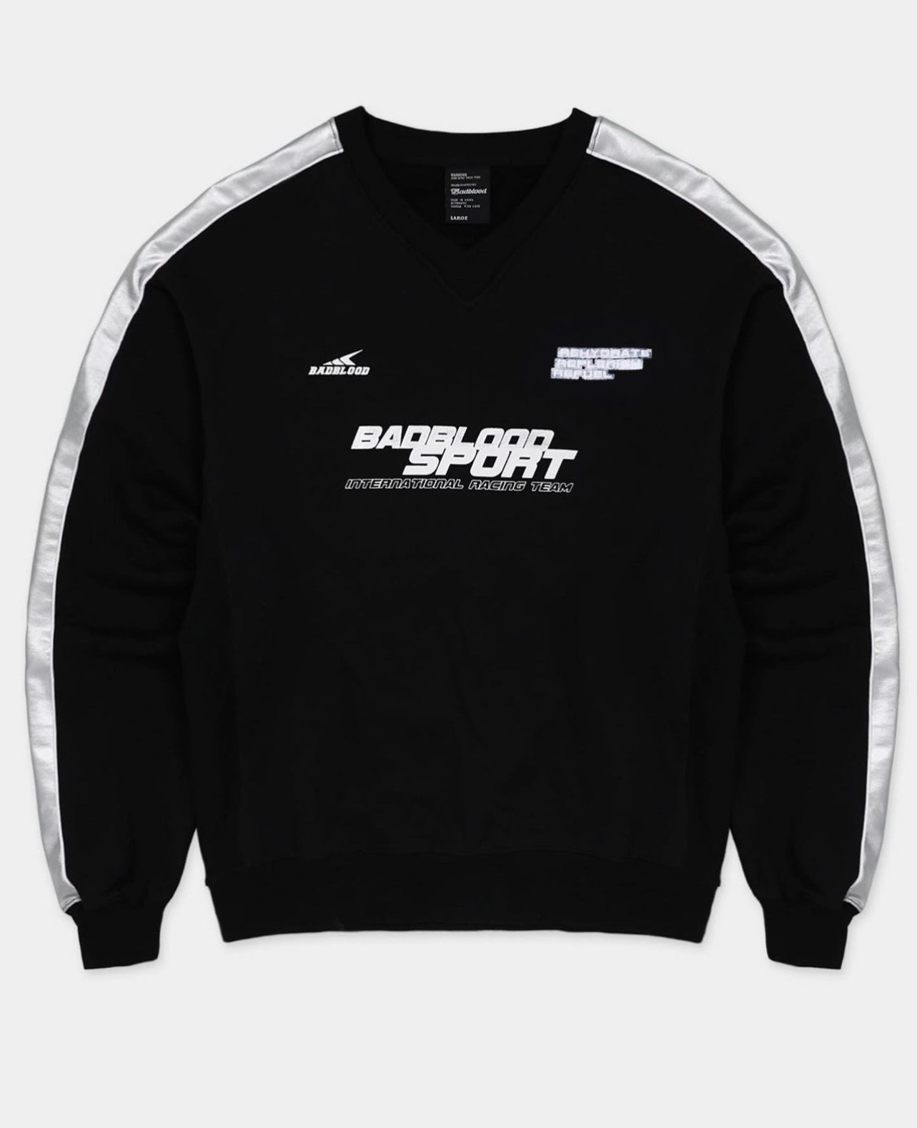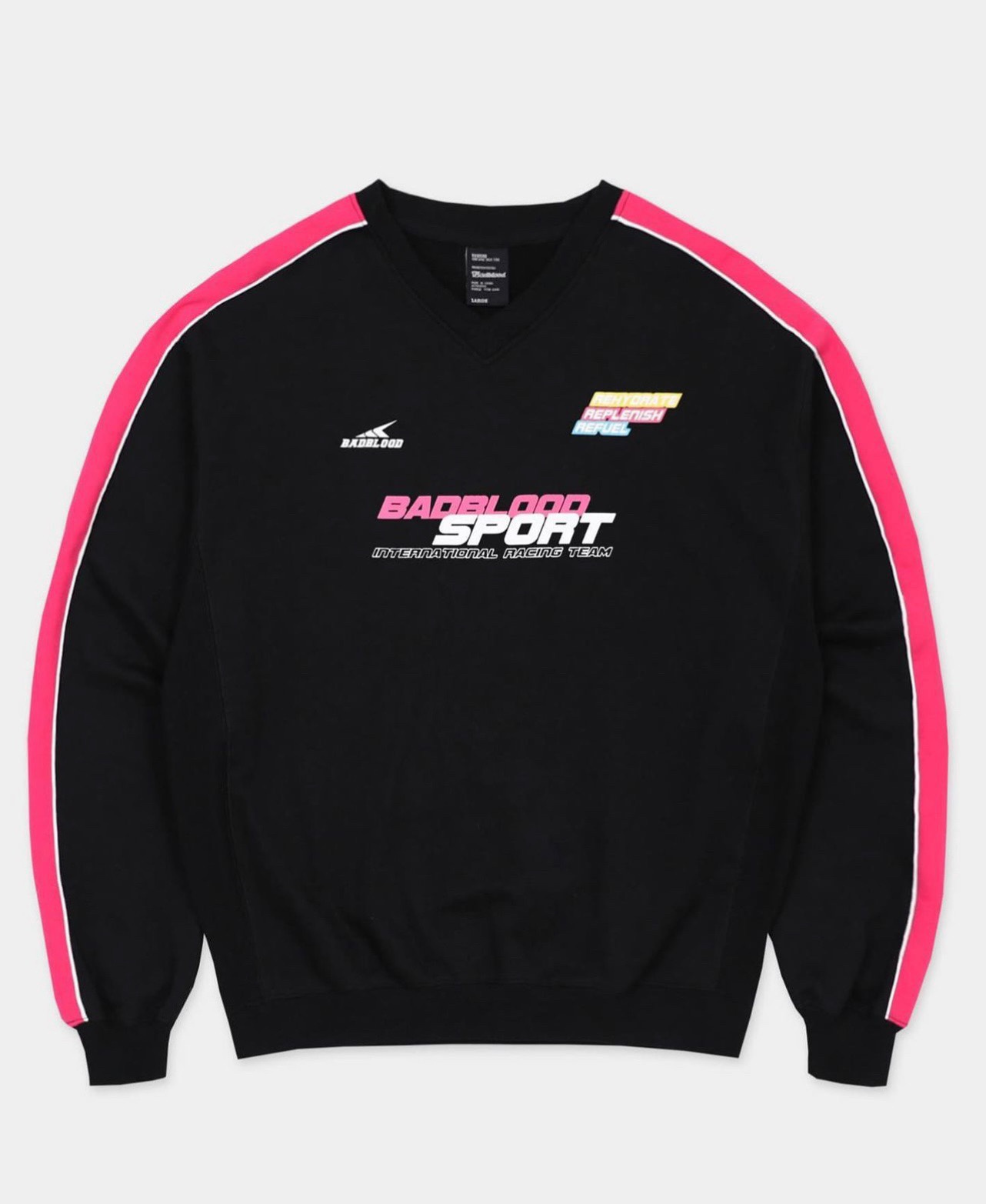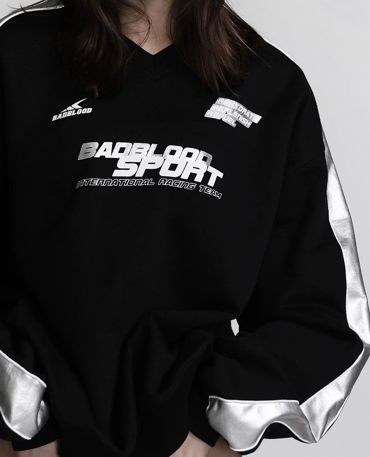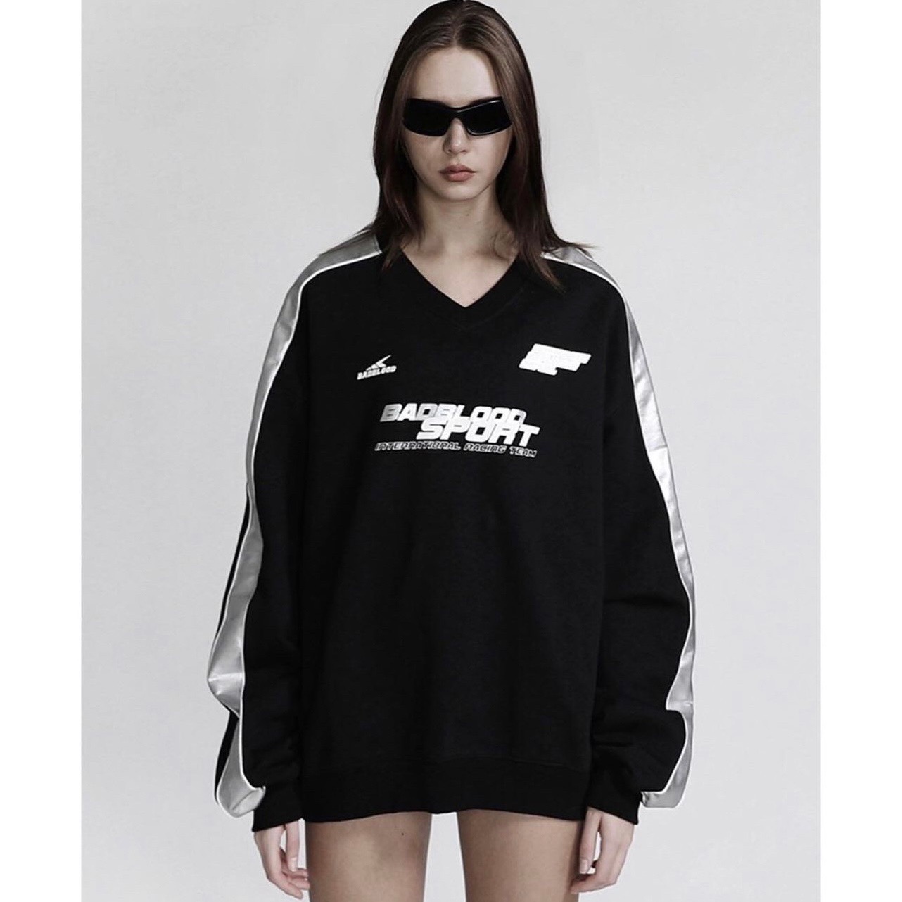 韓國badblood美式復古春季新款V領套頭寬鬆長袖街頭拼色衛衣ins