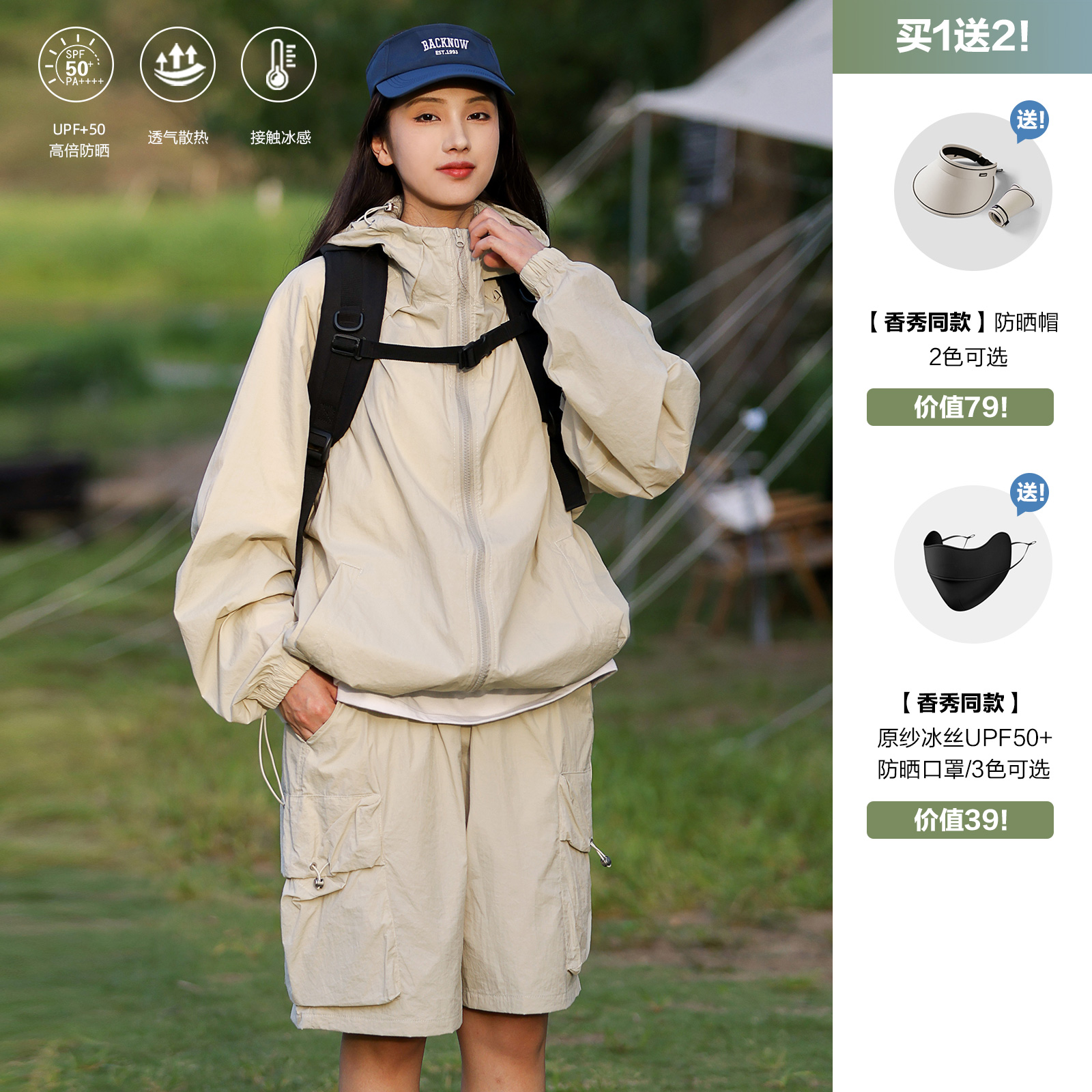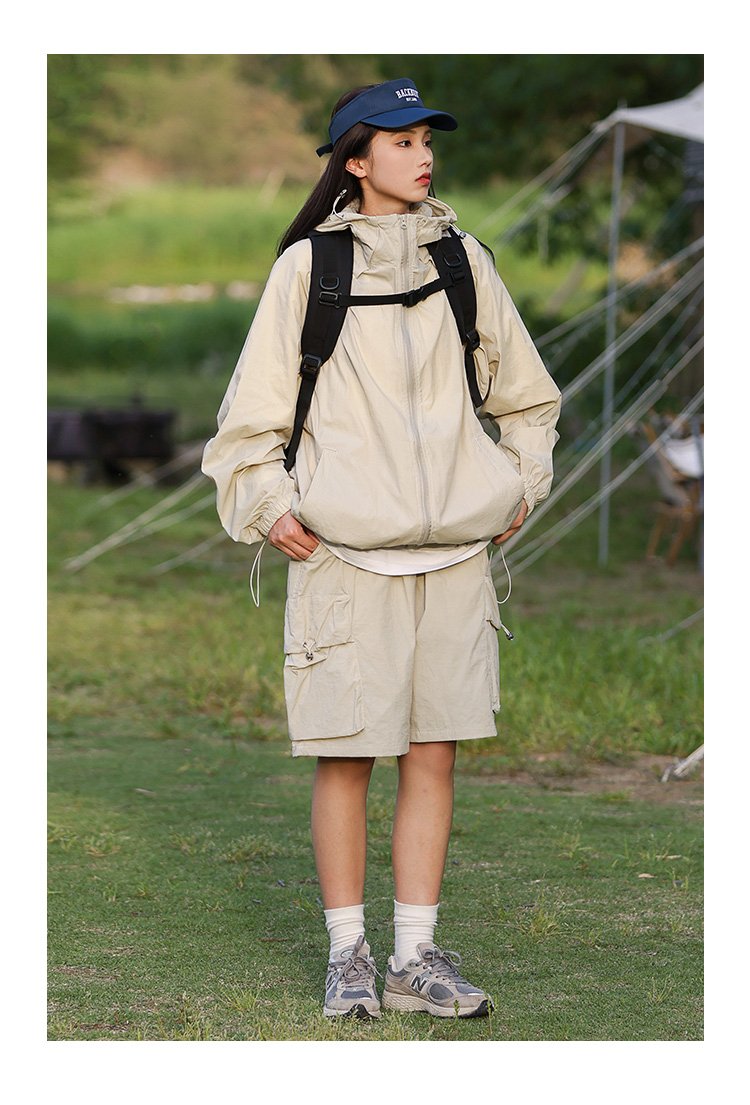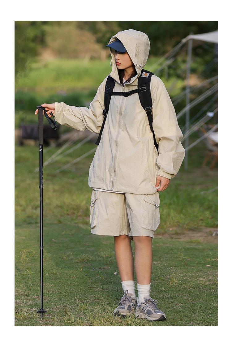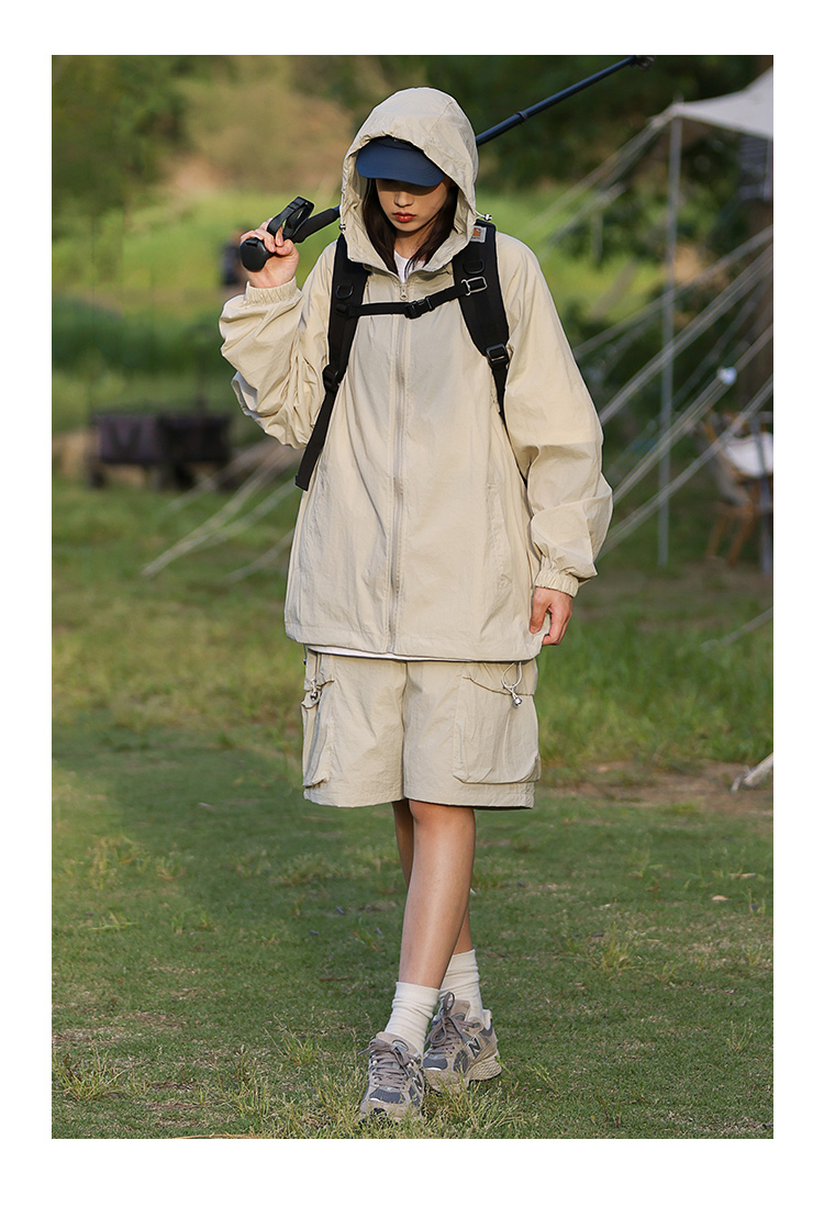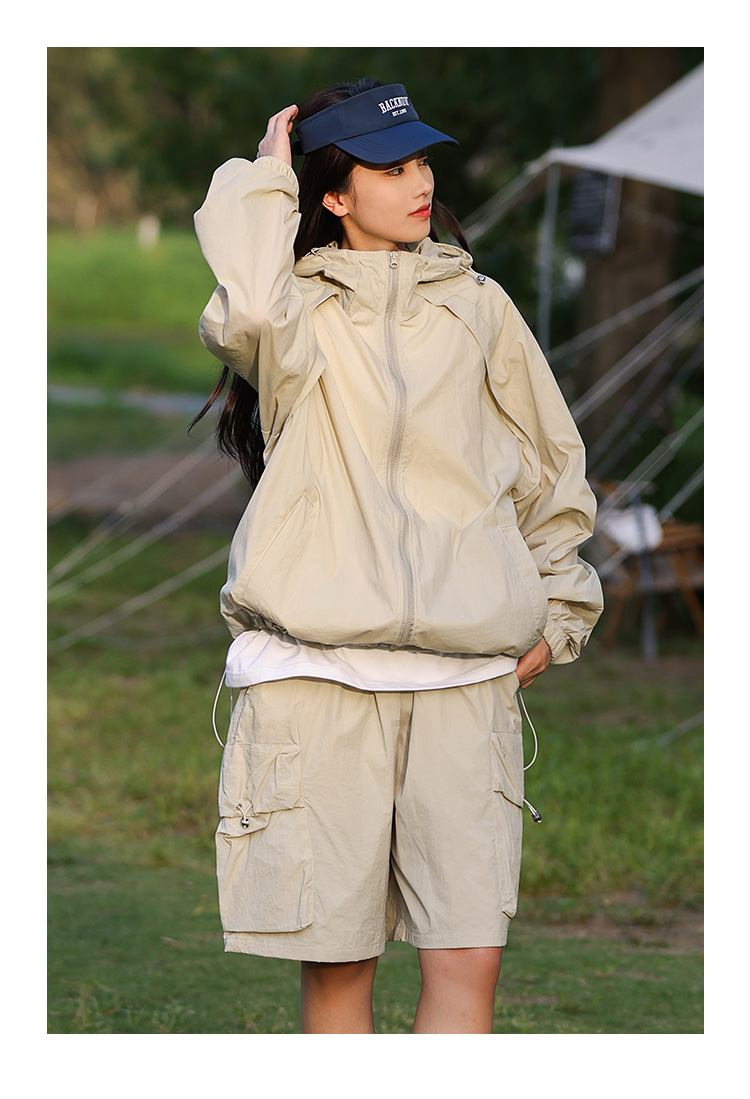JDL MODE 防曬衣UPF50+女純色連帽防曬套裝夏抗UV情侶薄外套