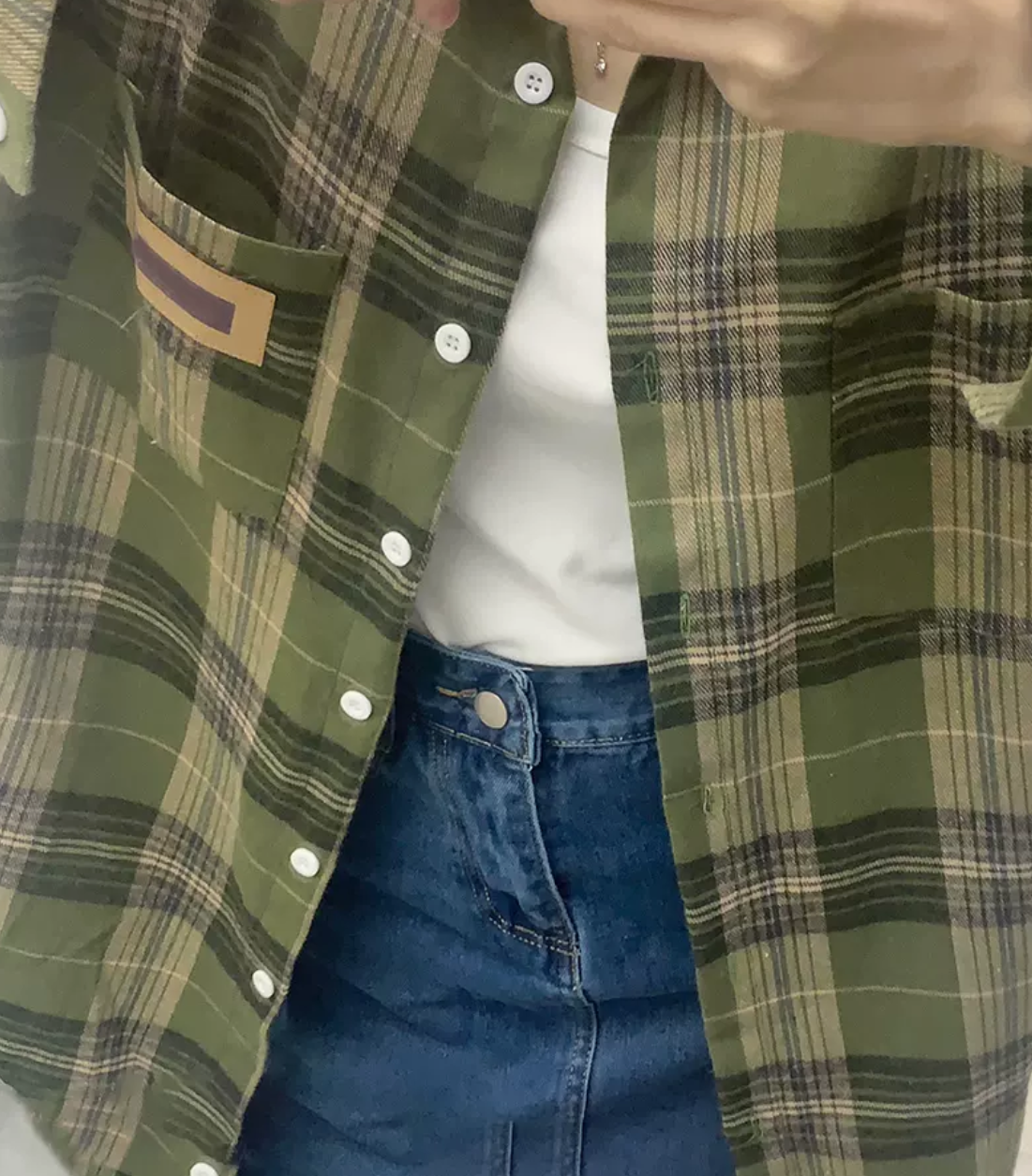 美式復古綠色格子襯衫女2023早秋設計感小眾防曬襯衫小個子上衣潮