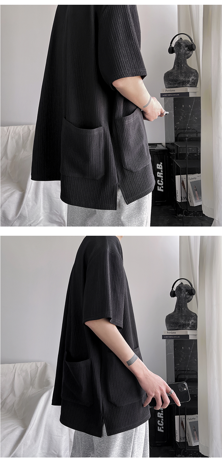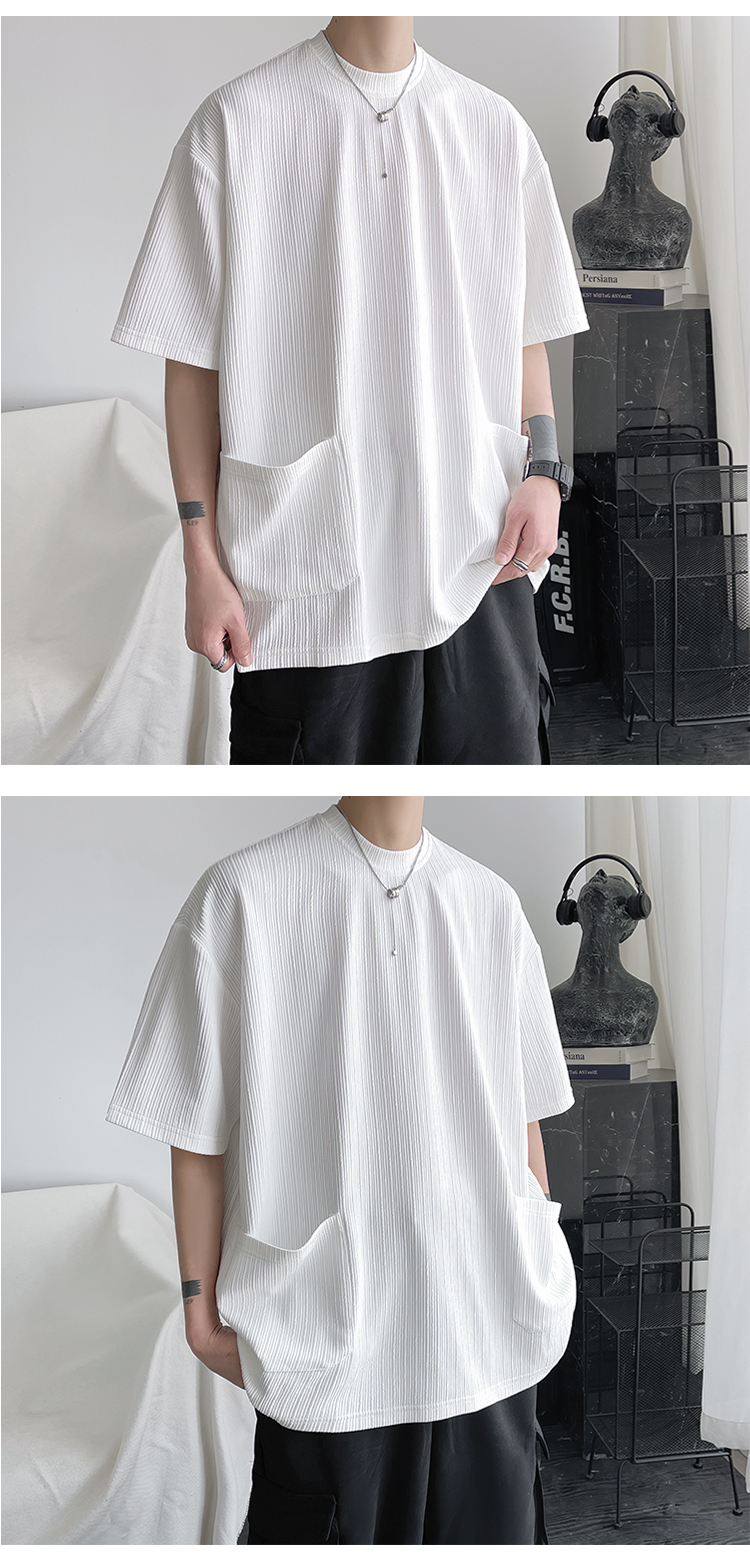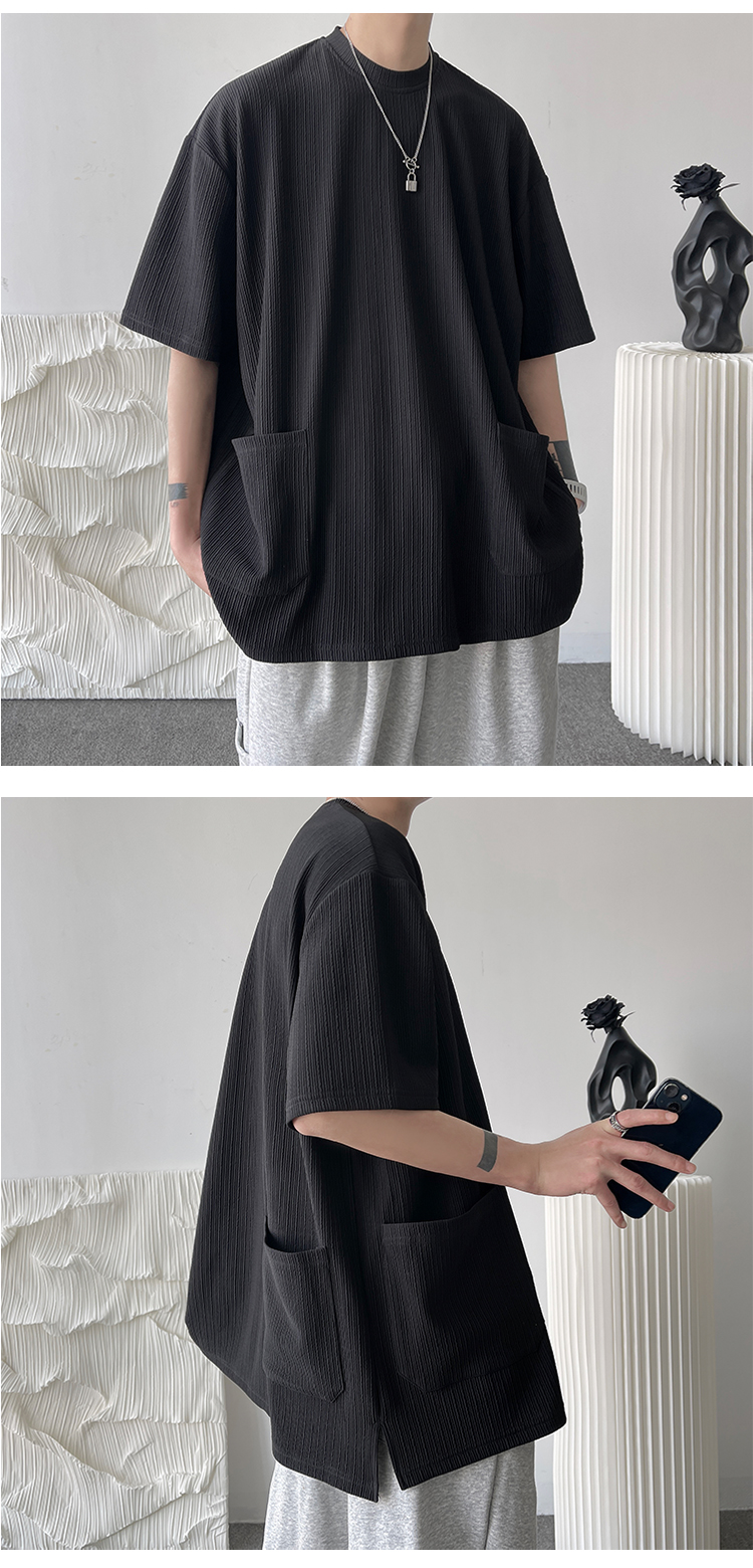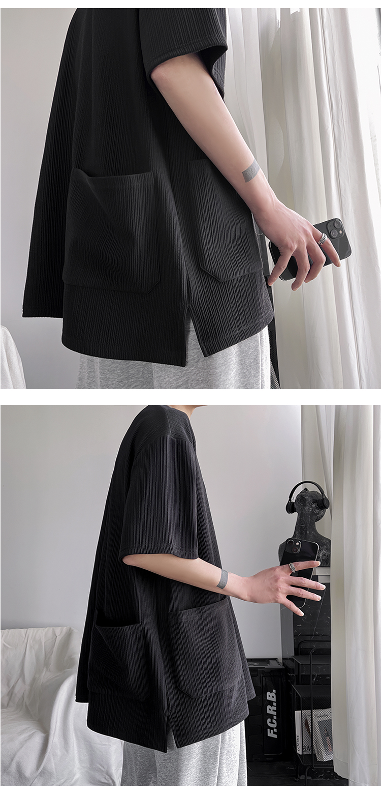墨綠色冰絲短袖t恤男士夏季潮牌多口袋半袖上衣大尺碼寬鬆速乾T恤T