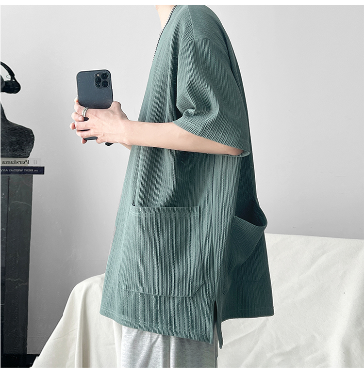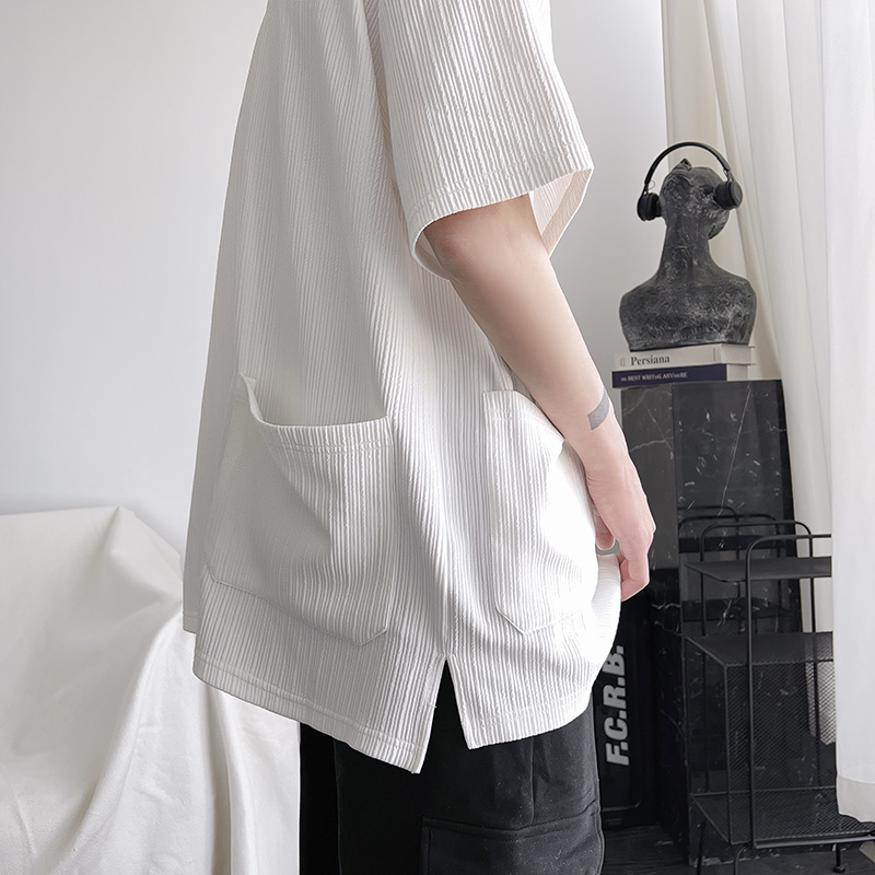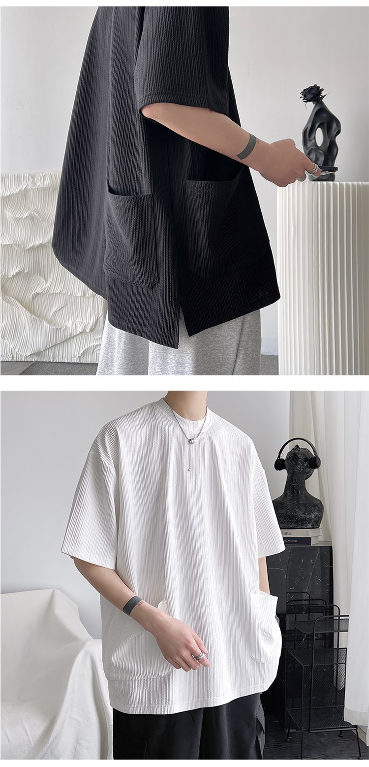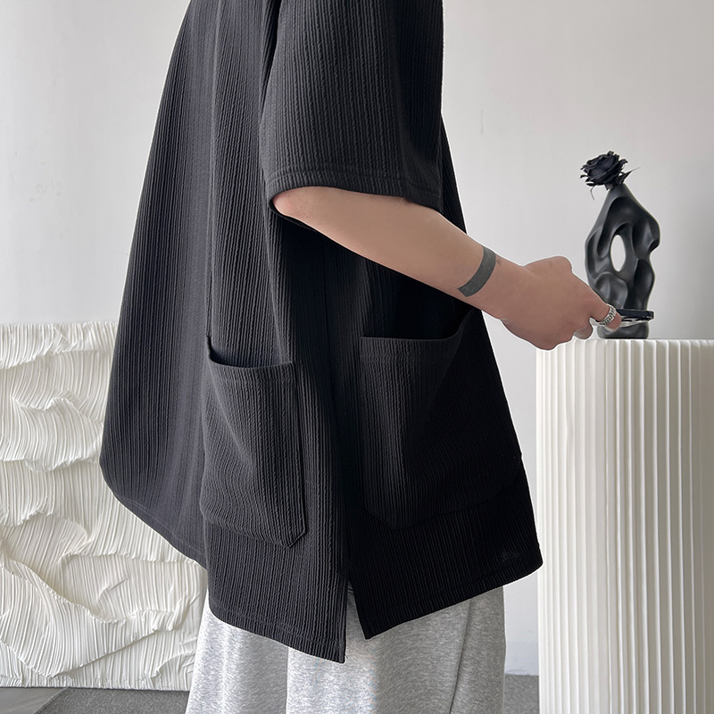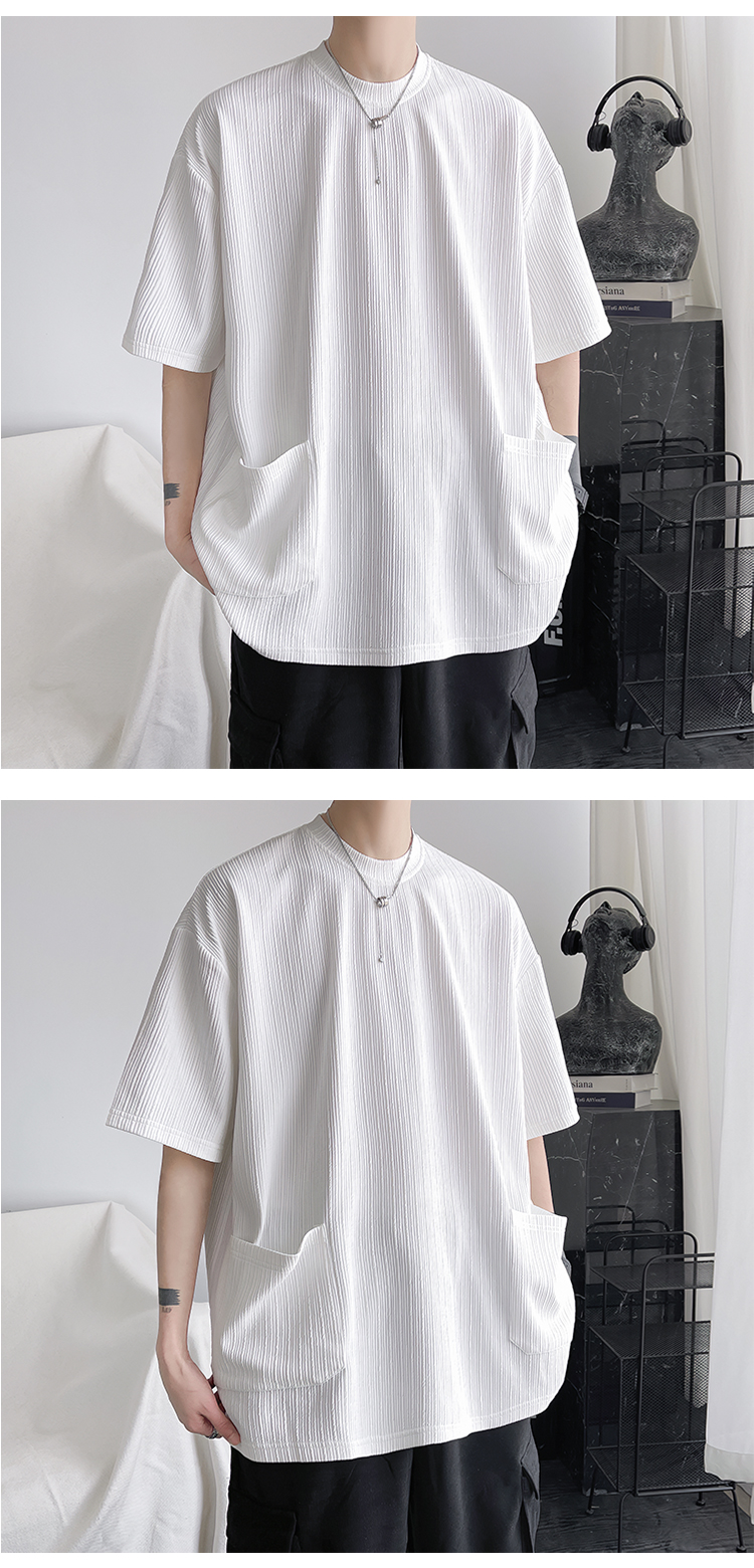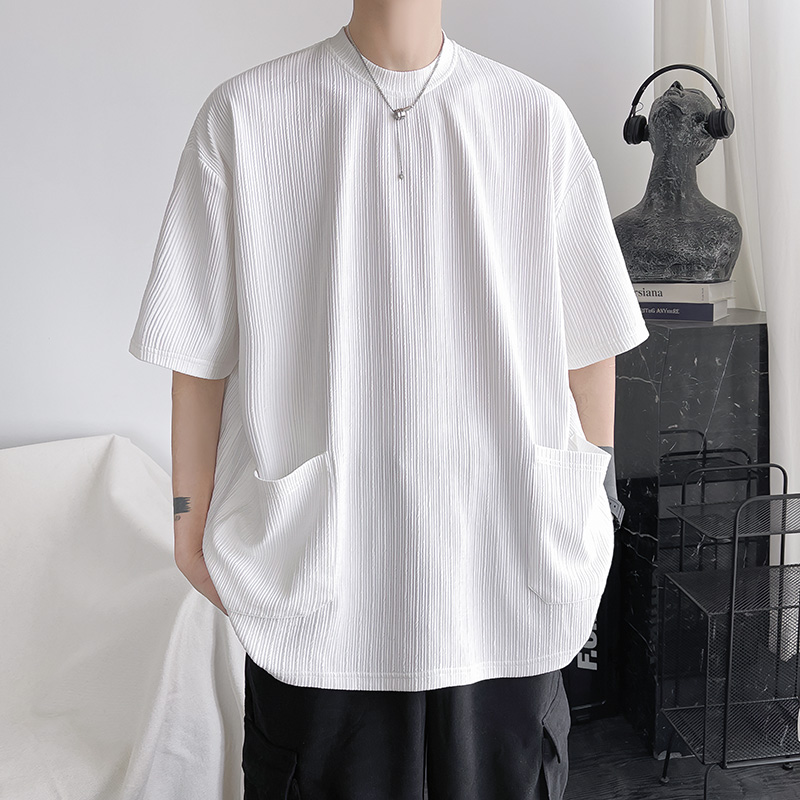 墨綠色冰絲短袖t恤男士夏季潮牌多口袋半袖上衣大尺碼寬鬆速乾T恤T