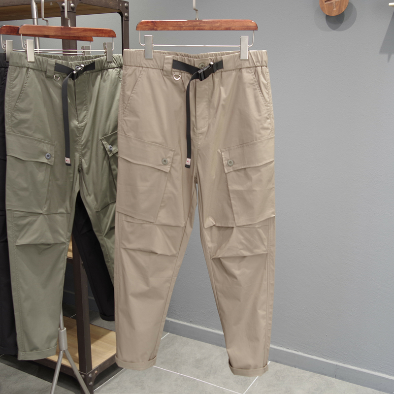特+線……機能彈力立體剪裁男夏薄款排汗機能工裝男小直筒休閒褲