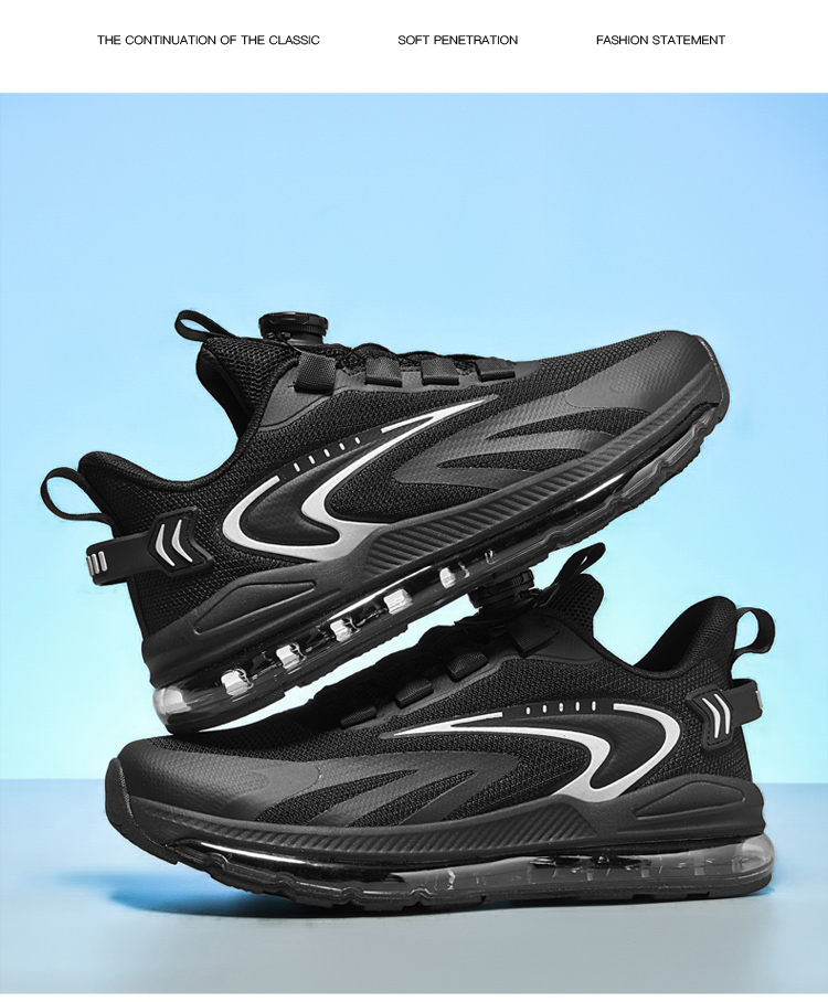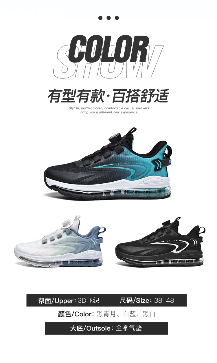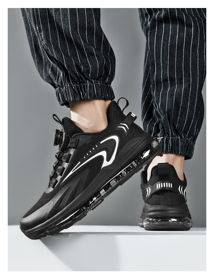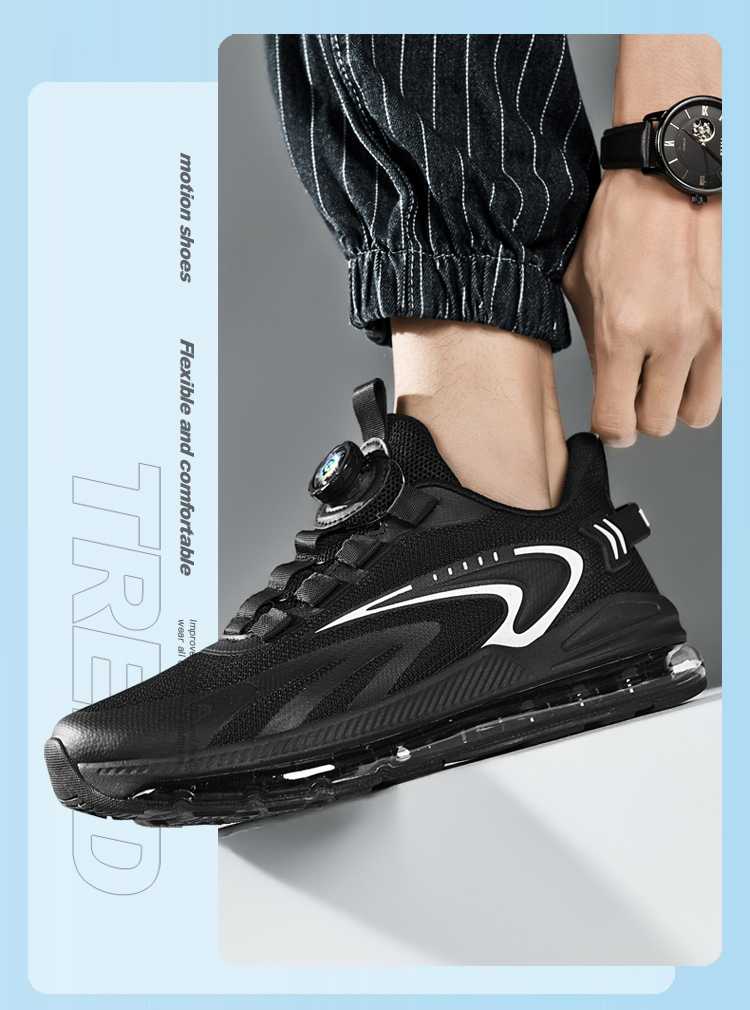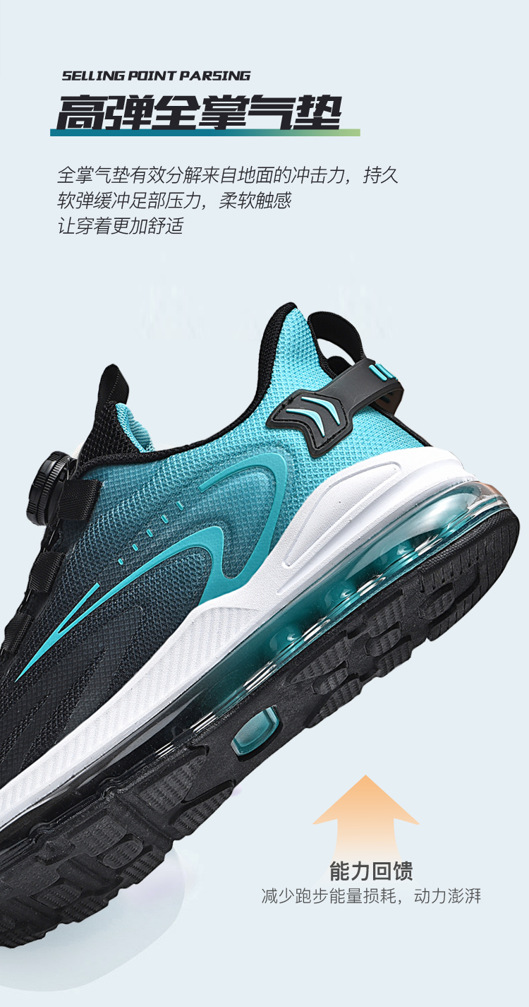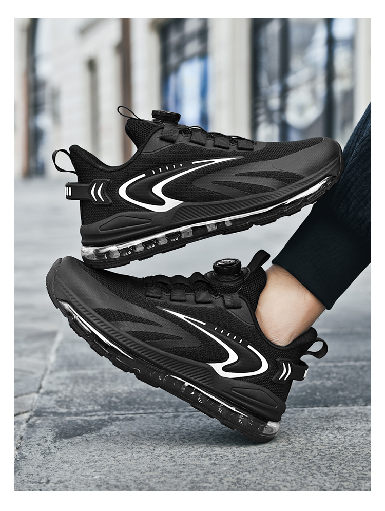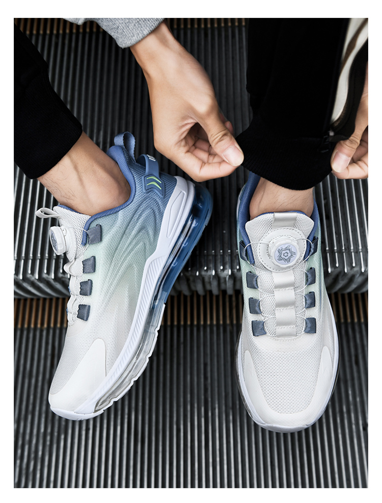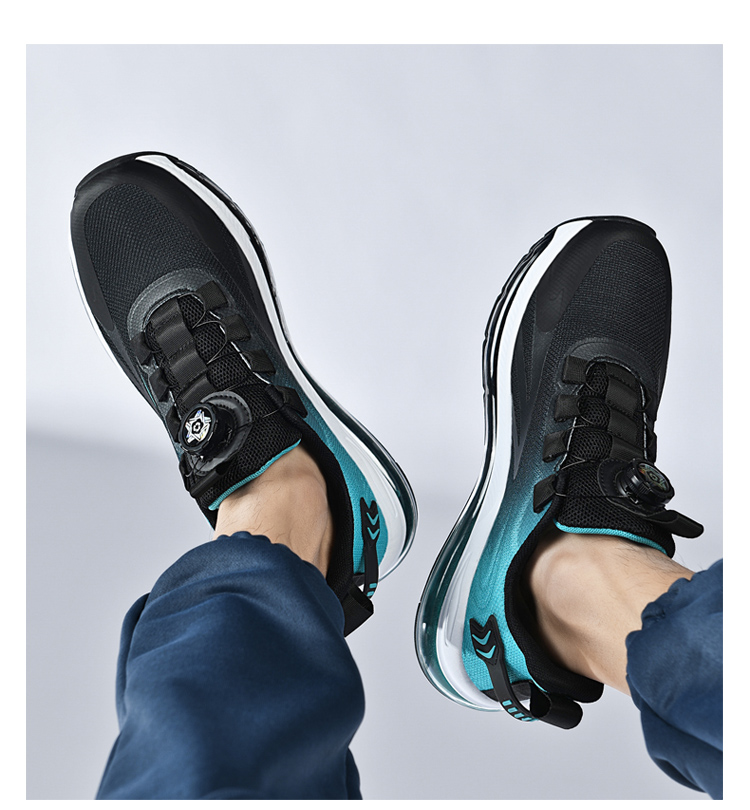 男鞋夏季運動鞋旋轉鈕釦免系鞋帶軟底青少年氣墊減震大尺碼跑步鞋潮