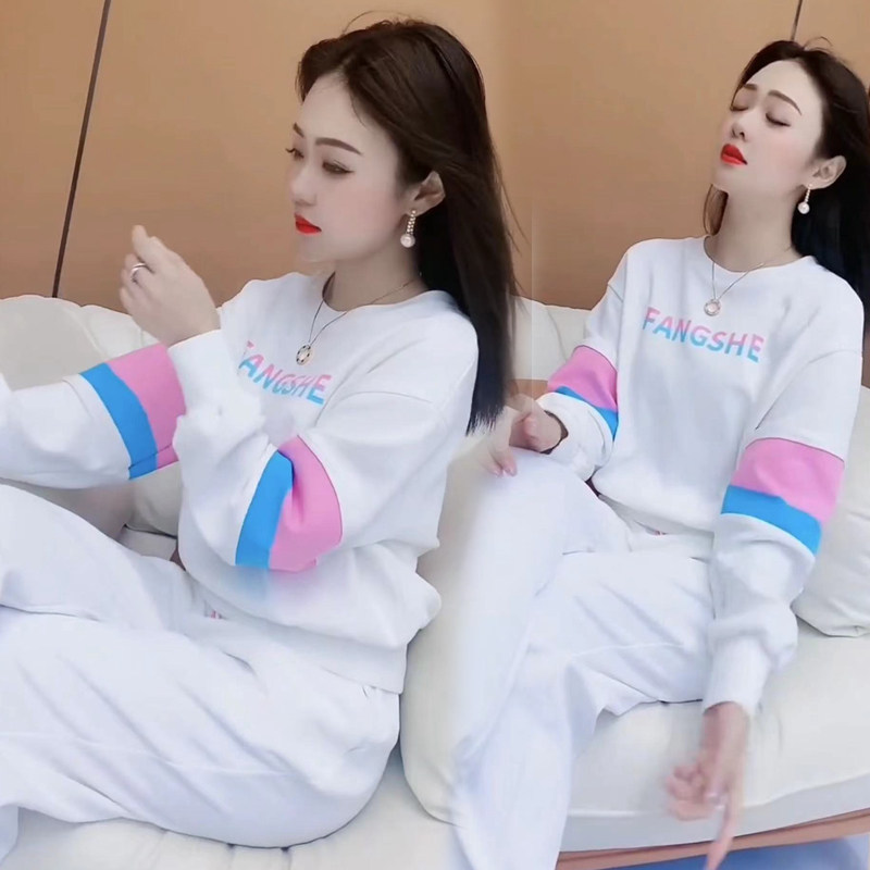 歐洲站休閒運動套裝女2023年春秋新款韓版加絨加厚顯瘦時尚兩件套