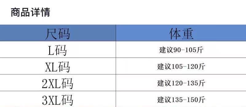 尺碼 L(90-105斤),XL(105-120斤),2XL(120-135斤),3XL(135-150斤)