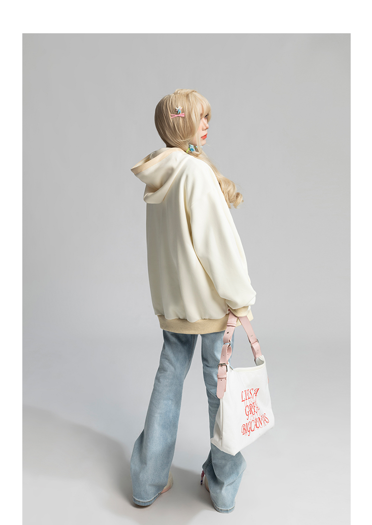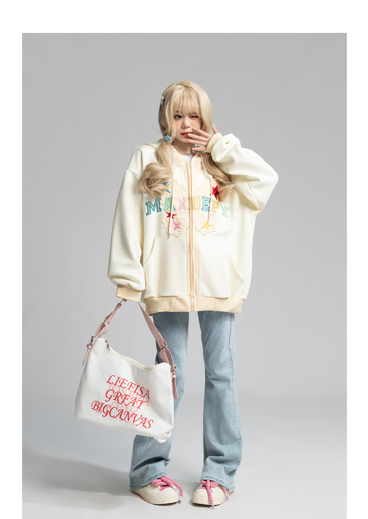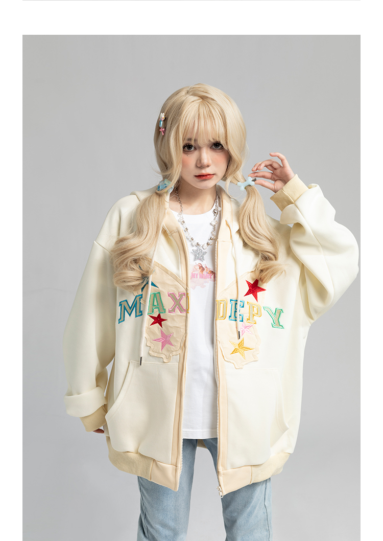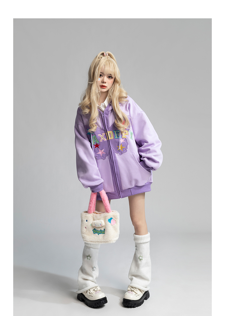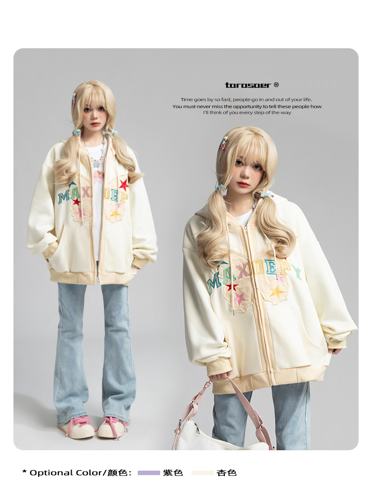 TARASAER日系甜美風布貼繡開衫外套女春季寬鬆設計感甜酷連帽運動衫