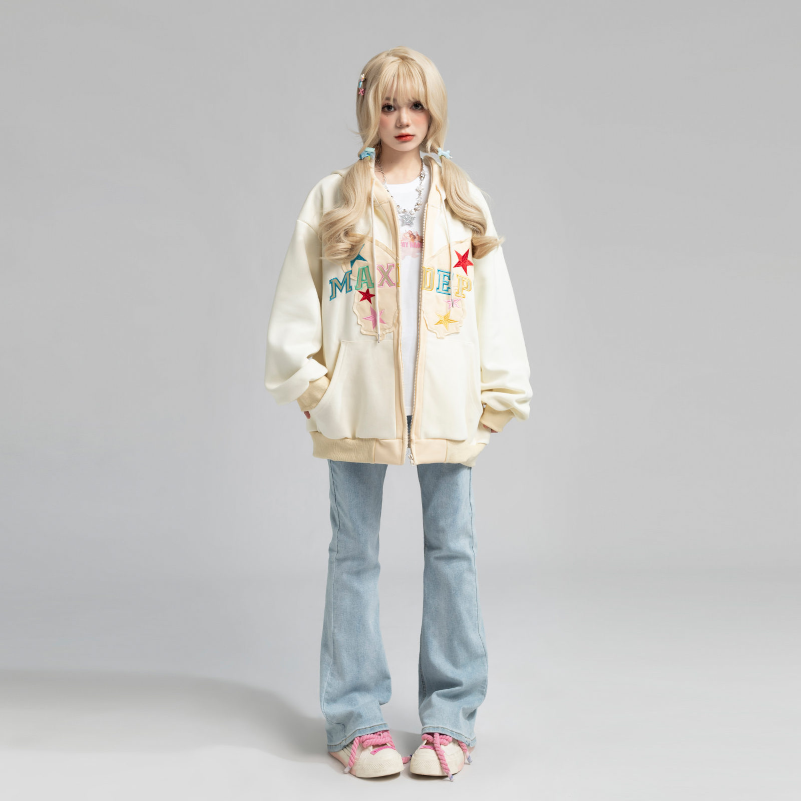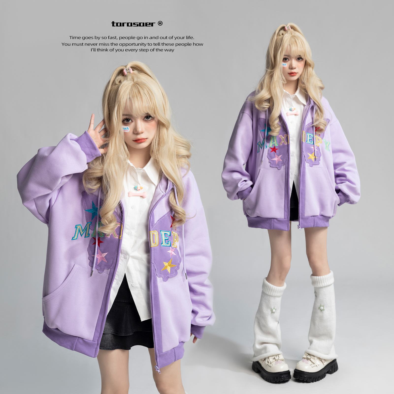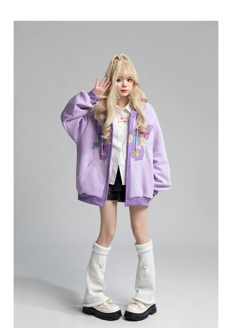 TARASAER日系甜美風布貼繡開衫外套女春季寬鬆設計感甜酷連帽運動衫