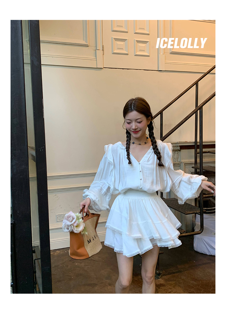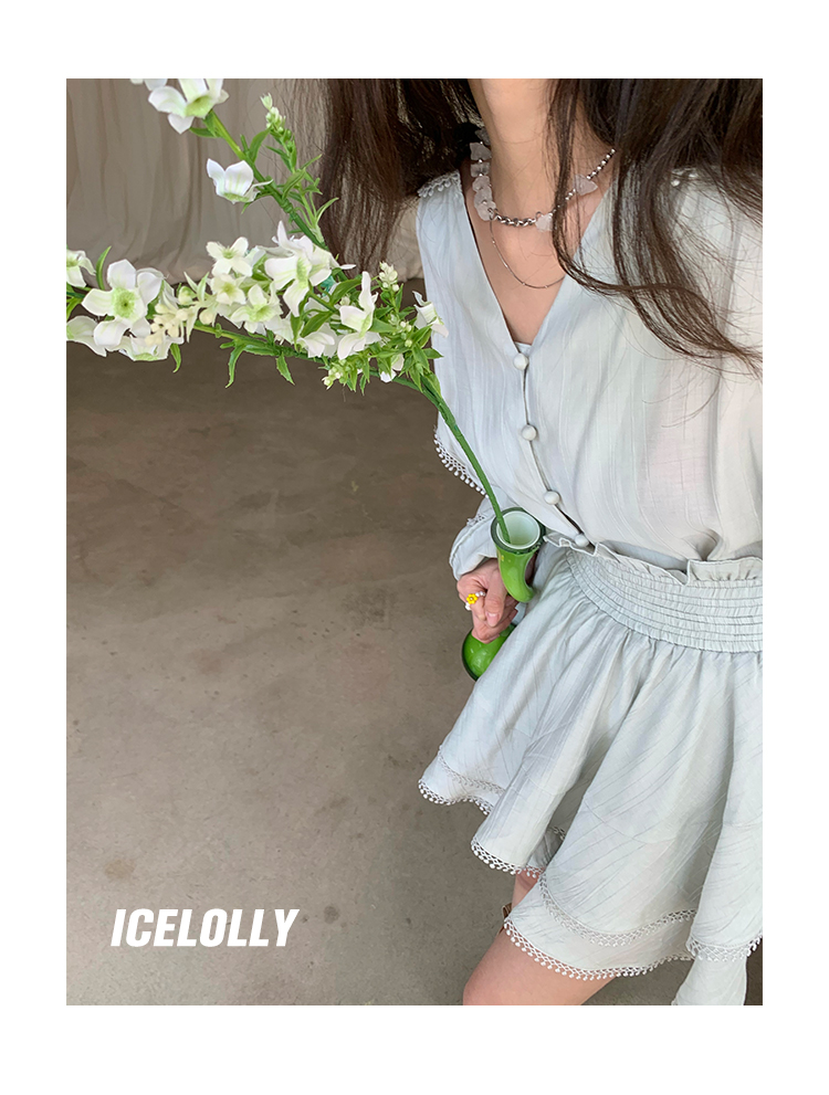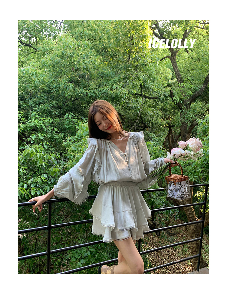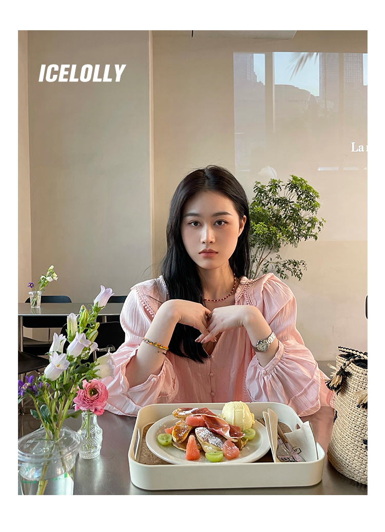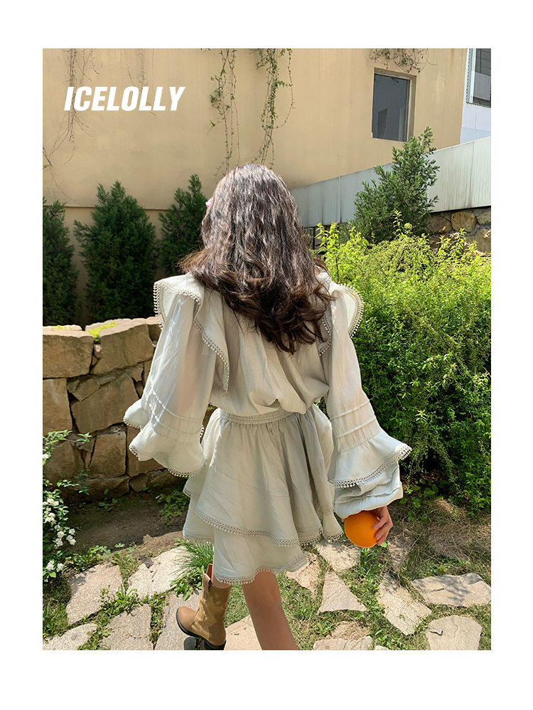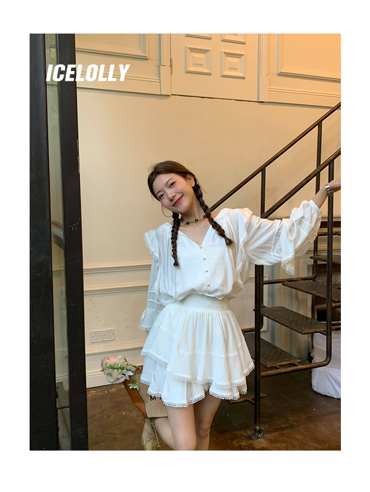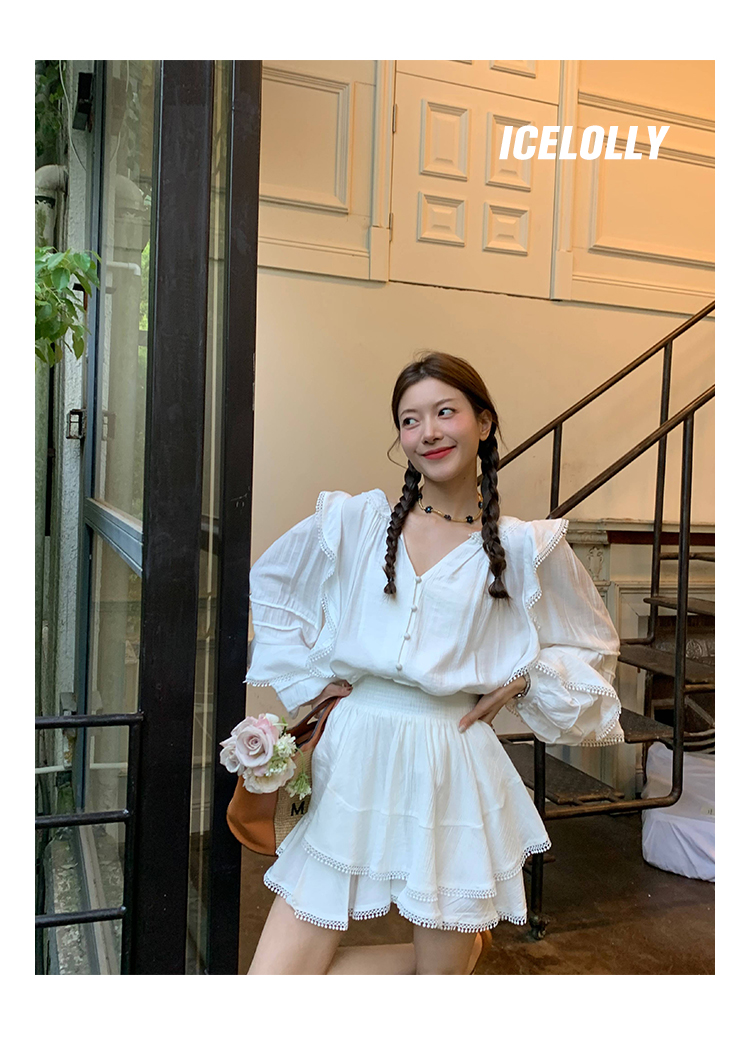 ICELOLLY設計感小眾泡泡袖t襯衫女夏襯衫套裝仙女上衣超仙法式甜美