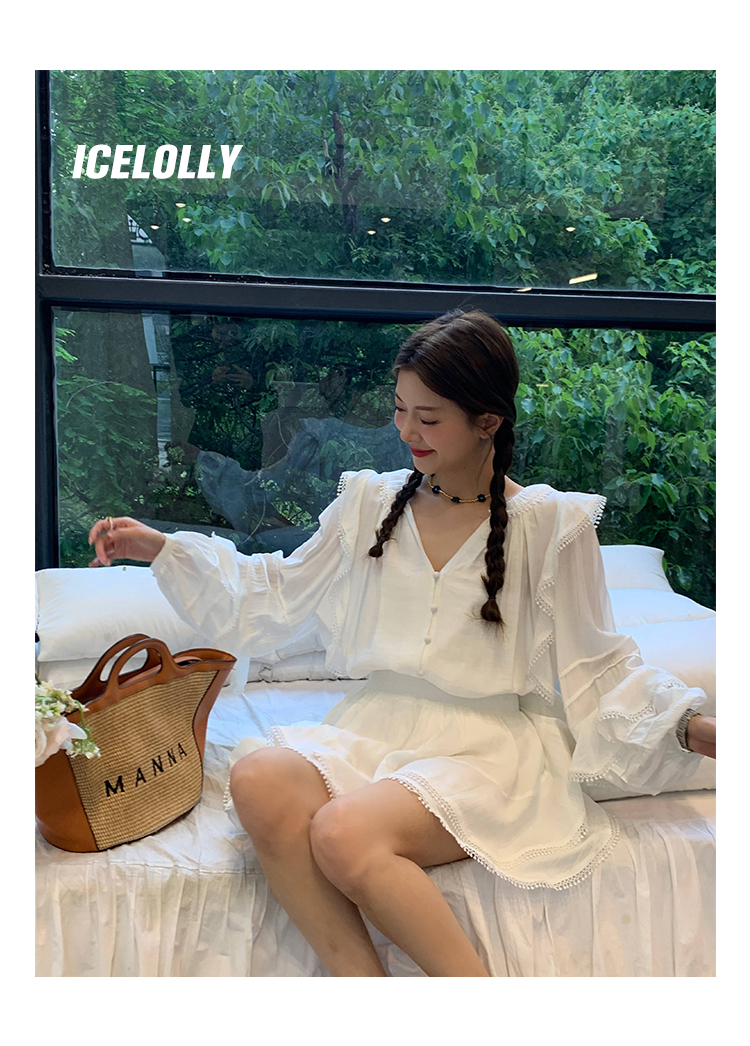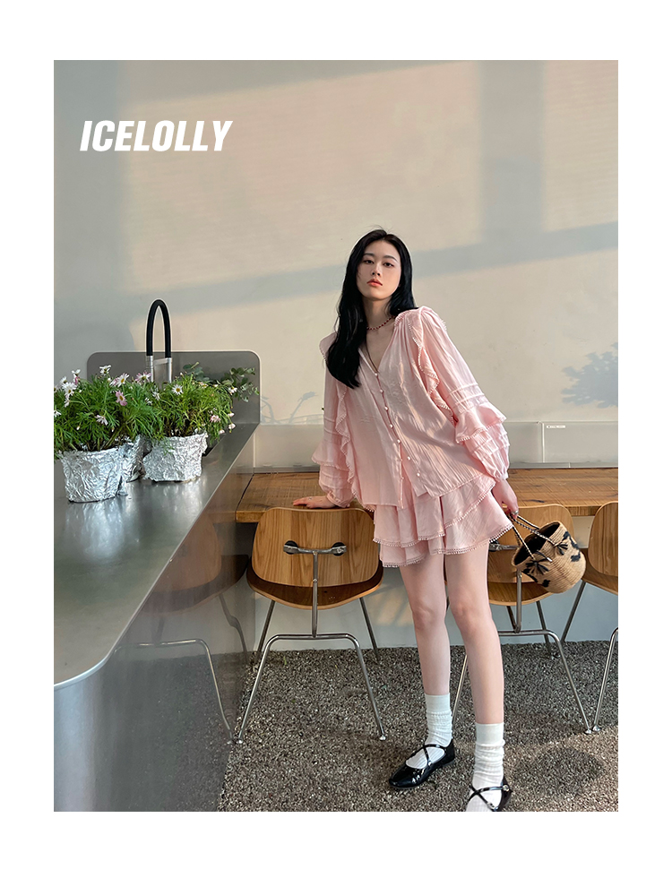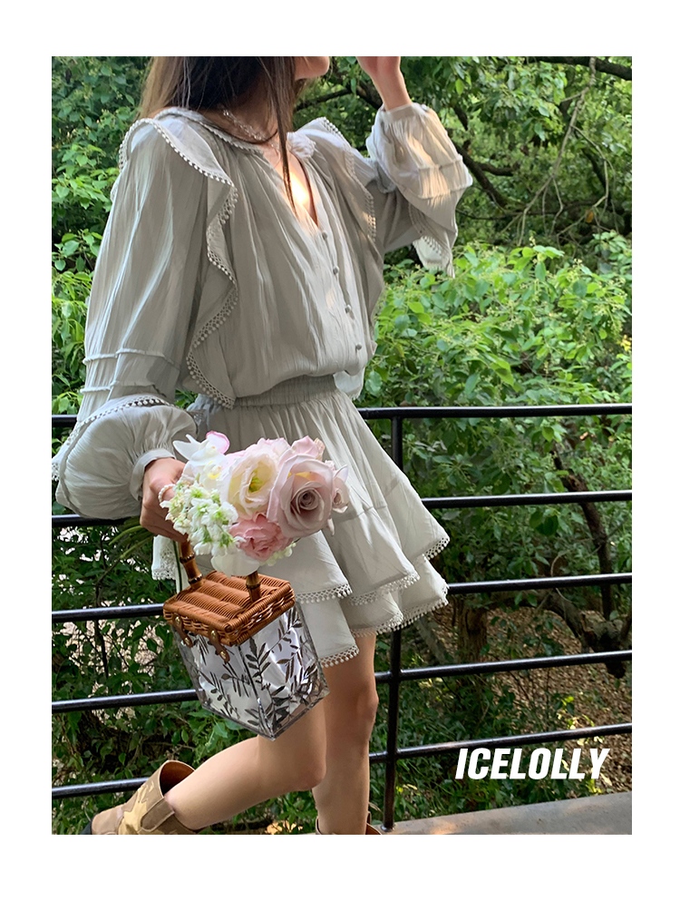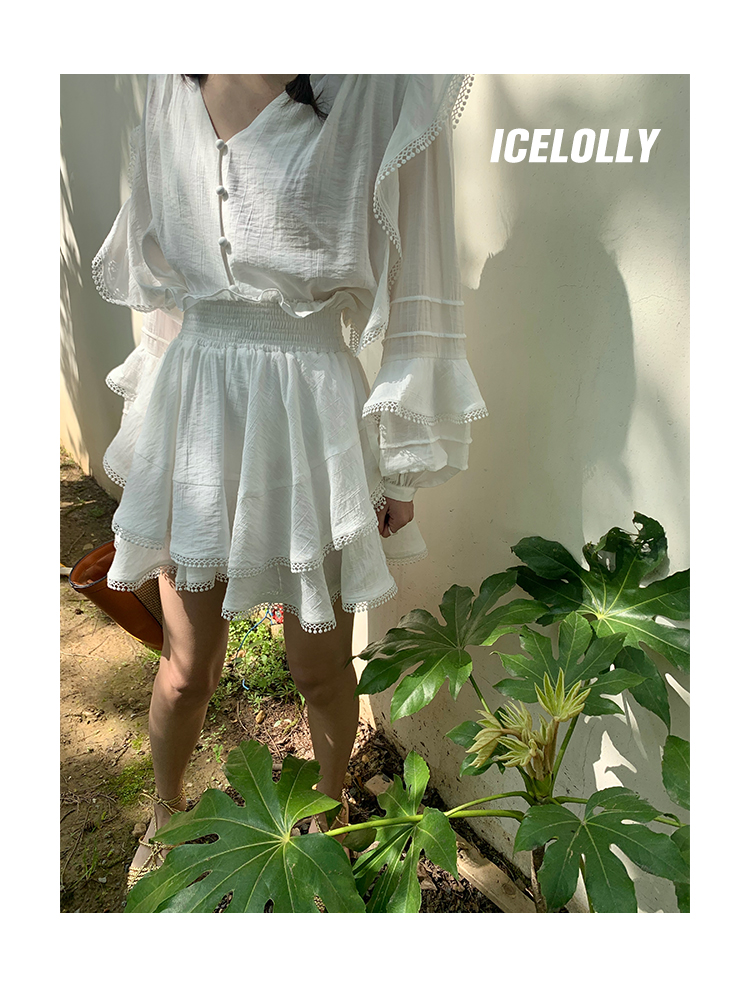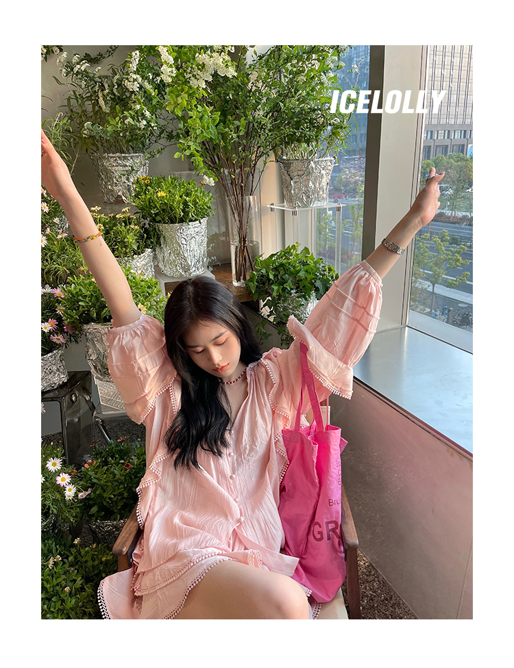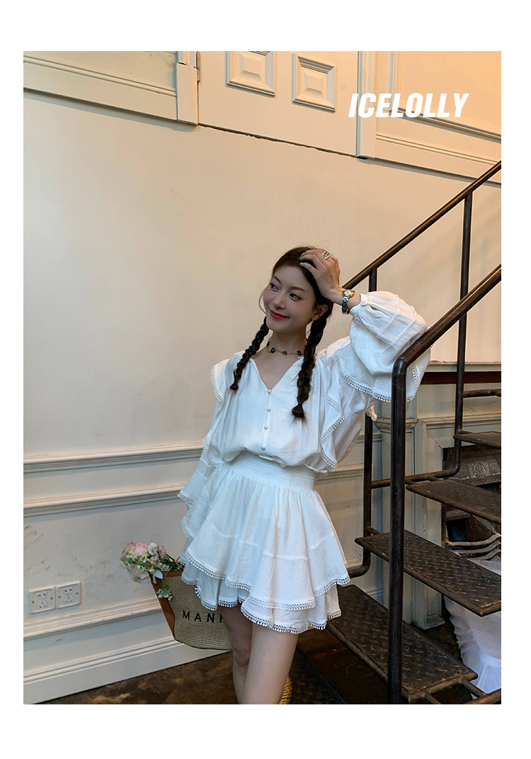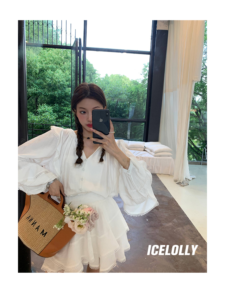 ICELOLLY設計感小眾泡泡袖t襯衫女夏襯衫套裝仙女上衣超仙法式甜美