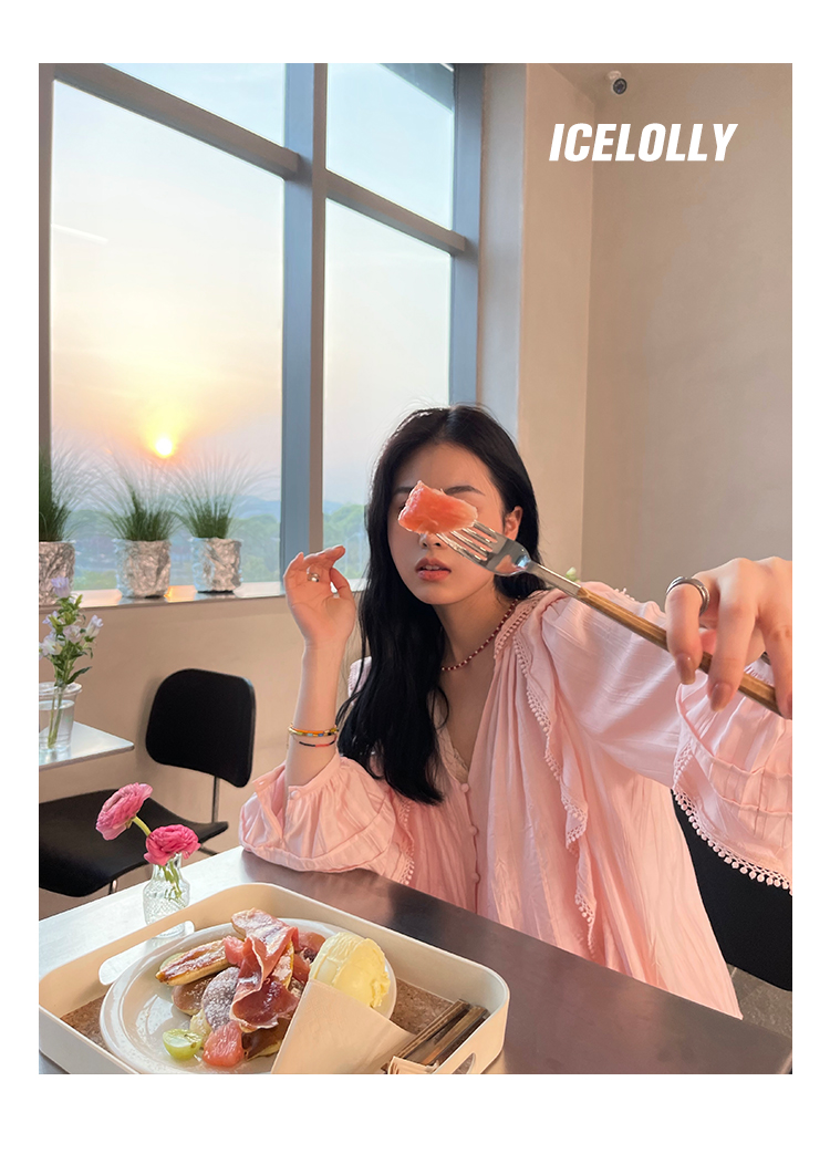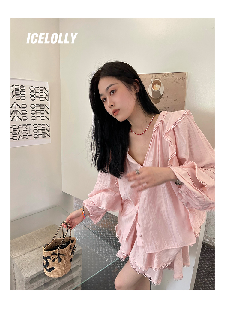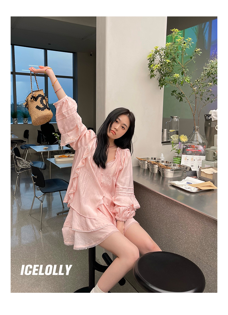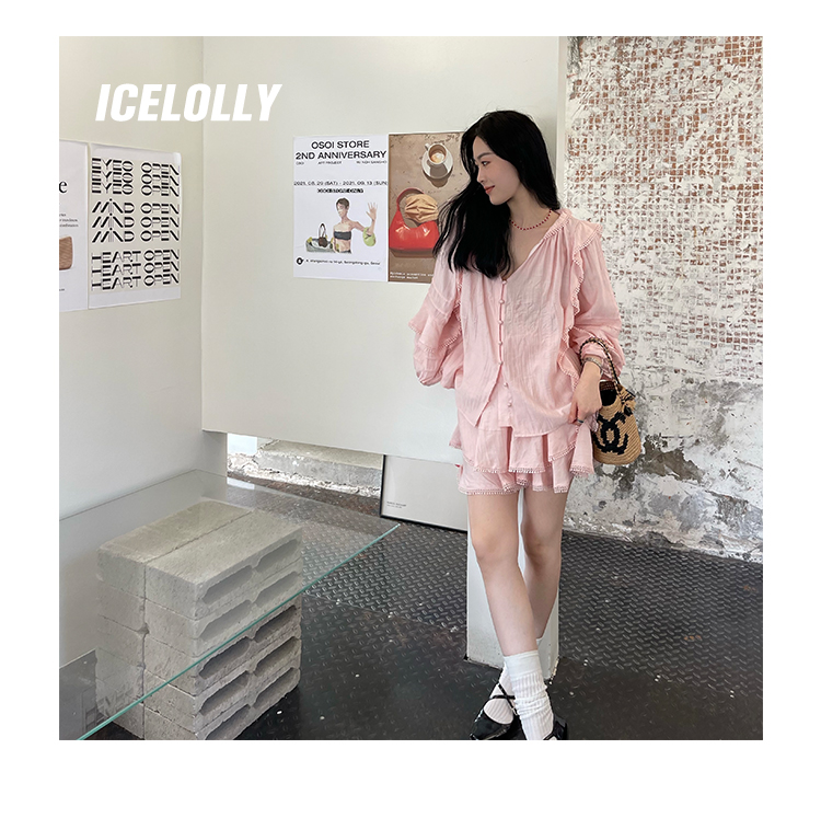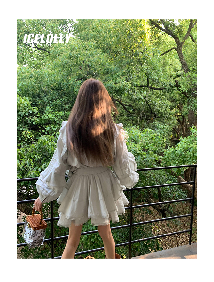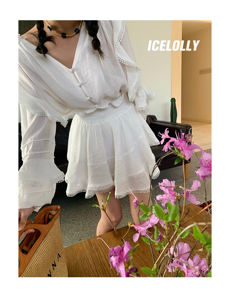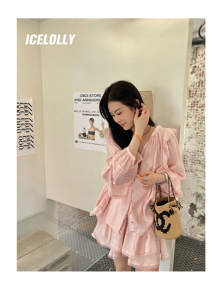 ICELOLLY設計感小眾泡泡袖t襯衫女夏襯衫套裝仙女上衣超仙法式甜美