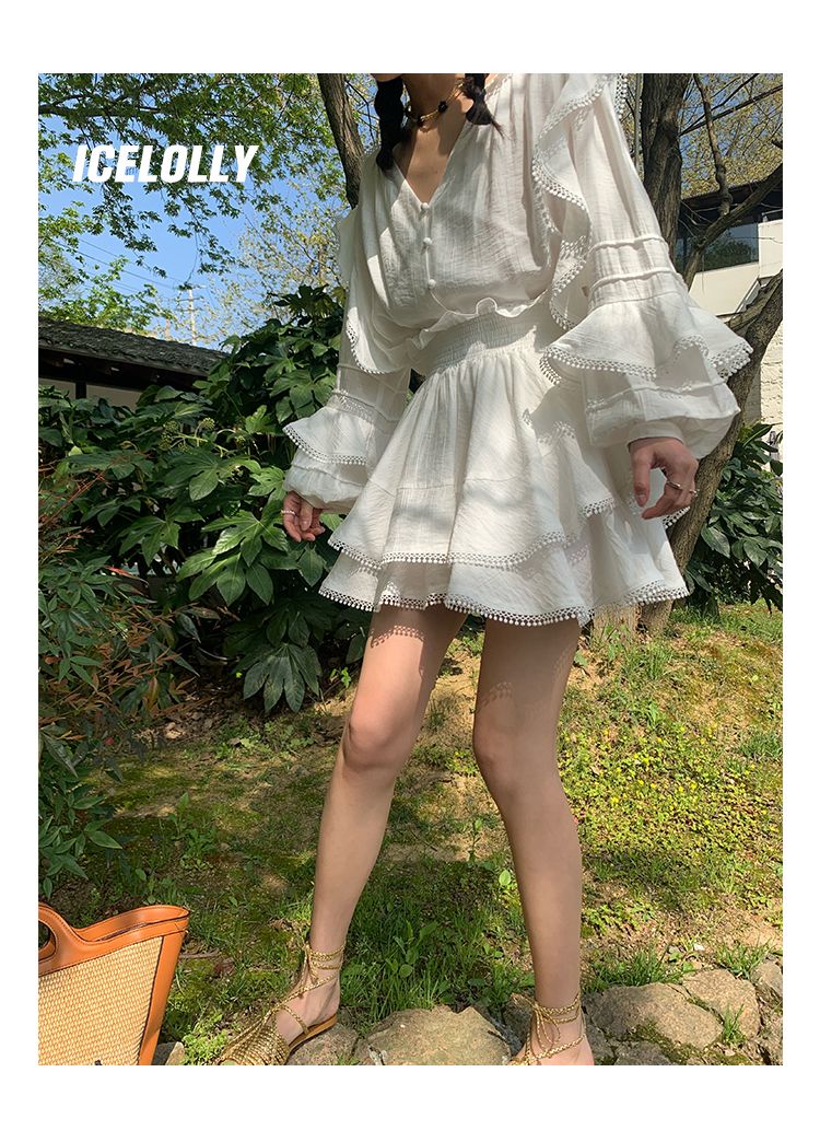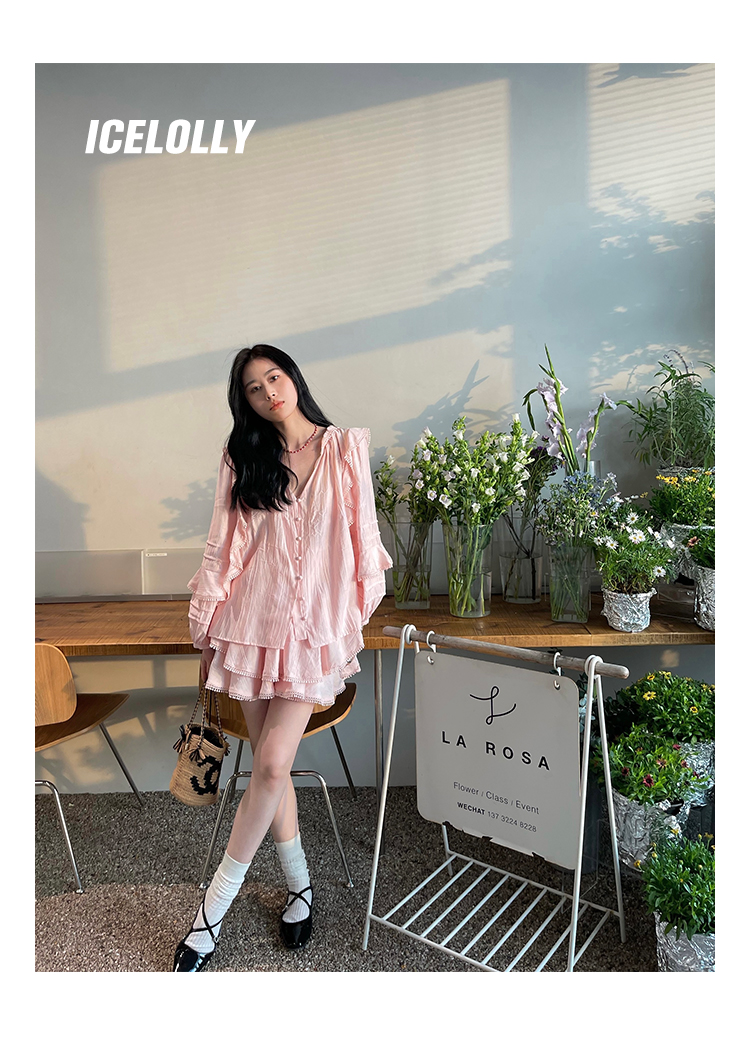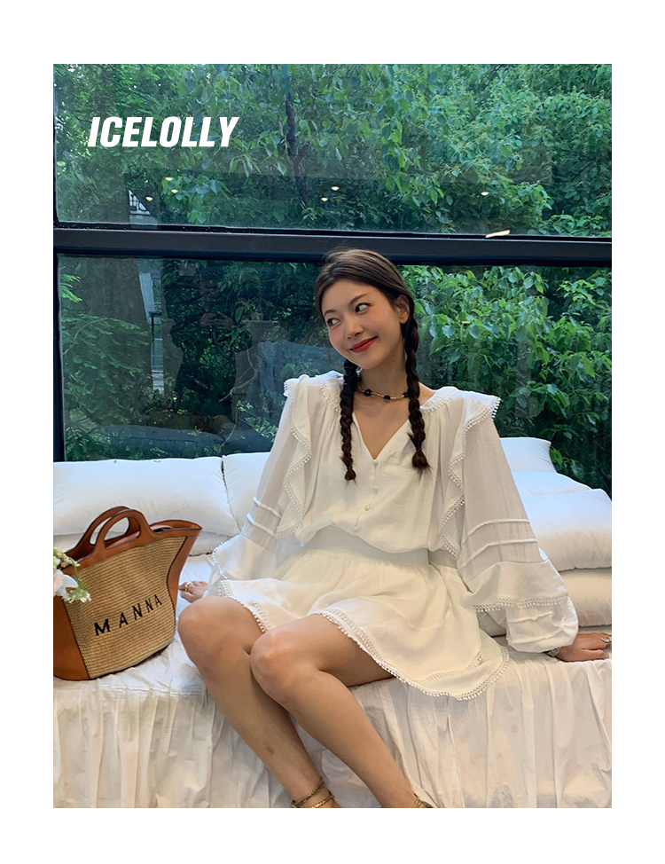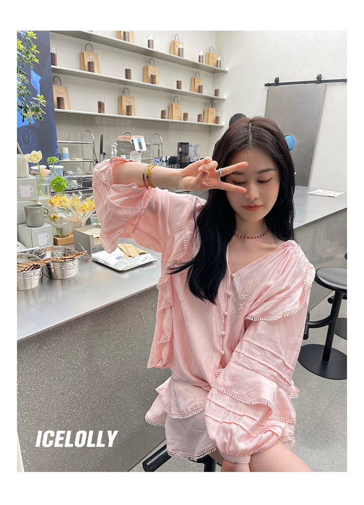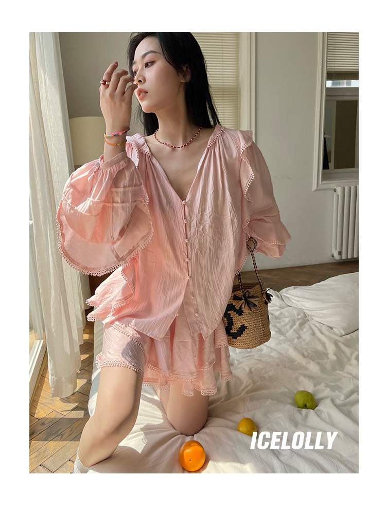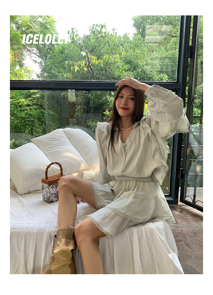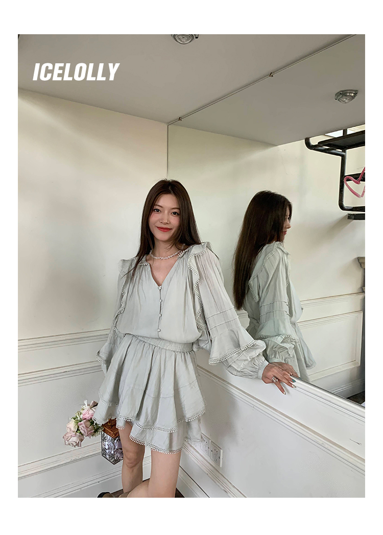 ICELOLLY設計感小眾泡泡袖t襯衫女夏襯衫套裝仙女上衣超仙法式甜美