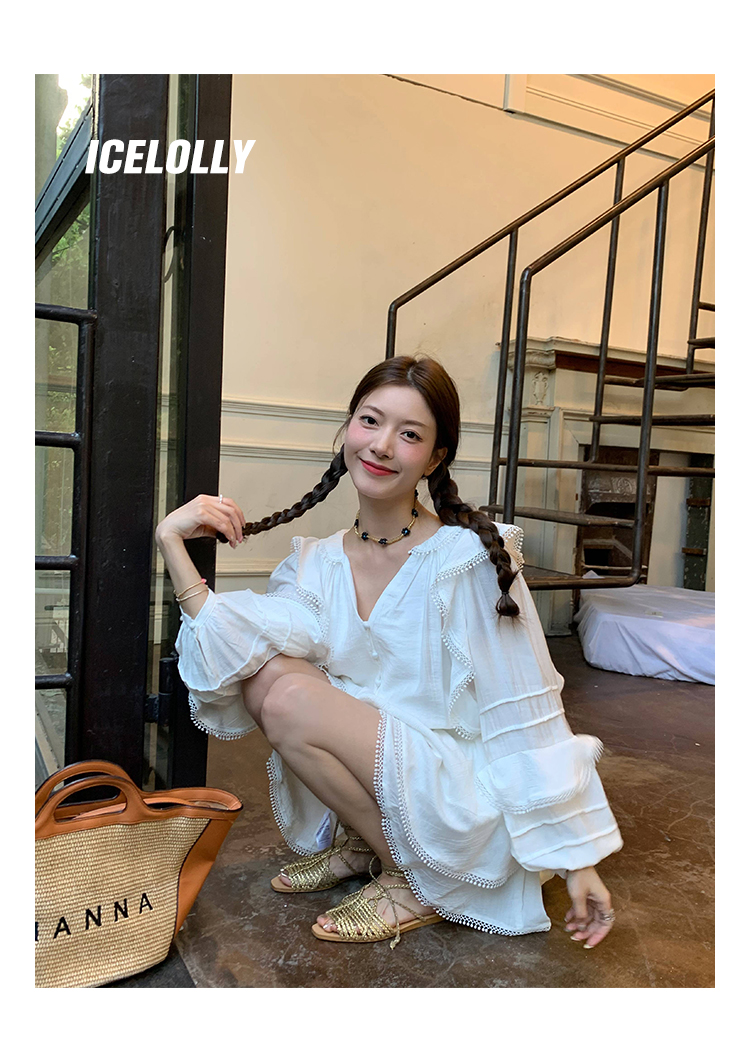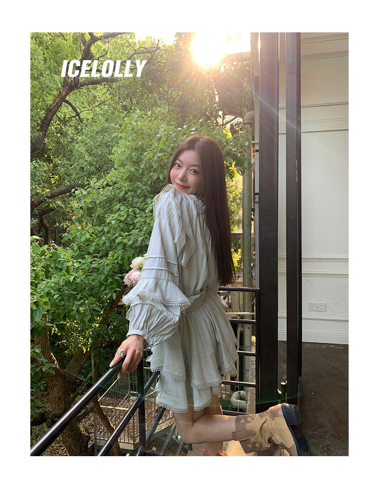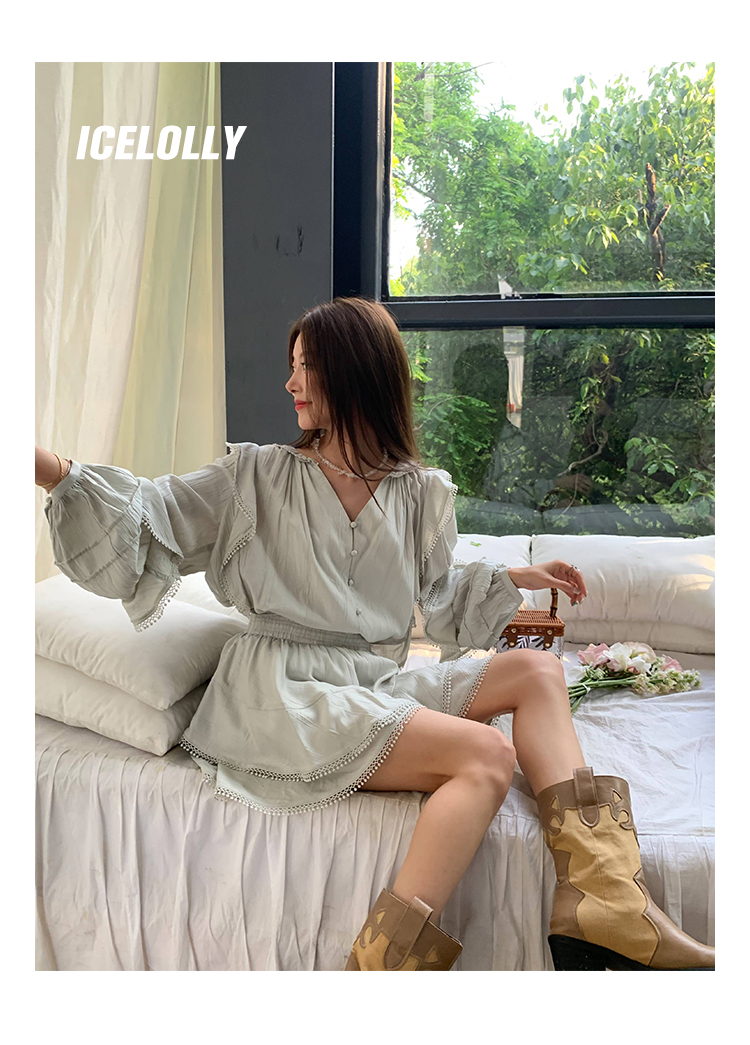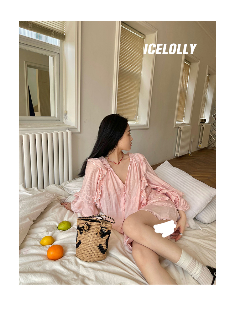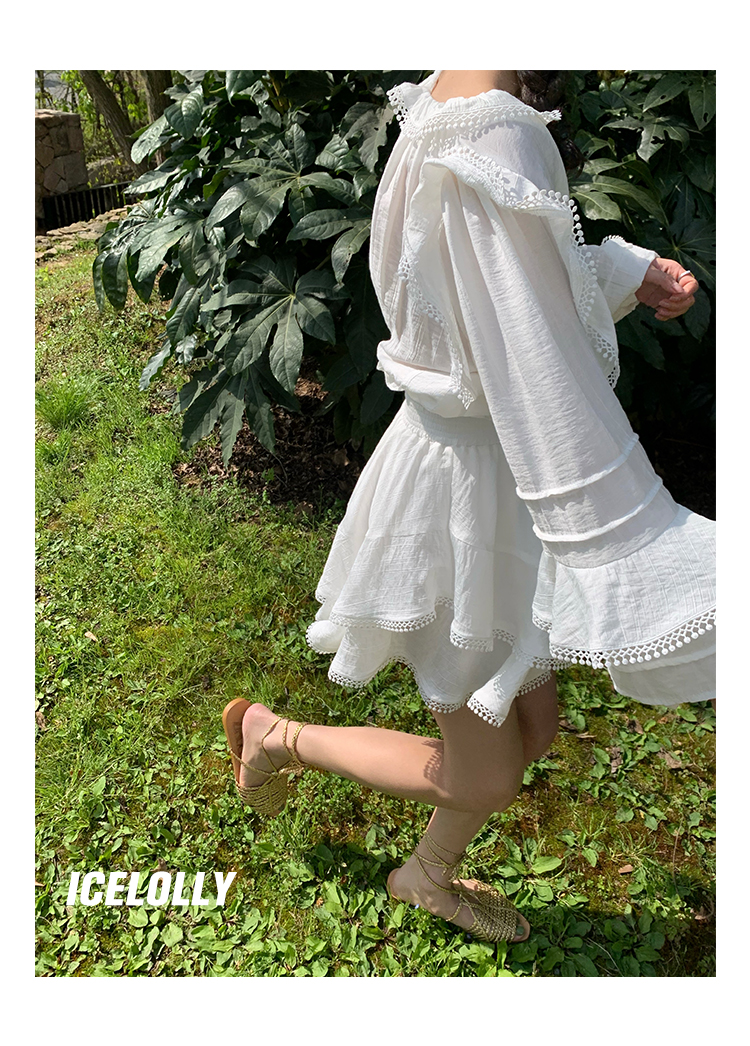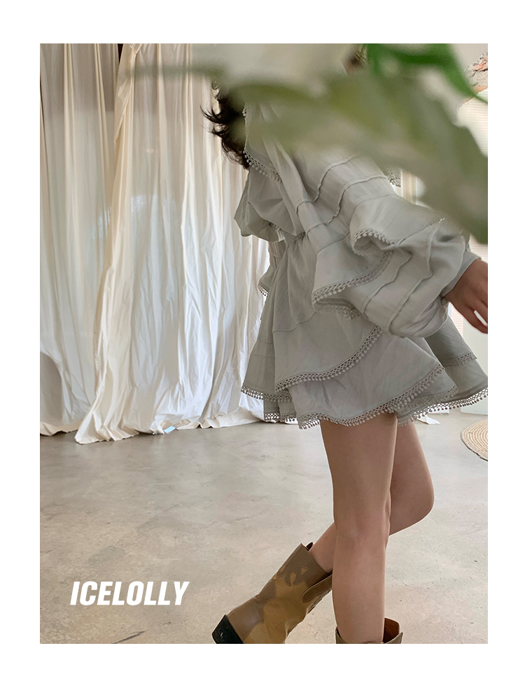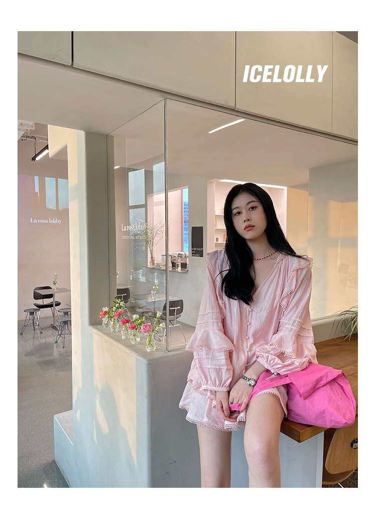ICELOLLY設計感小眾泡泡袖t襯衫女夏襯衫套裝仙女上衣超仙法式甜美