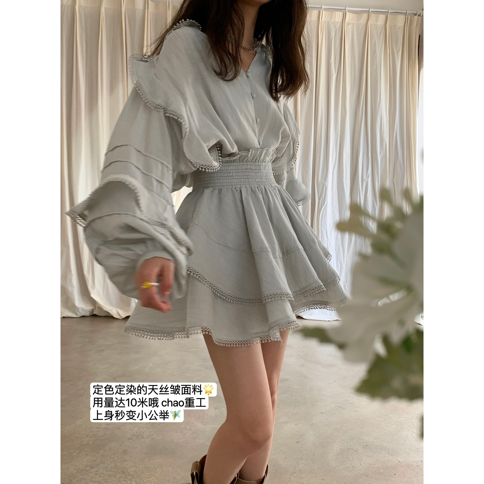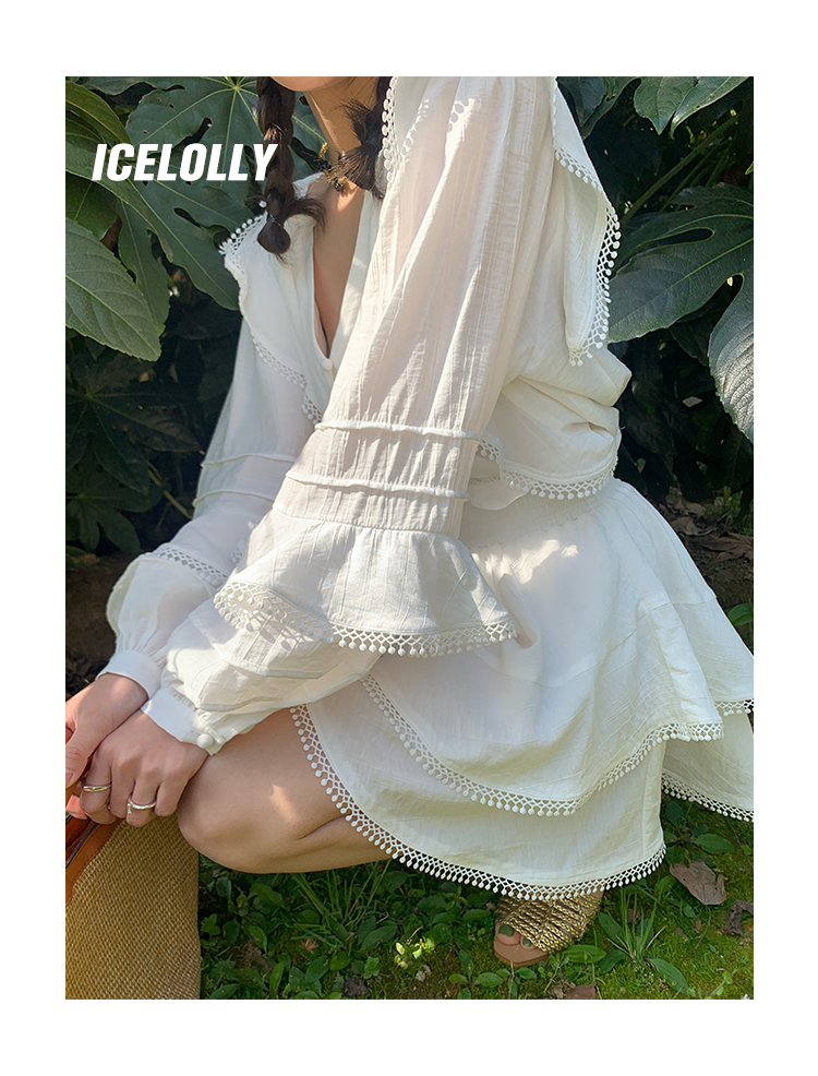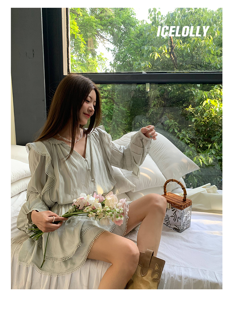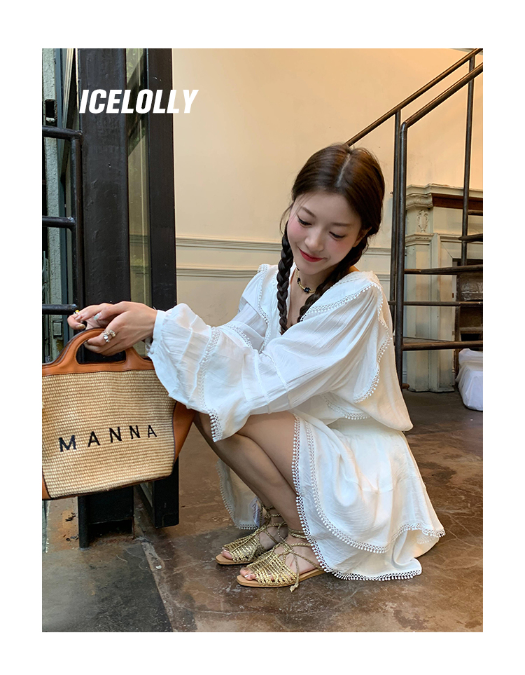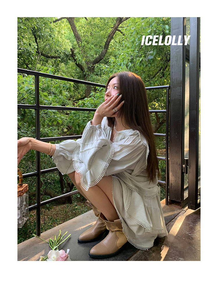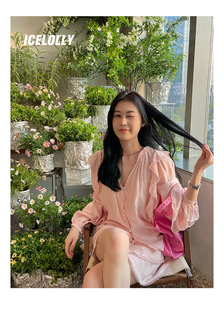 ICELOLLY設計感小眾泡泡袖t襯衫女夏襯衫套裝仙女上衣超仙法式甜美