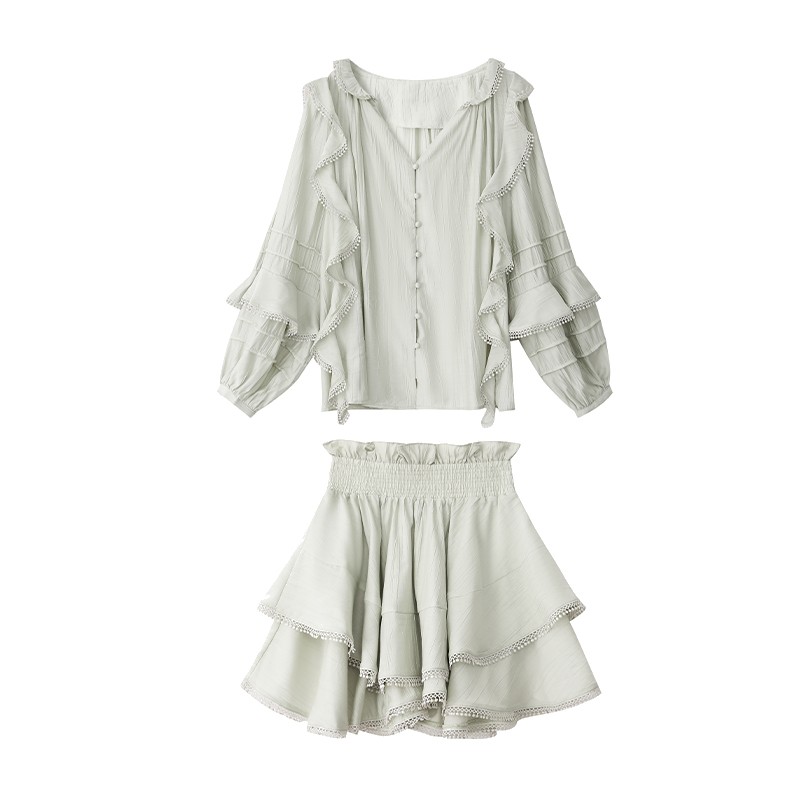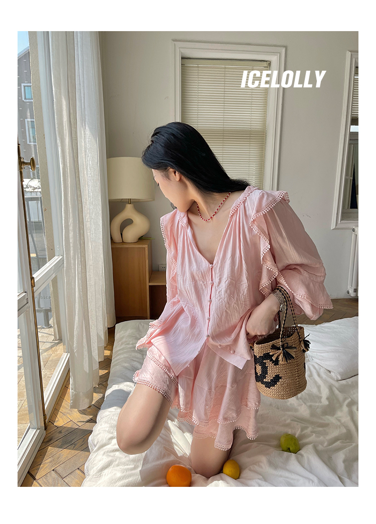 顏色分類 奶白色 襯衫.,珊瑚粉 襯衫.,薄荷綠 襯衫.,奶白色 裙褲.,珊瑚粉 裙褲.,薄荷綠 裙褲.