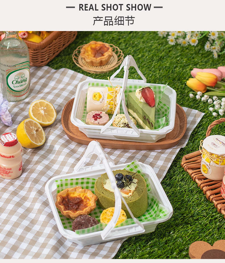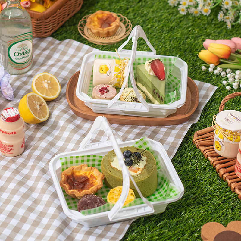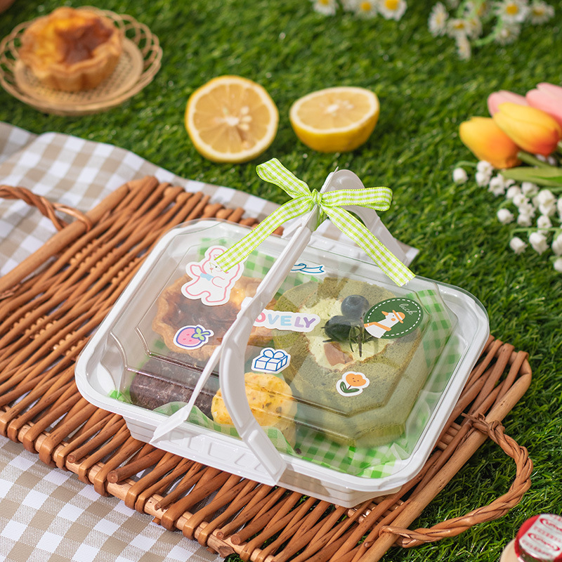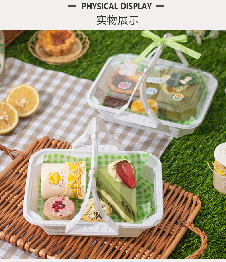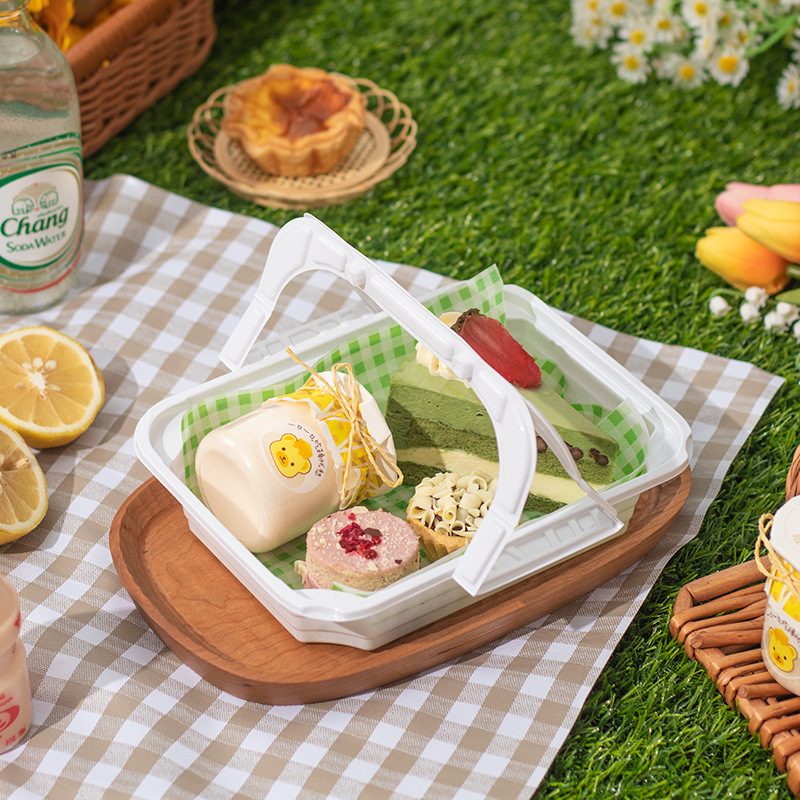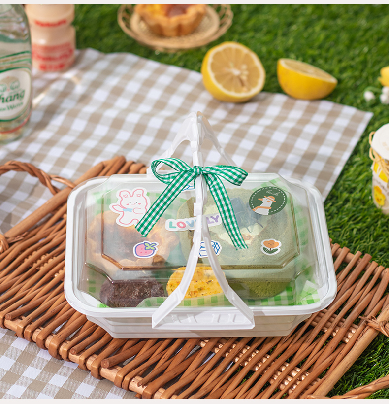 9URT批发ins风手提盒子烘焙马卡龙蛋糕野餐露营甜点下午茶外卖塑