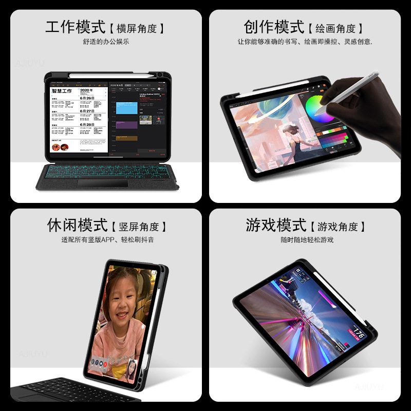 产品类型 iPad Pro 11英寸(2018/2020/2021/2022 )Air5/Air4通用,iPad Pro 12.9英寸(2018/2020/2021/2022 通用),iPad 10.2英寸/10.5英寸通用(2019/2020/2021)7/8/9代