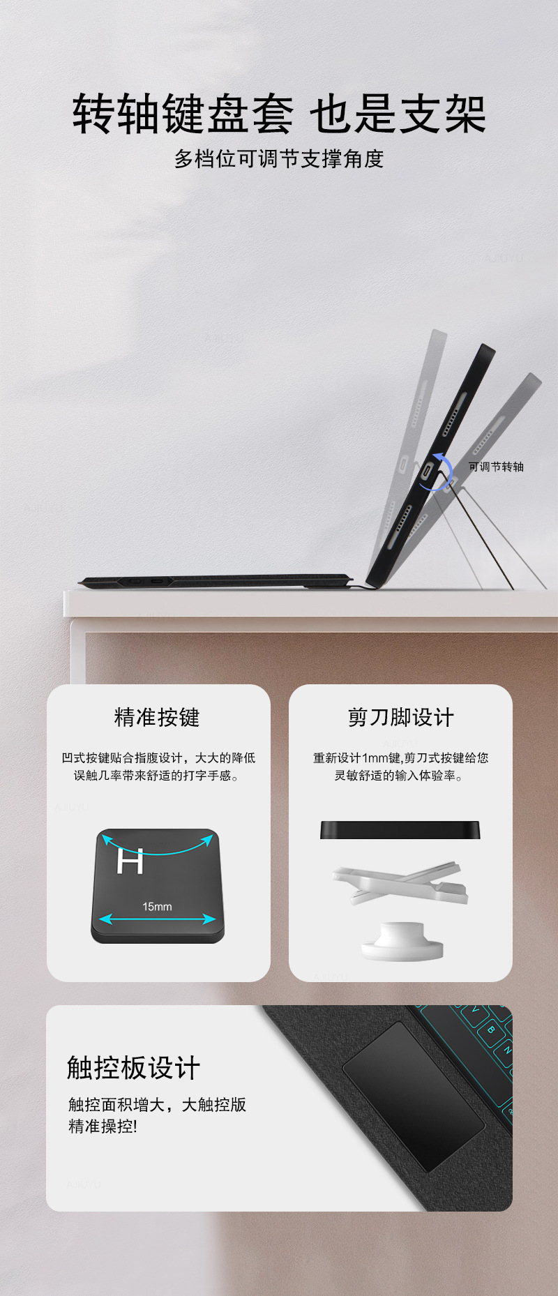 横竖支撑、磁吸分离、金属转轴、语音输入、七彩背光