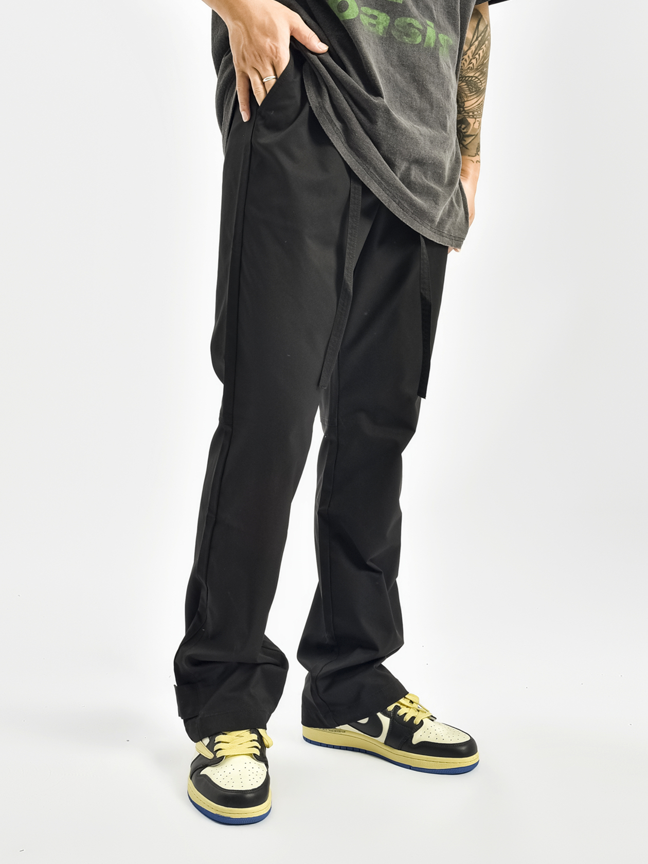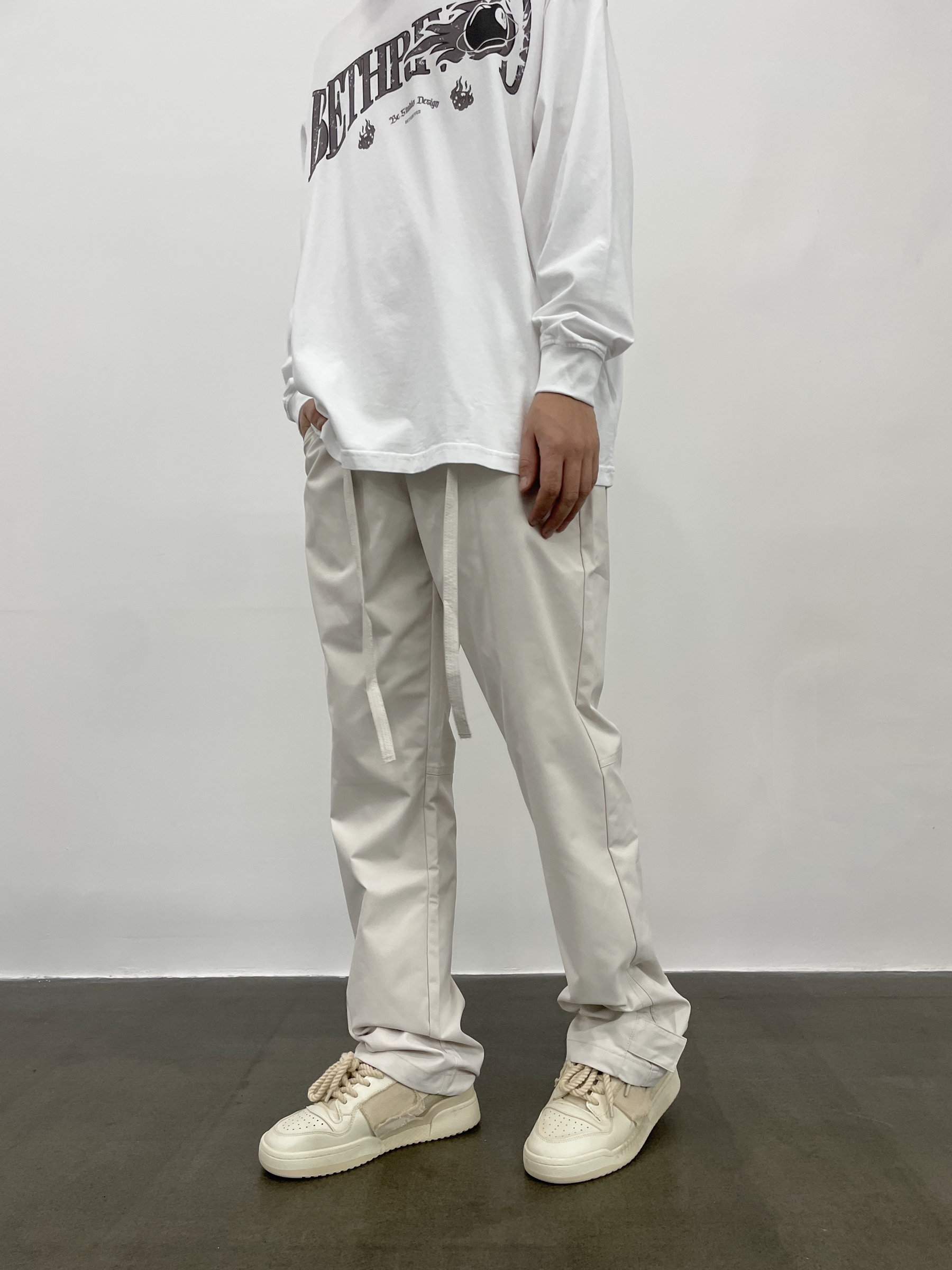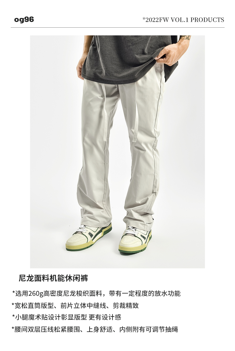 OG96夏季薄款尼龍魔術貼飄帶休閒褲機能防水面料梭織運動褲vibe風
