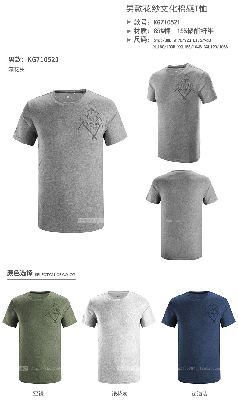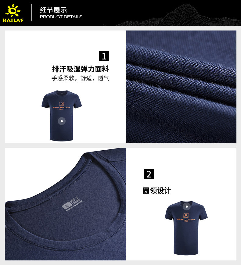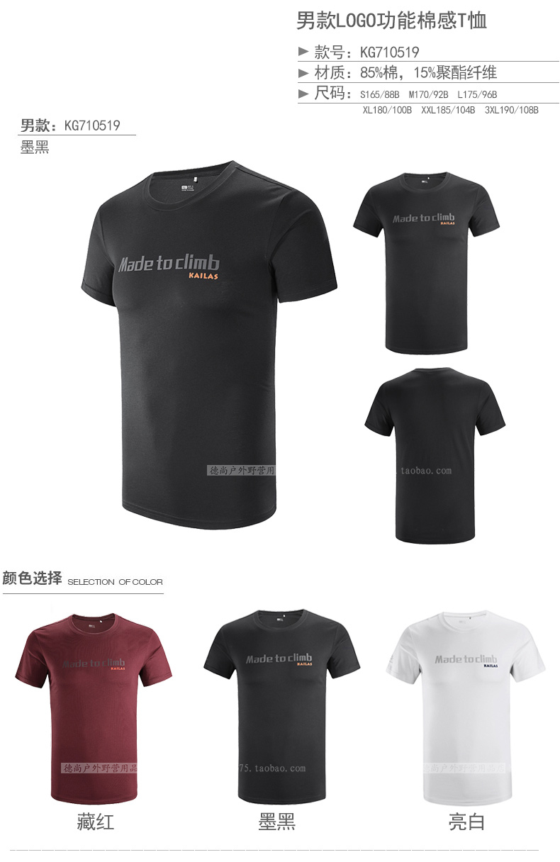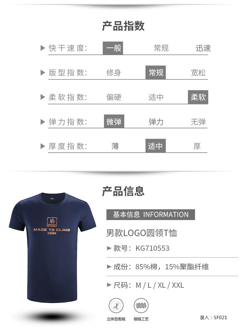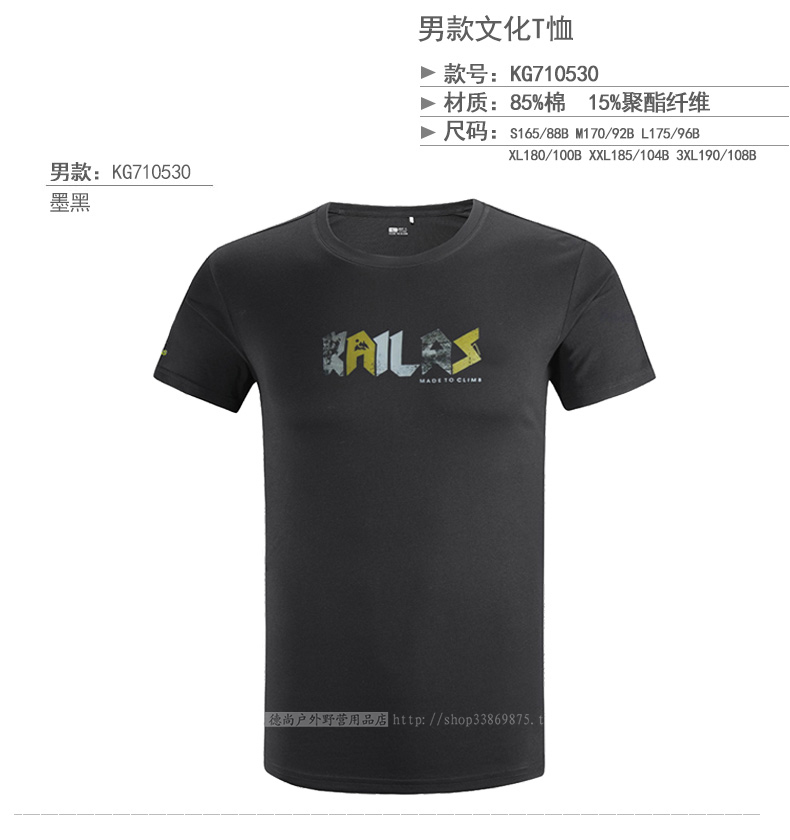 凱樂石春夏戶外徒步旅行休閒短袖圓領T恤男女款文化衫棉T恤