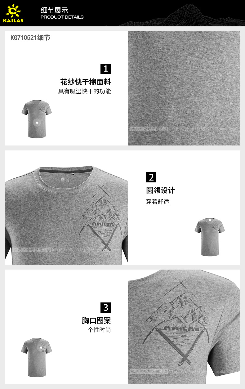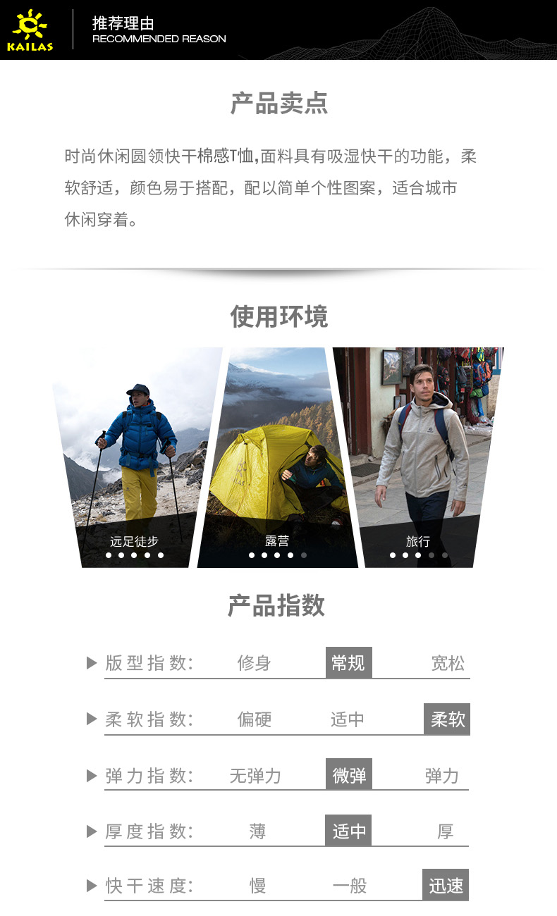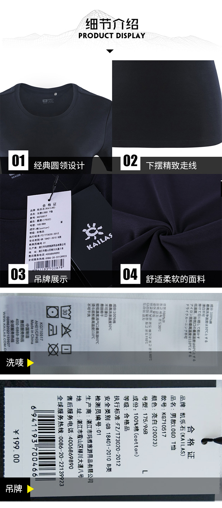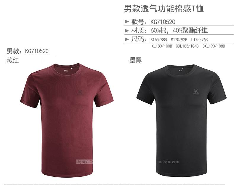 凱樂石春夏戶外徒步旅行休閒短袖圓領T恤男女款文化衫棉T恤