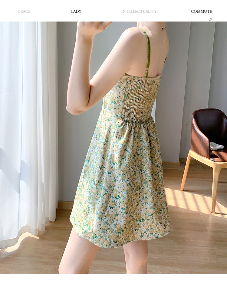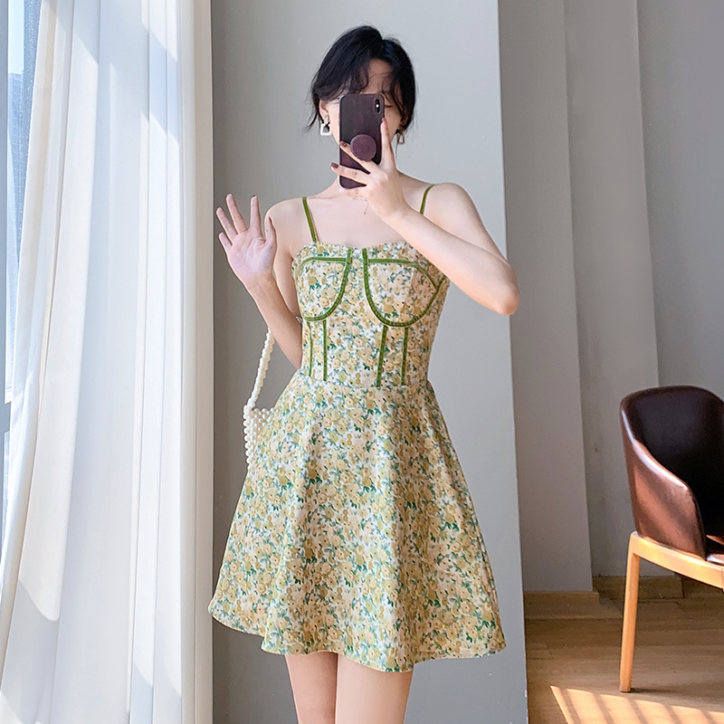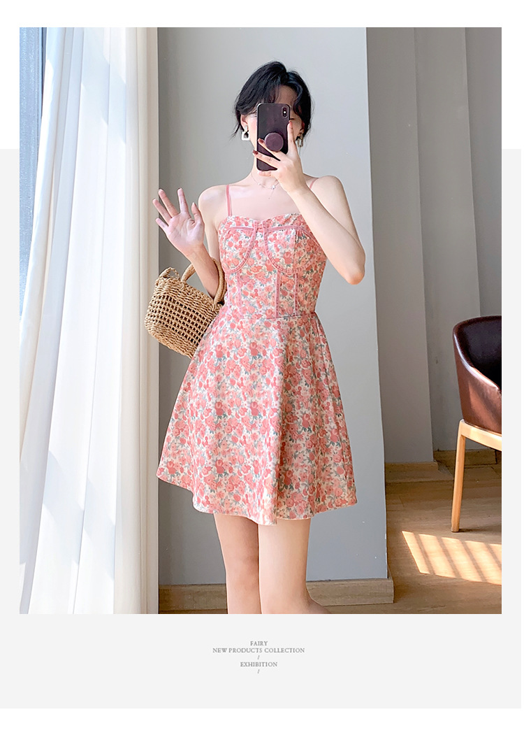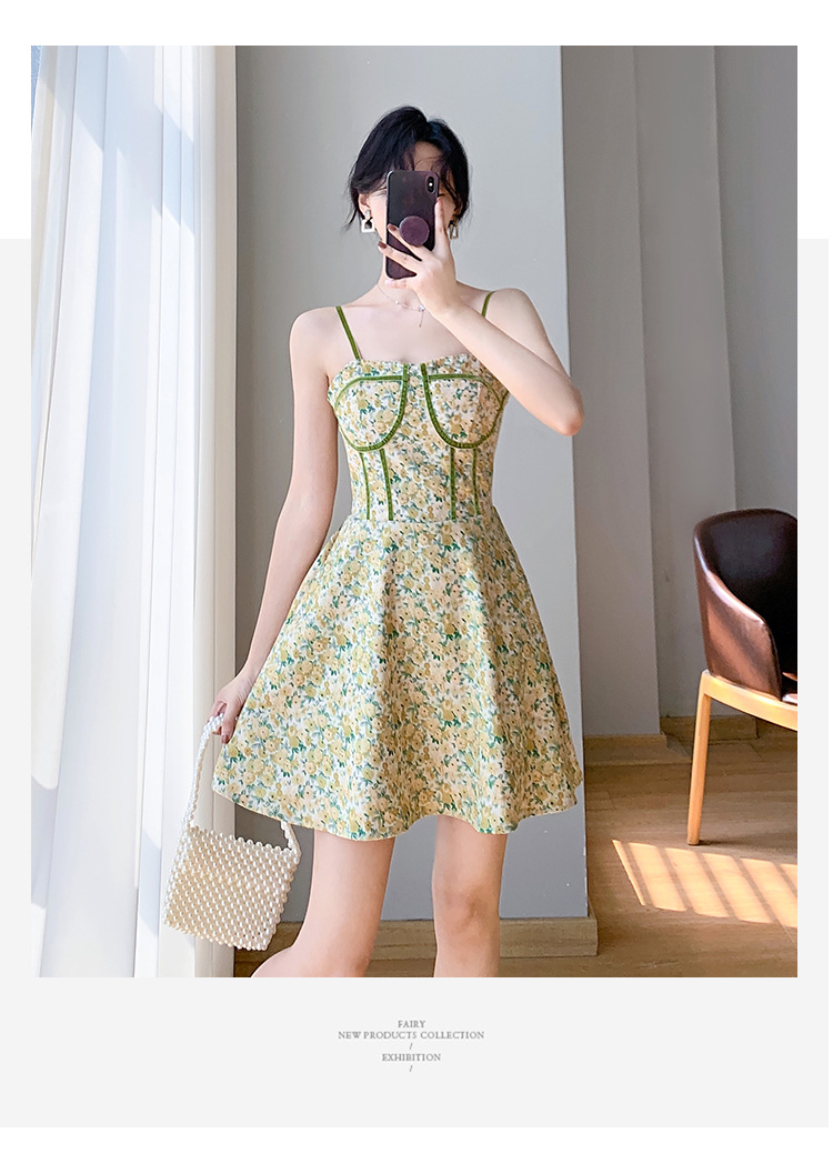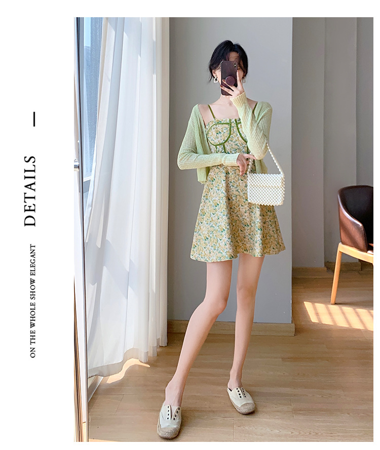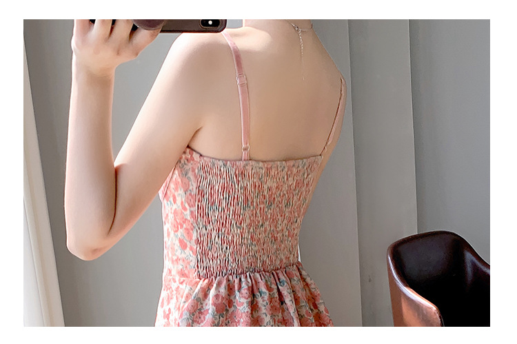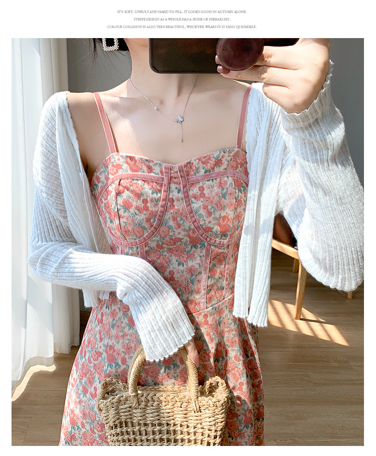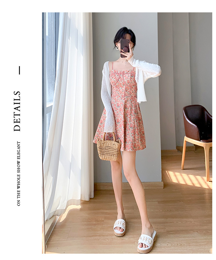 2023夏装新款法式小众设计感收腰气质碎花吊带连衣裙两件套连衣裙