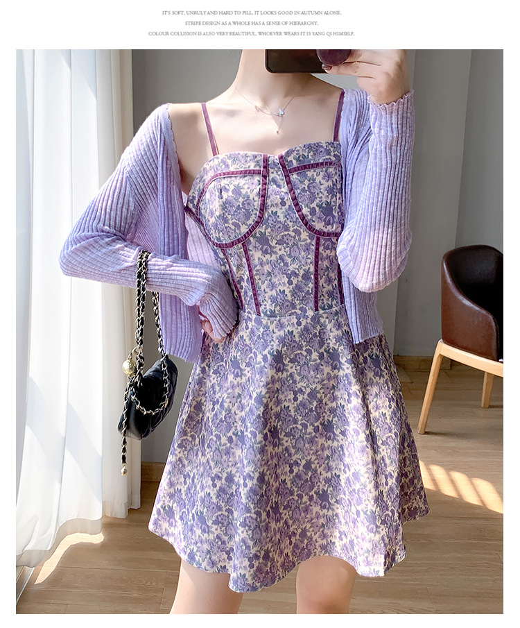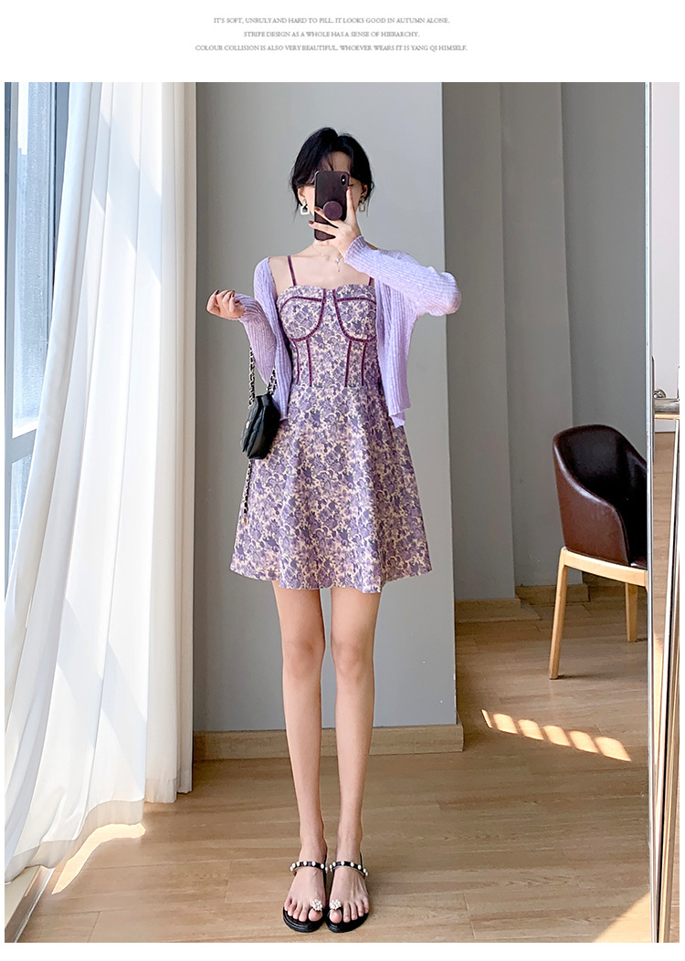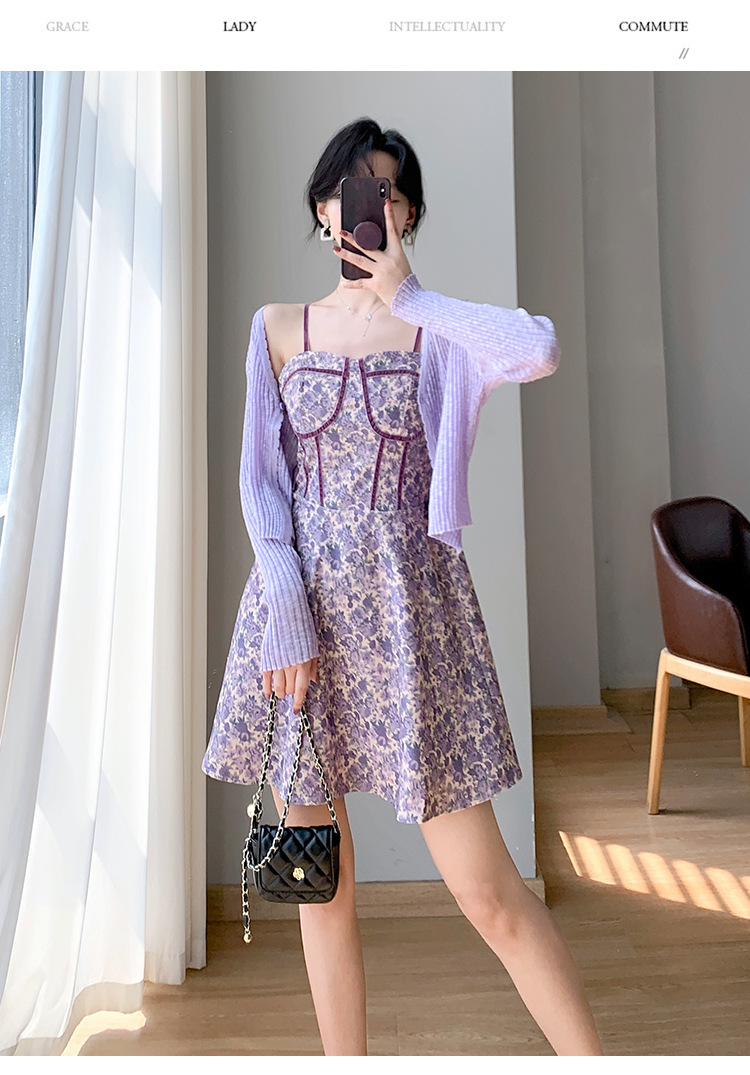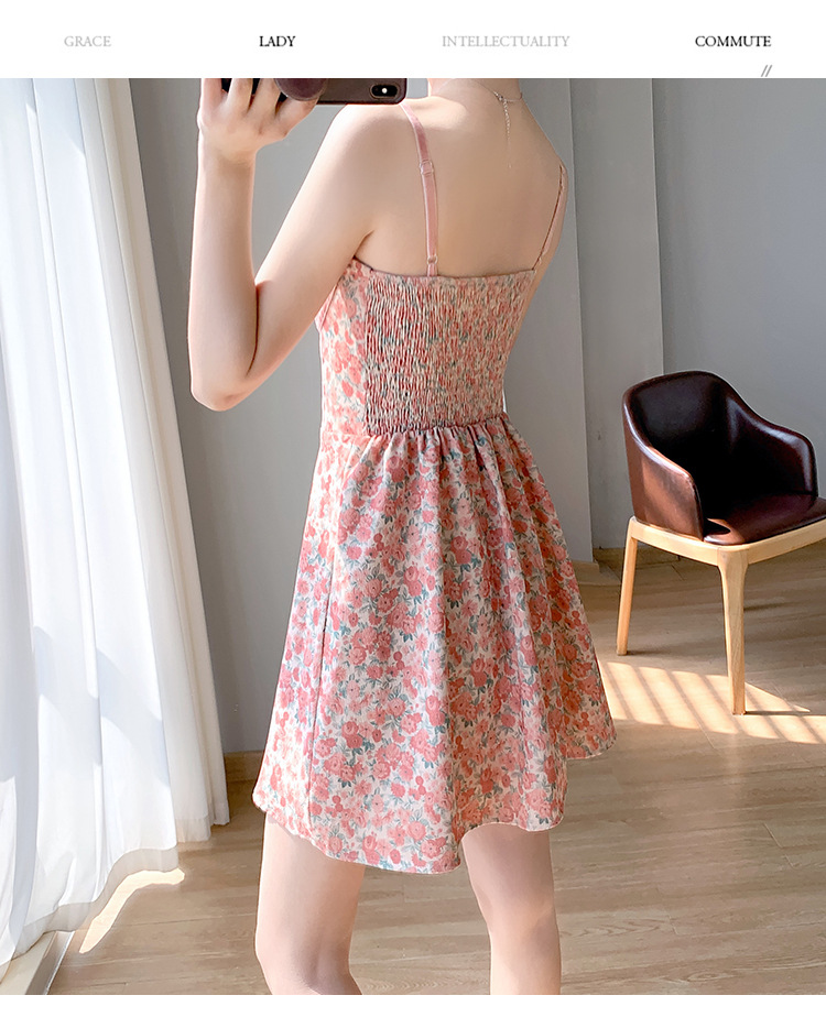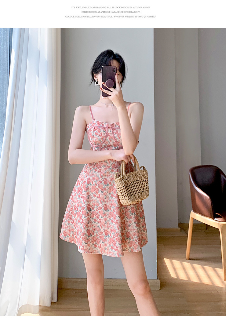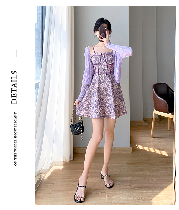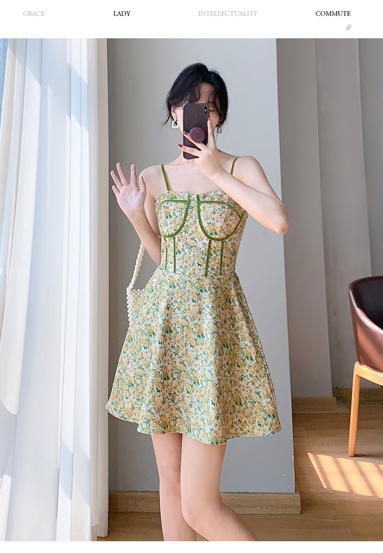 2023夏装新款法式小众设计感收腰气质碎花吊带连衣裙两件套连衣裙
