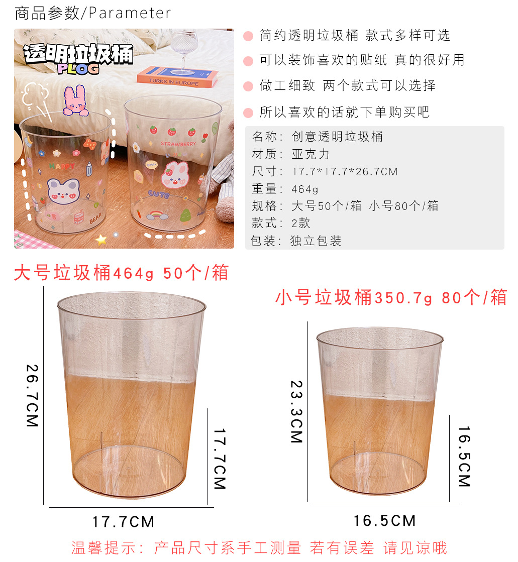 创意简约透明垃圾桶家用厕所卫生间大号客厅轻奢厨房用卧室办公室