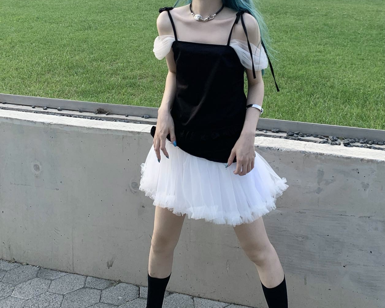 20thmoments 23ss 自制 花邊抽繩蓬蓬裙 雙層軟綿綿網紗