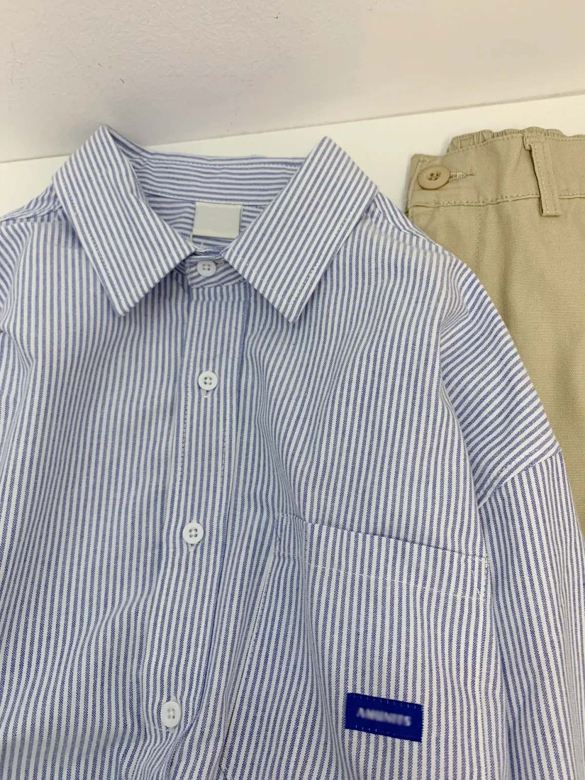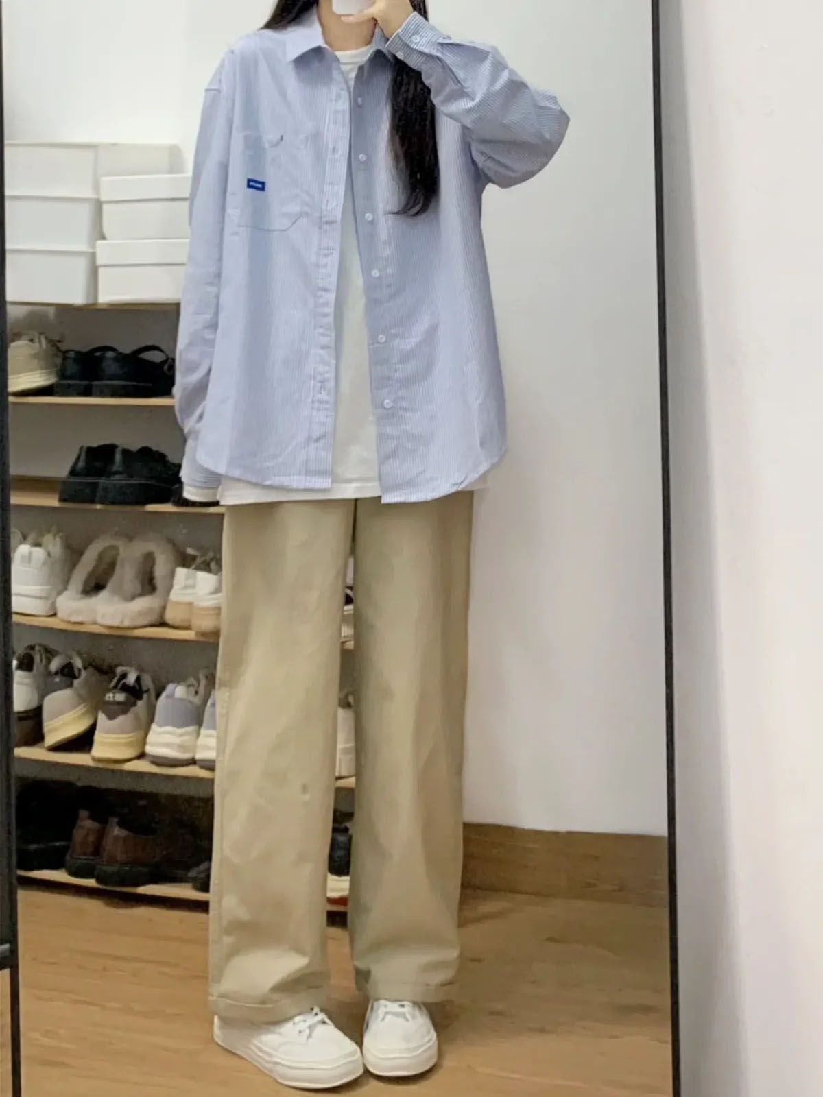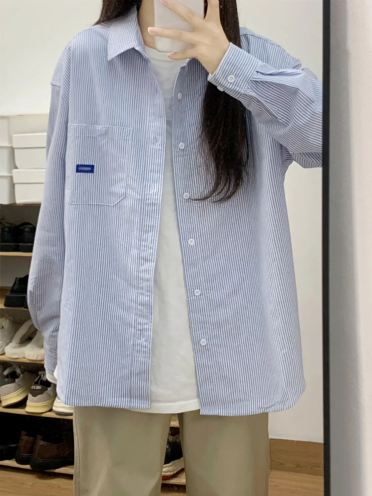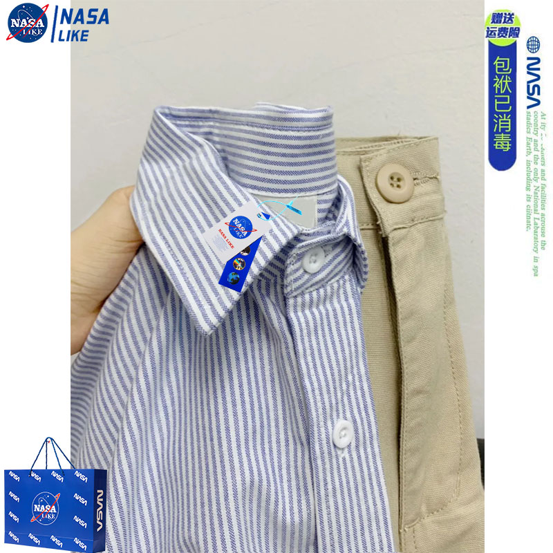 NASA藍色襯衫女2023新款春秋款小個子設計感小眾條紋長袖上衣外套