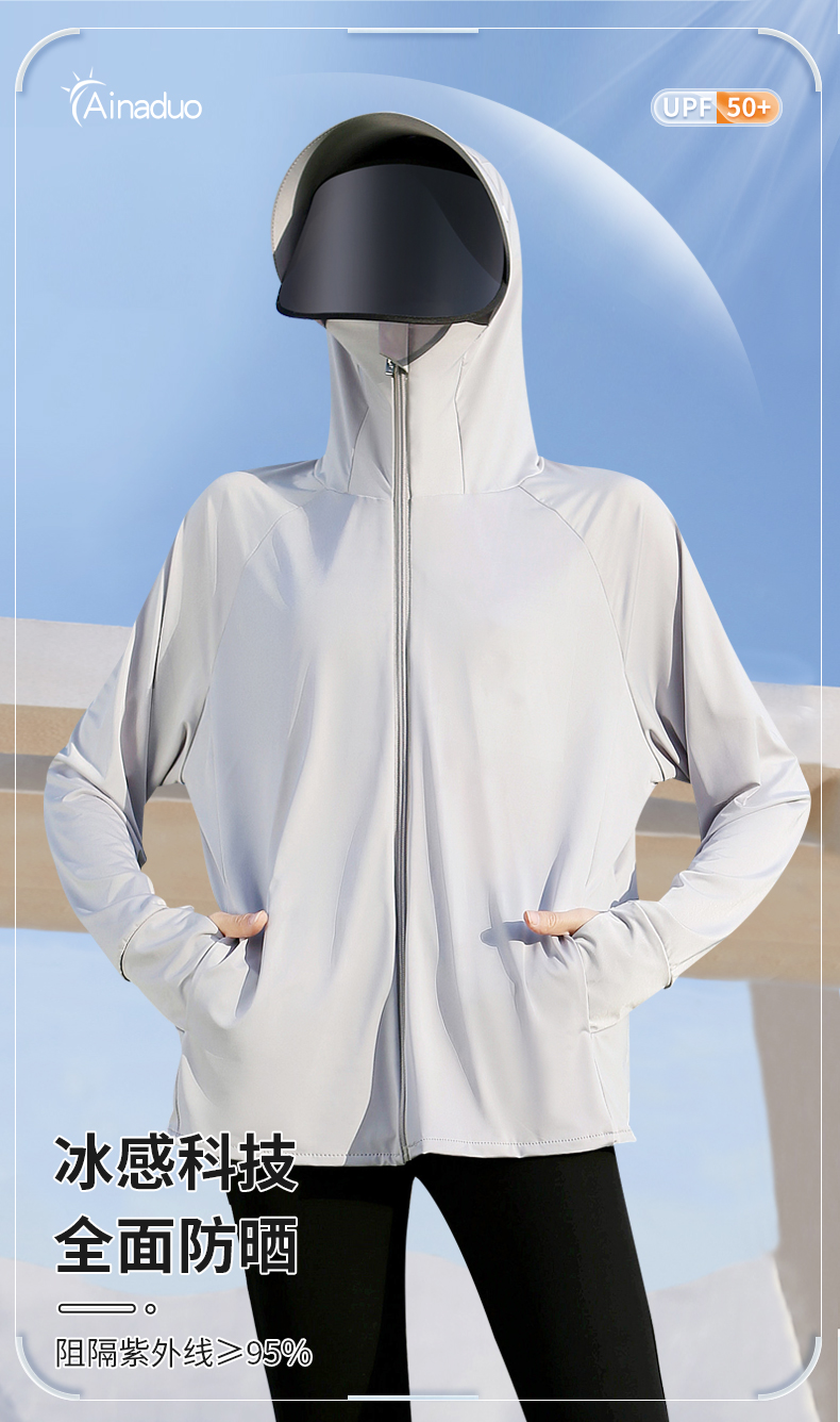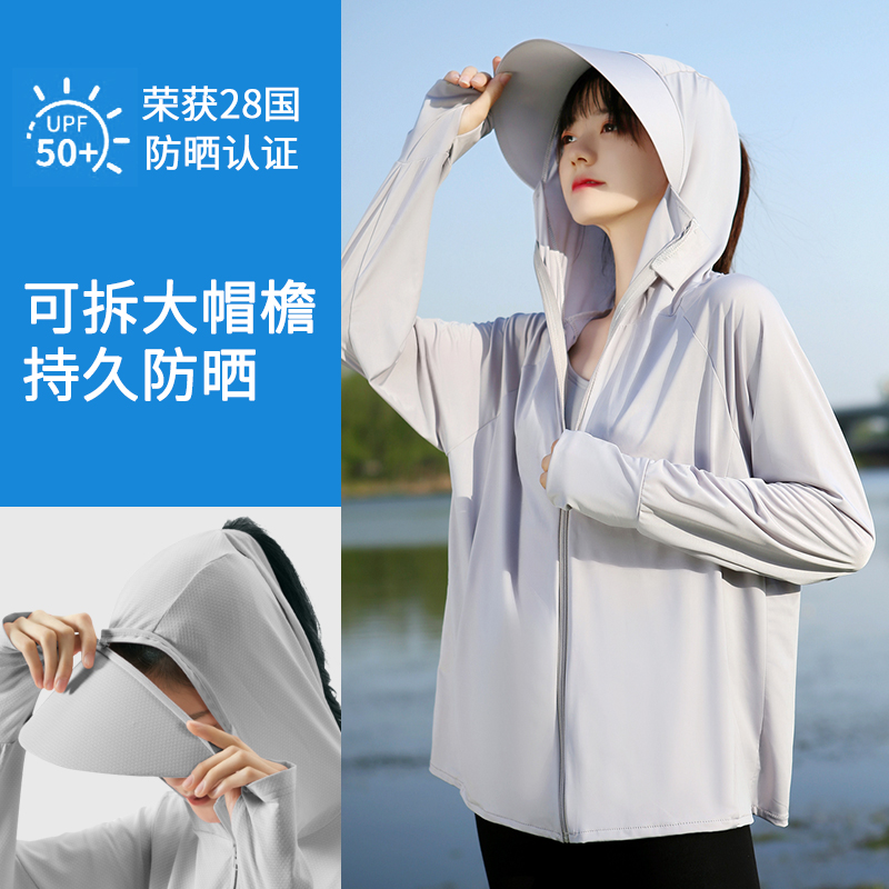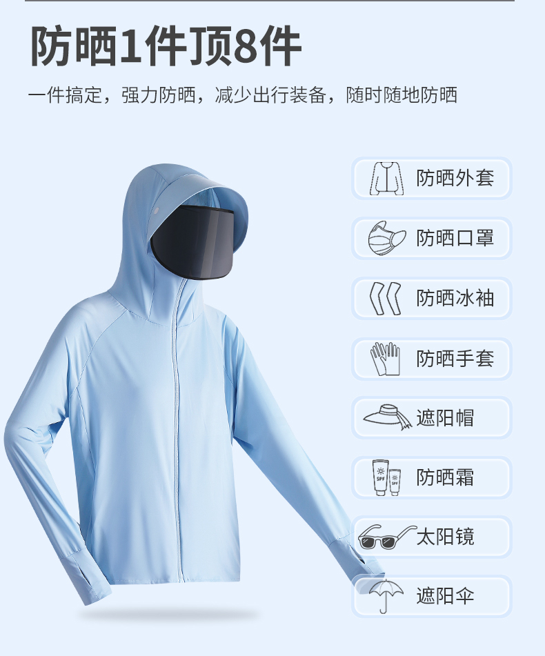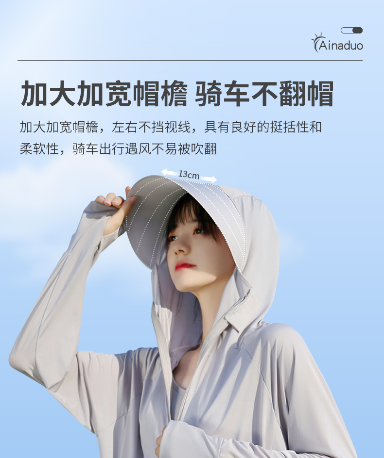 防曬衣女款冰絲薄款抗UV中長版衣帽遮臉一體大帽簷騎車防曬服