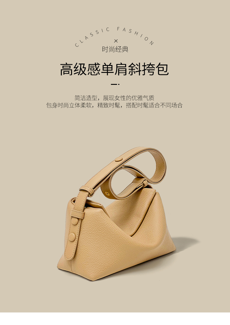 高级感牛皮斜挎包2024新款时尚百搭手提包女小众通勤单肩饺子包女