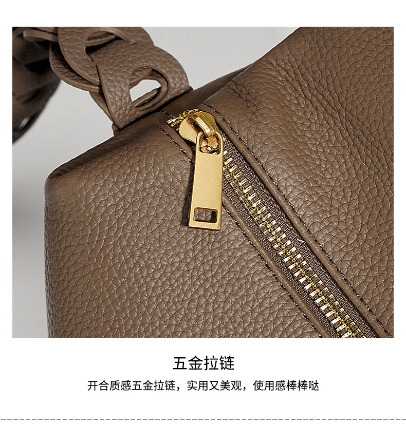 新款头层牛皮波士顿包2024简约质感牛皮单肩斜挎包小众设计感