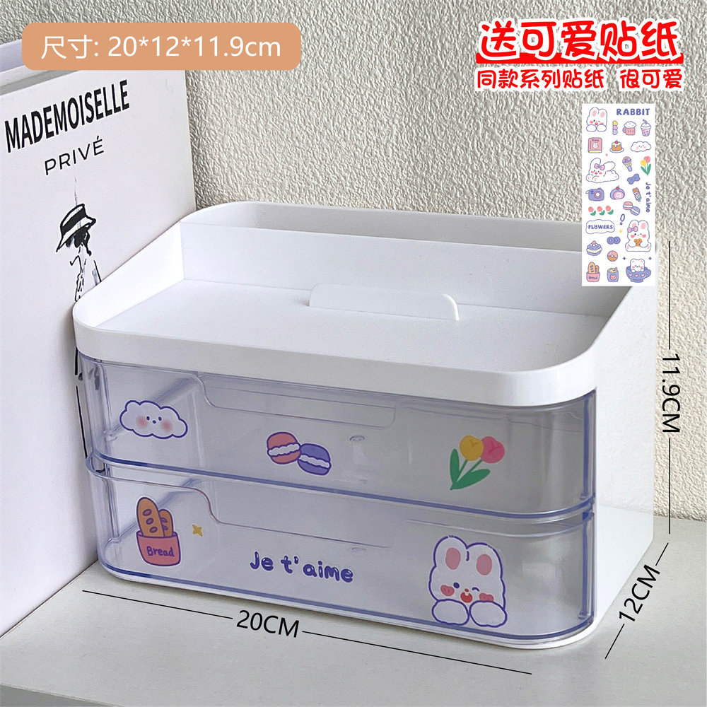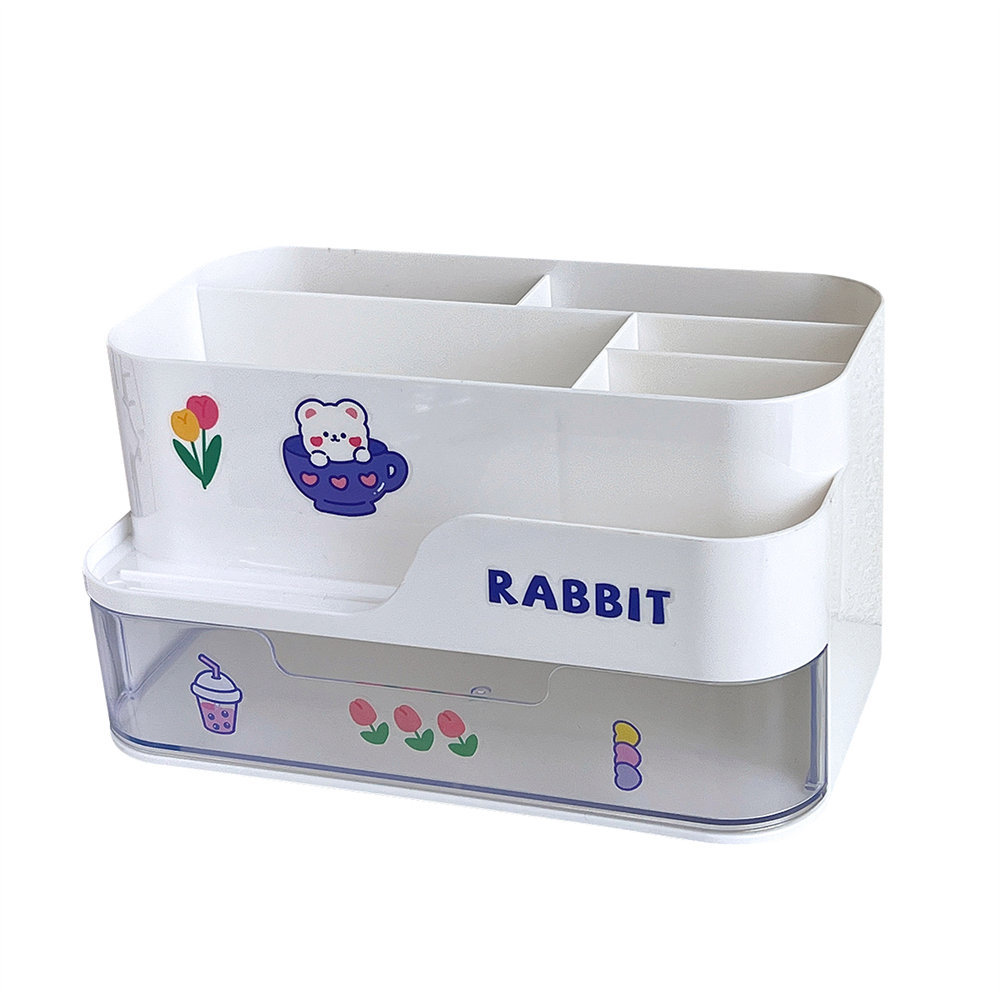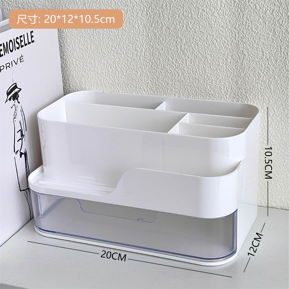 多功能桌面收纳盒分格带抽屉宿舍化妆品置物架办公室书桌创意笔筒