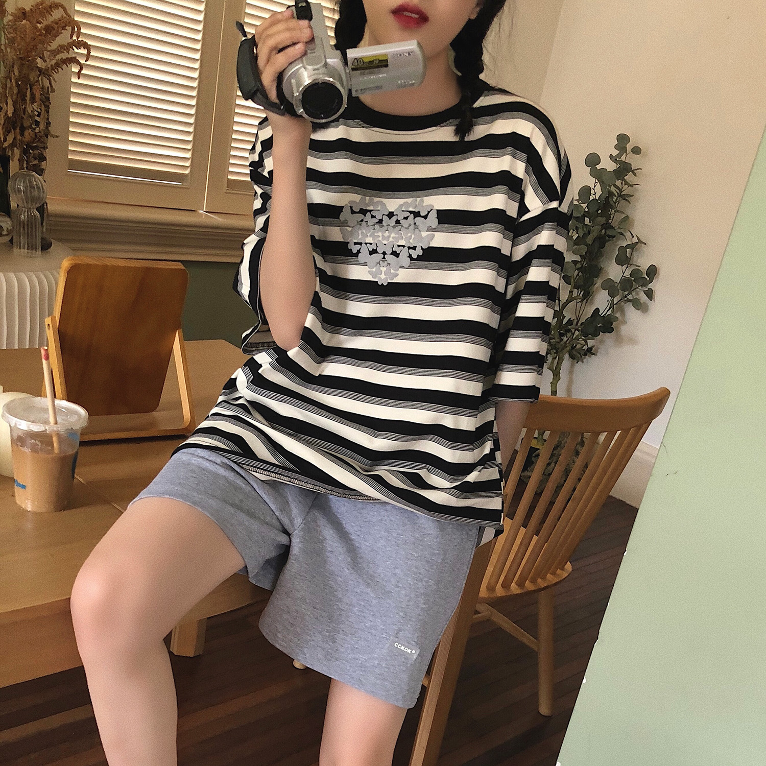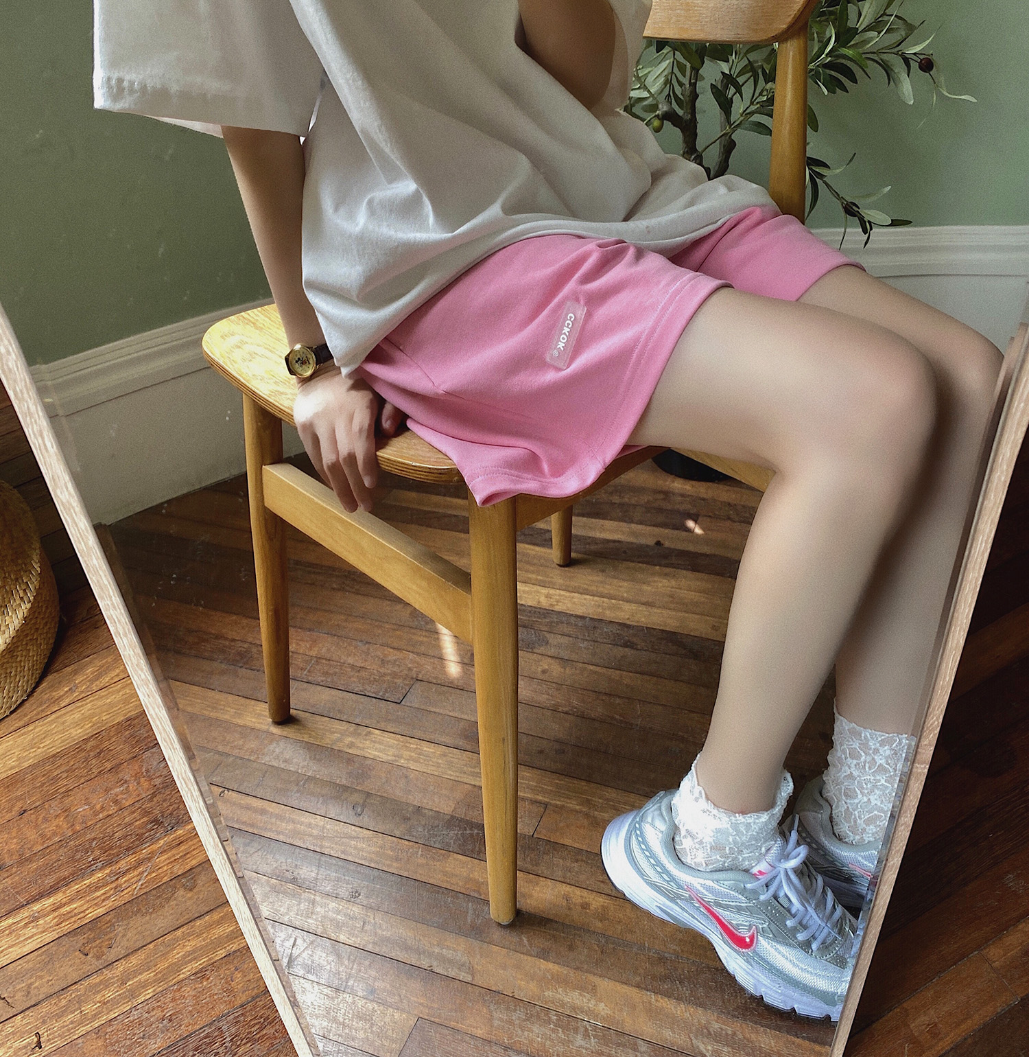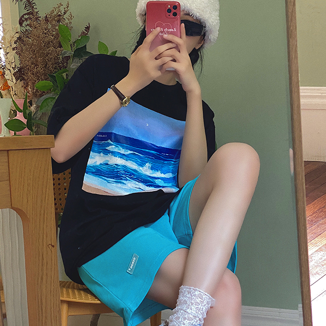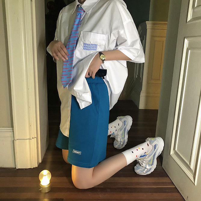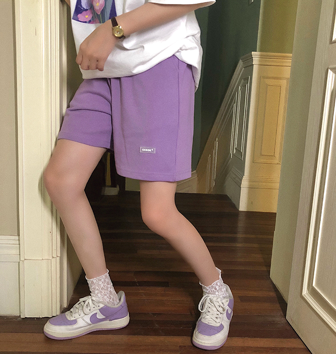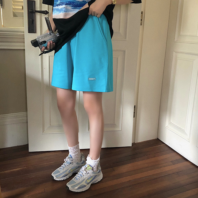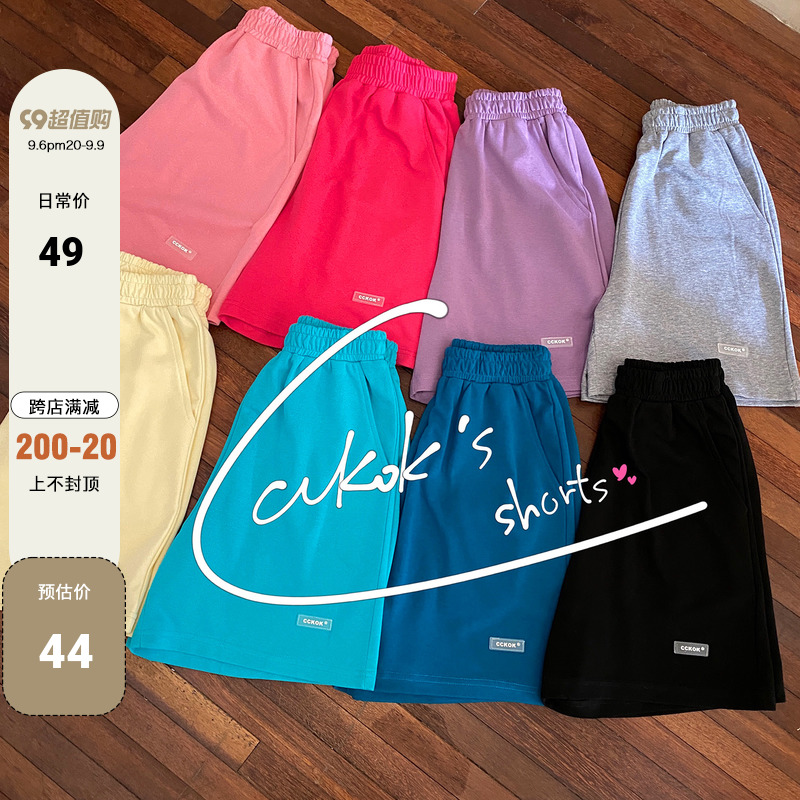 CCKOK自制 百搭休閒純色短褲2023夏季新款高腰直筒運動五分五分褲女