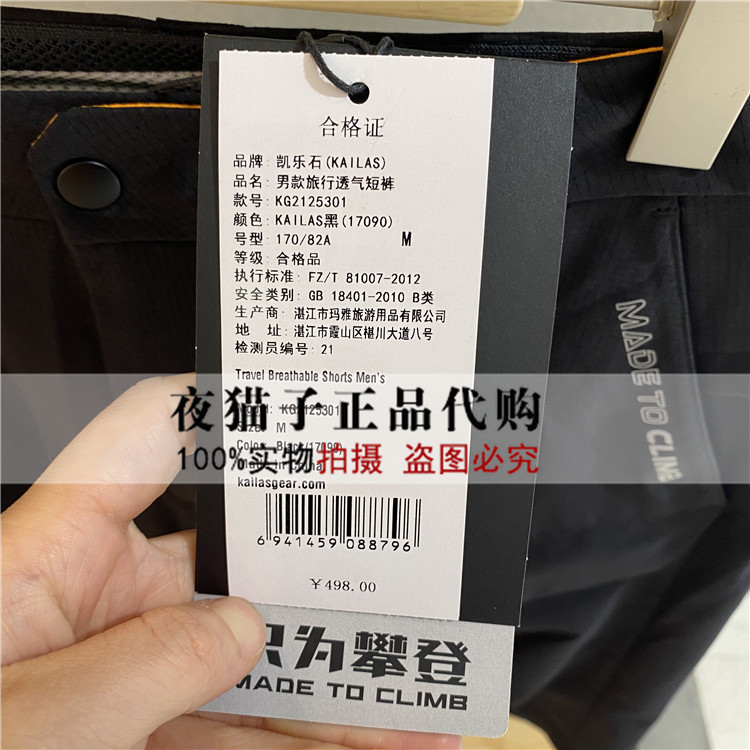 21新款專櫃運動凱樂石/Kailas國內夏男款旅行透氣短褲 KG2125301