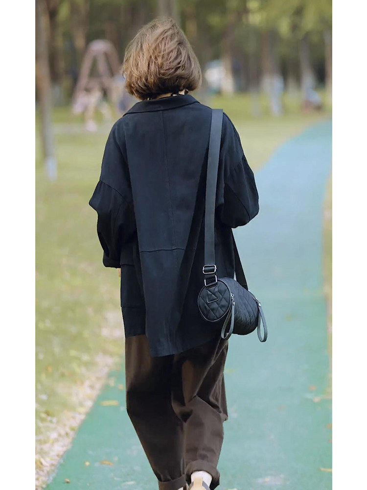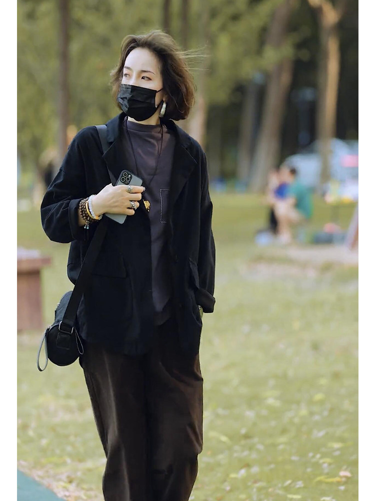 歐貨2023秋季新款寬鬆簡約純色通勤西裝領外套休閒百搭褲子兩件套